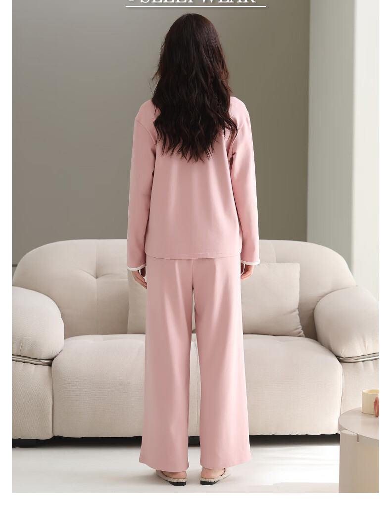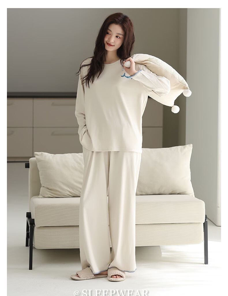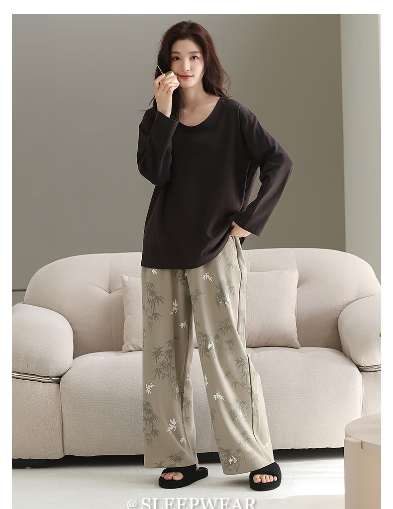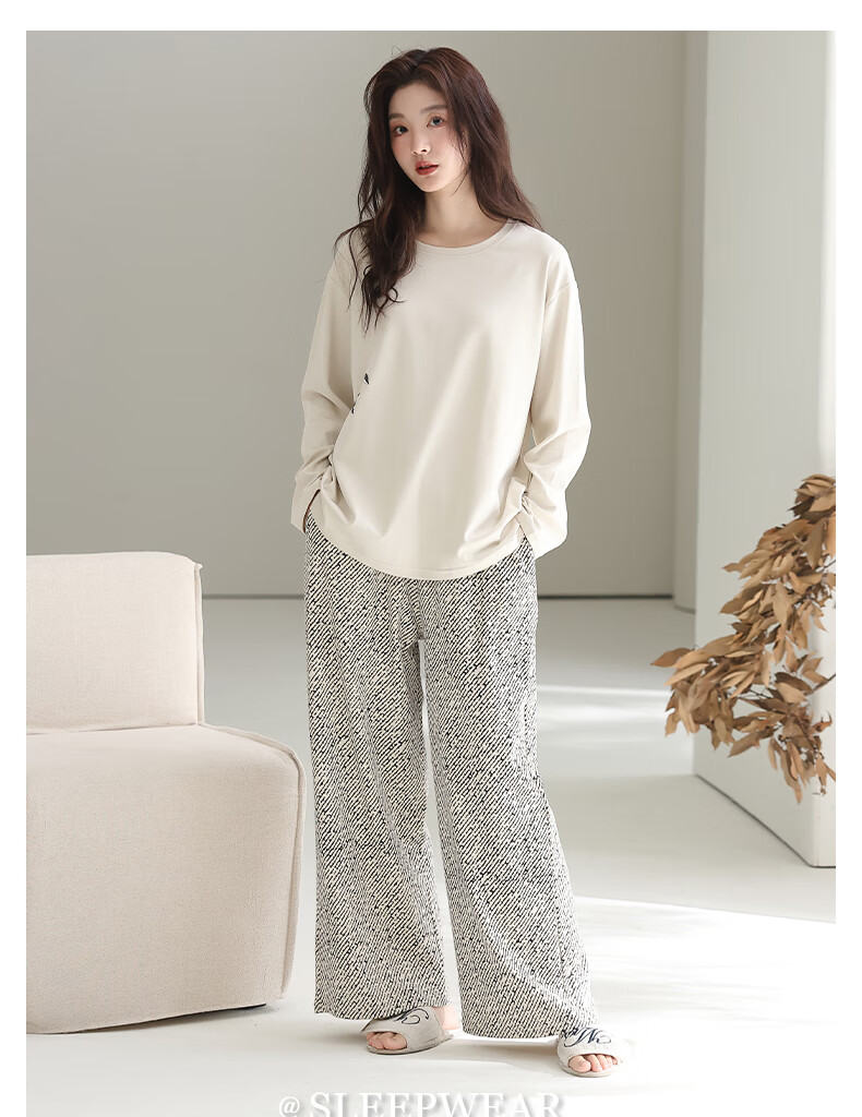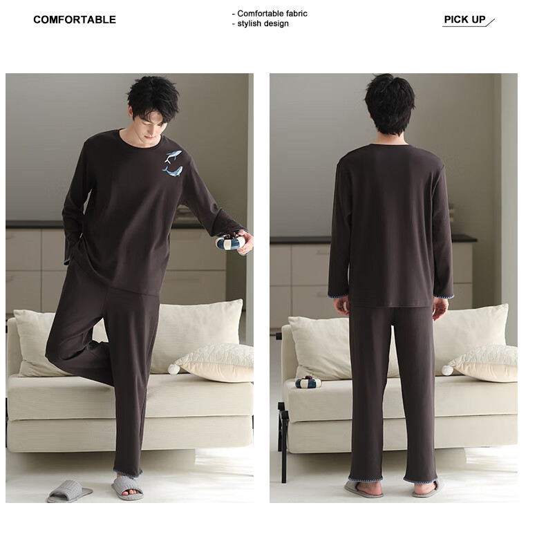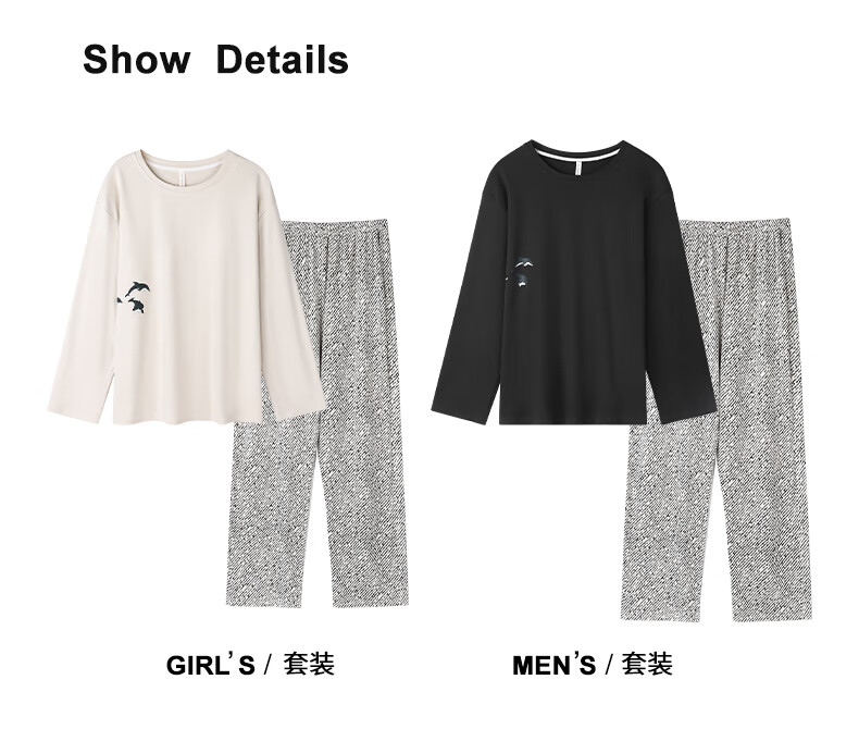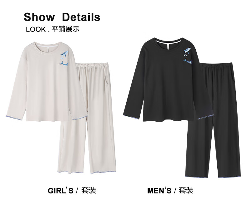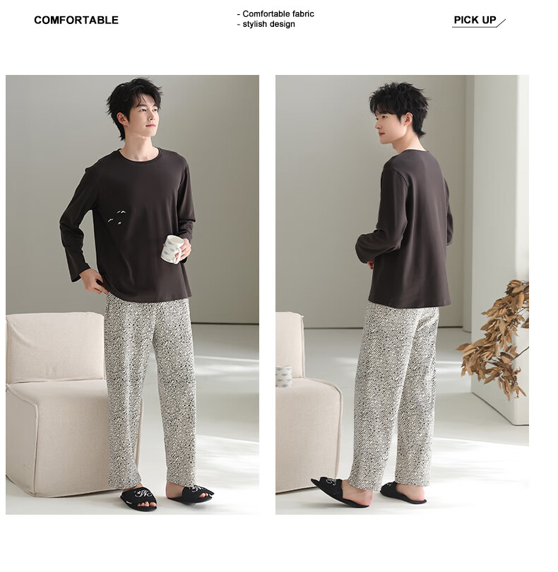 LangSha 7A Antibacterial Couple Pajamas for One Man and One Woman Autumn Pure Cotton Round Neck Cartoon Casual Wearable Spring and Autumn Home Clothing 32506 Couple M Female + XL Male