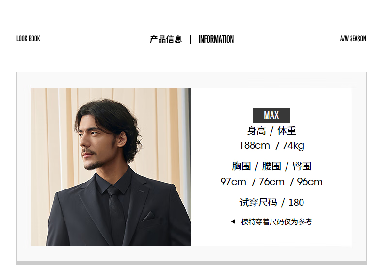 China (cm) 165 / 88-90 170 / 96-98 175 / 108-110 180 / 118-122 185 / 126-130