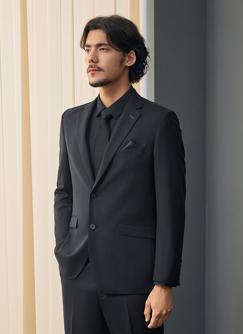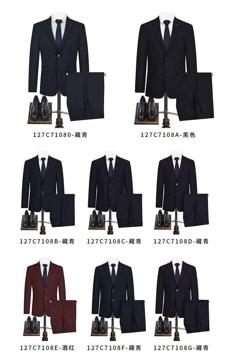 Qipai Wool Suit Men's 2025 Autumn and Winter New Business Formal Wool Suit Wedding Suit Two-piece Men's Burgundy Pants Adjustable Elasticity 175B B48 (175/96B)