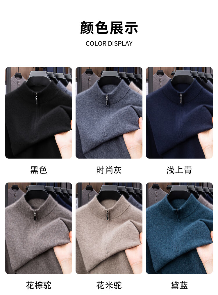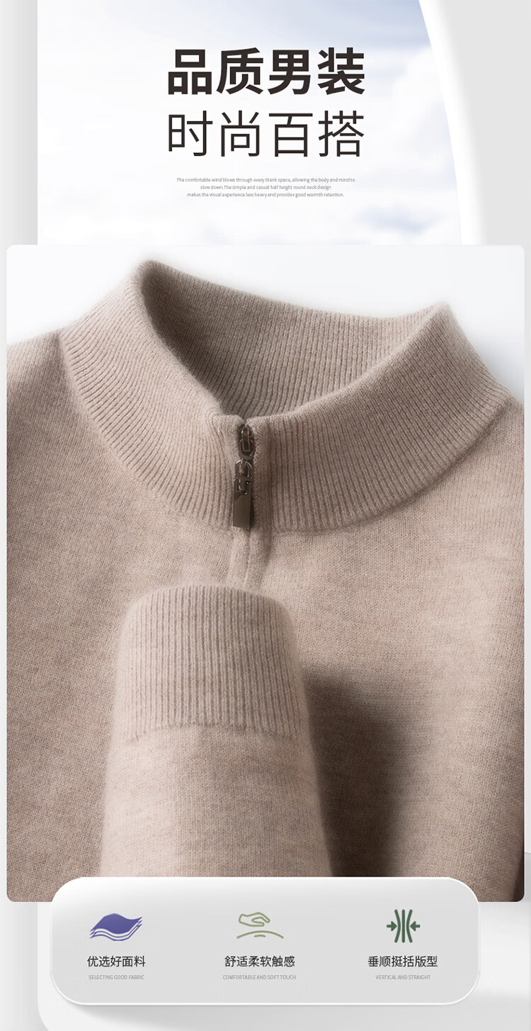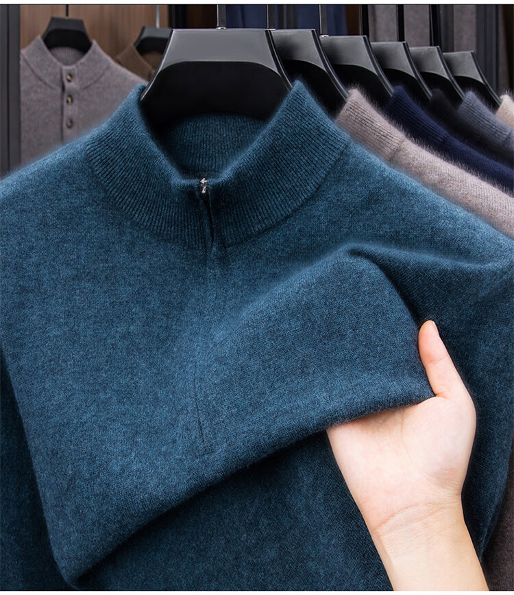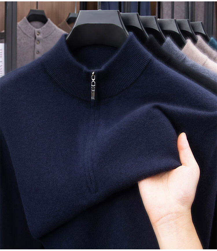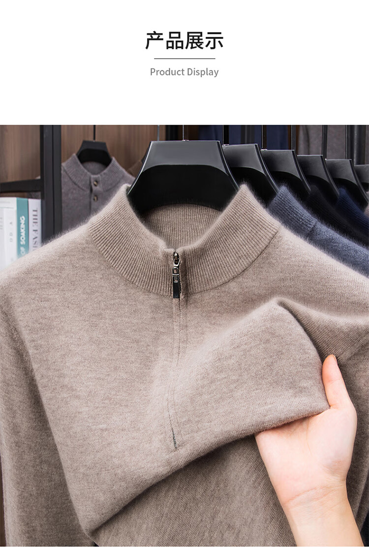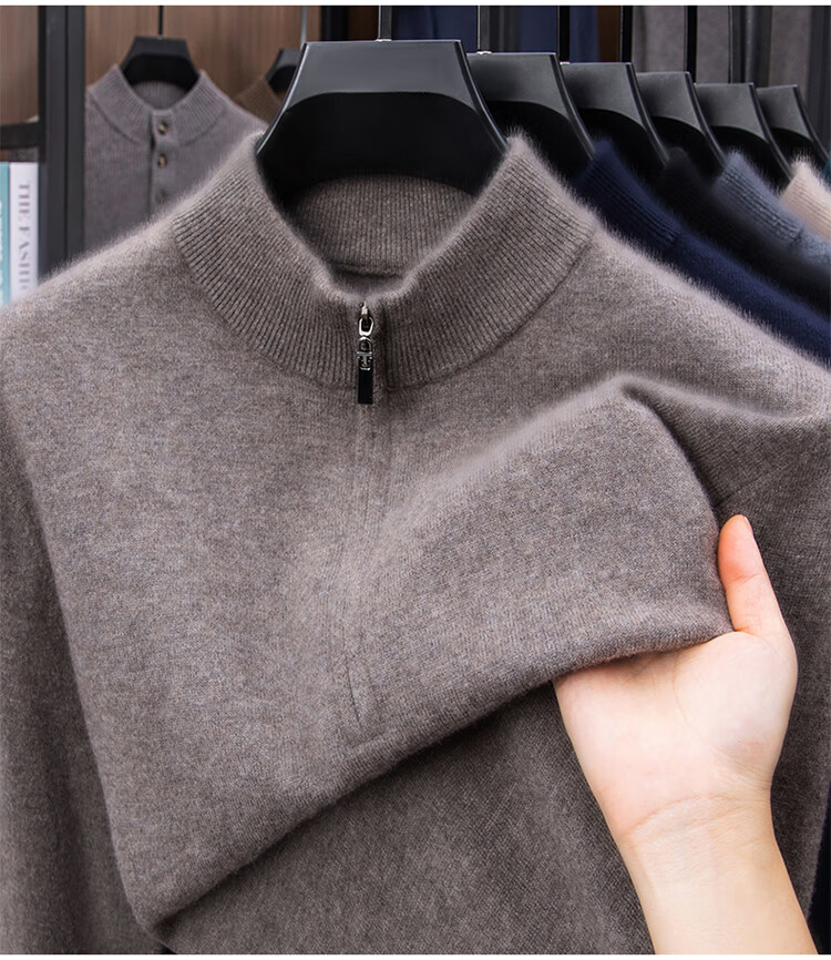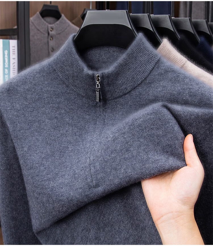 Hengyuanxiang 100% Pure Woolen Sweater Men's New Winter Thickened Sweater Half-Zip Stand Collar Bottoming Woolen Sweater Men Fashion Gray XL 175