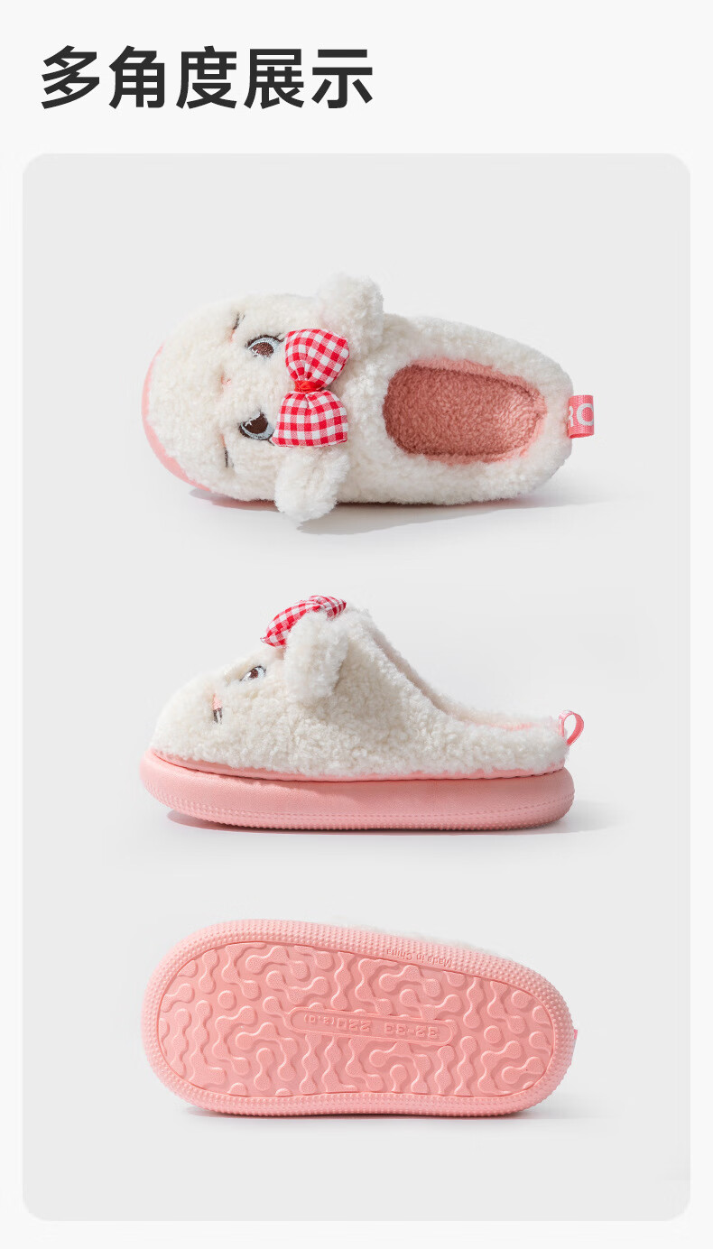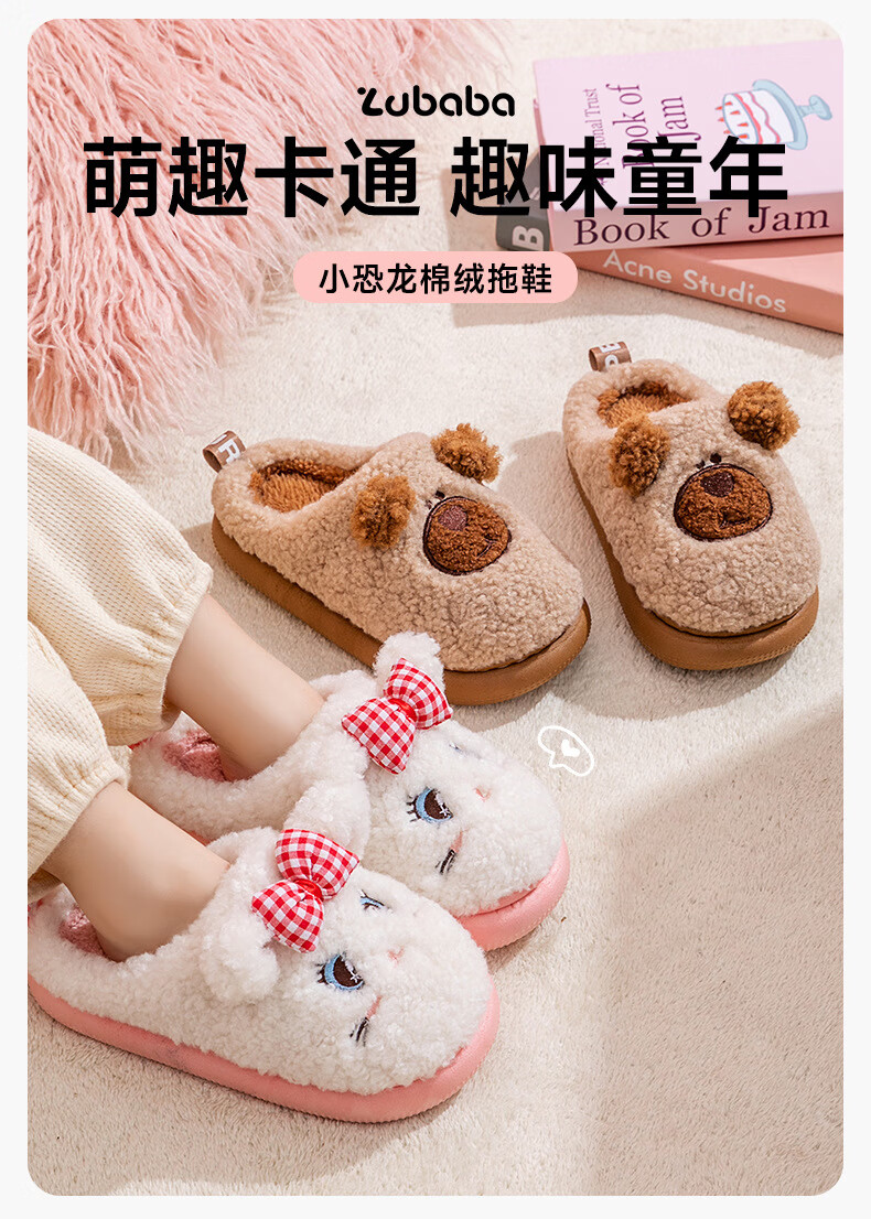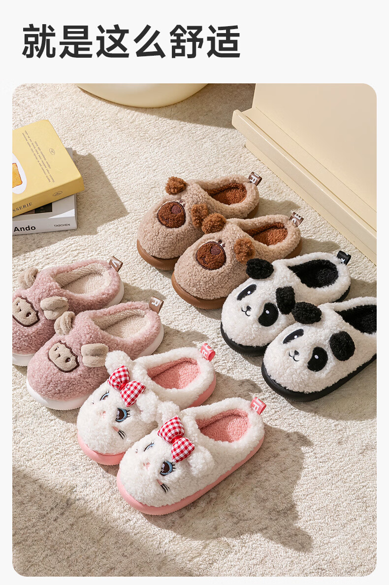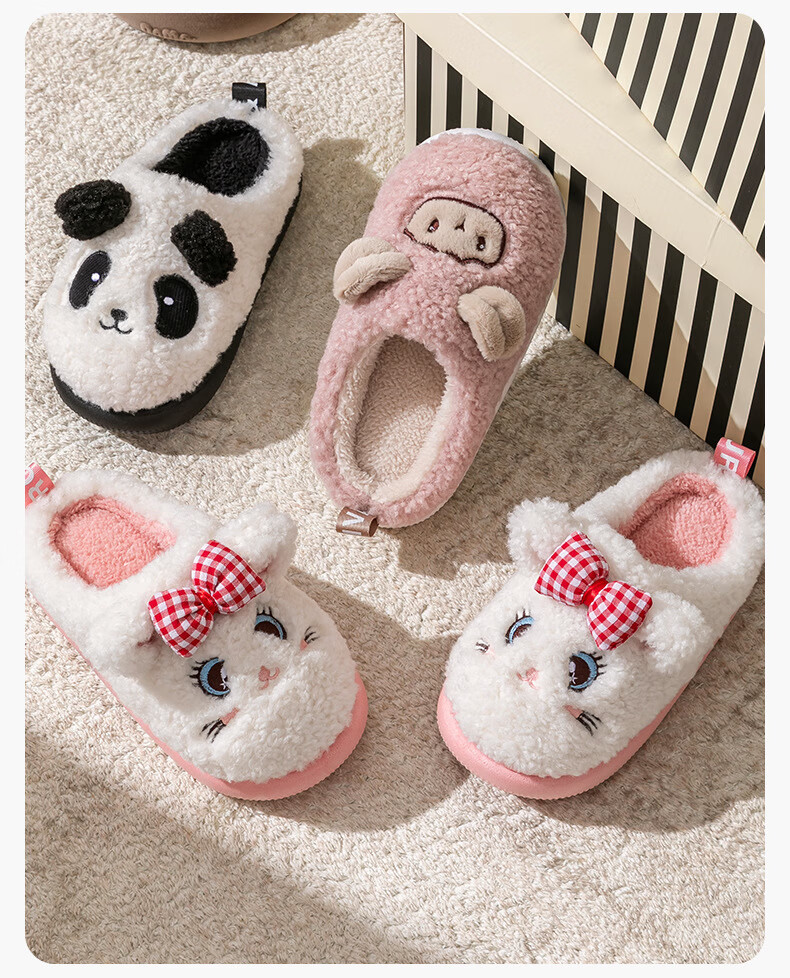 Children's cotton slippers for boys and girls cartoon home warm plus velvet slippers for middle and large children ZBBTX6603 beige (panda) 18 200 shoe inner length 18cm