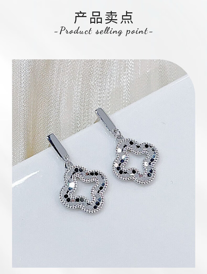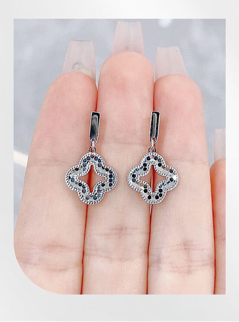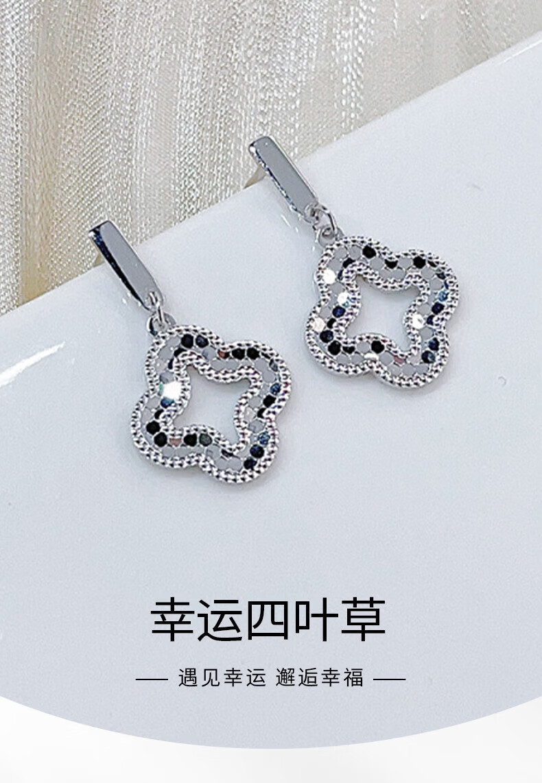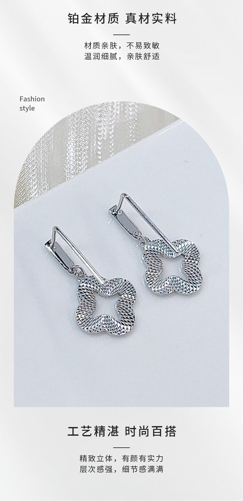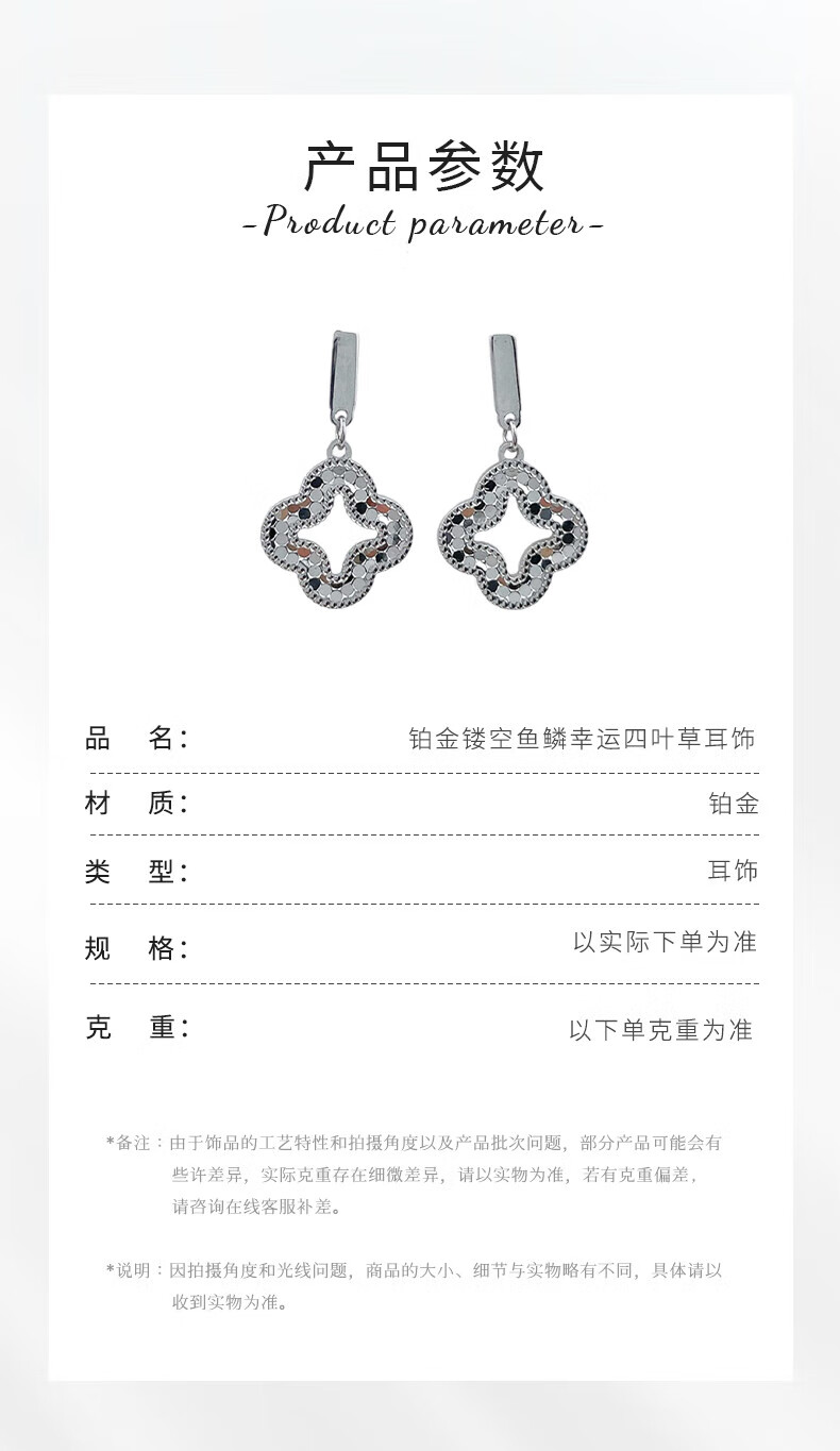 China Gold (CHINA GOLD) (CHINA GOLD) platinum hollow fish scale lucky four-leaf clover earrings about 3.84g