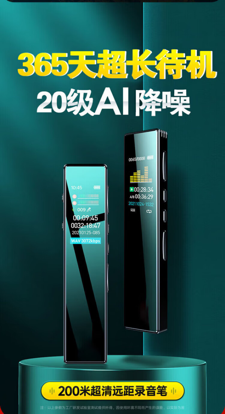 Xulin Germany Recording pen for students to take with them in class, with high-definition noise reduction, special learning recording, playback, automatic conversion to text, meeting minutes, large-capacity battery, ultra-long standby, extreme version, twenty levels of noise reduction + color screen + alloy material + larger battery, 128G, free lanyard + AI to text card