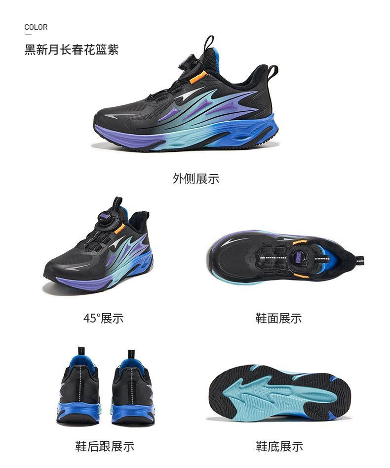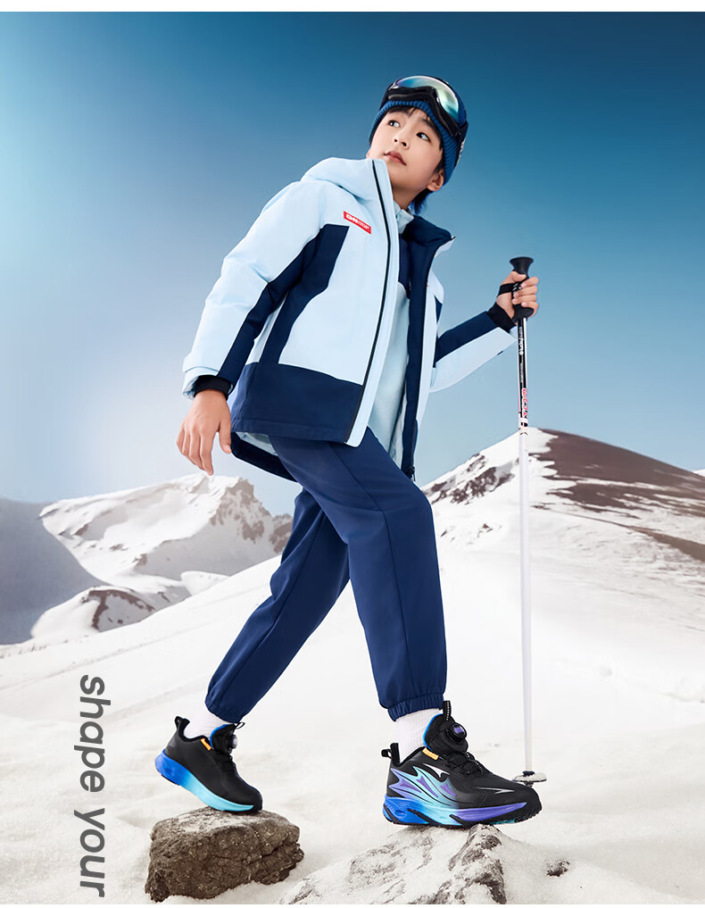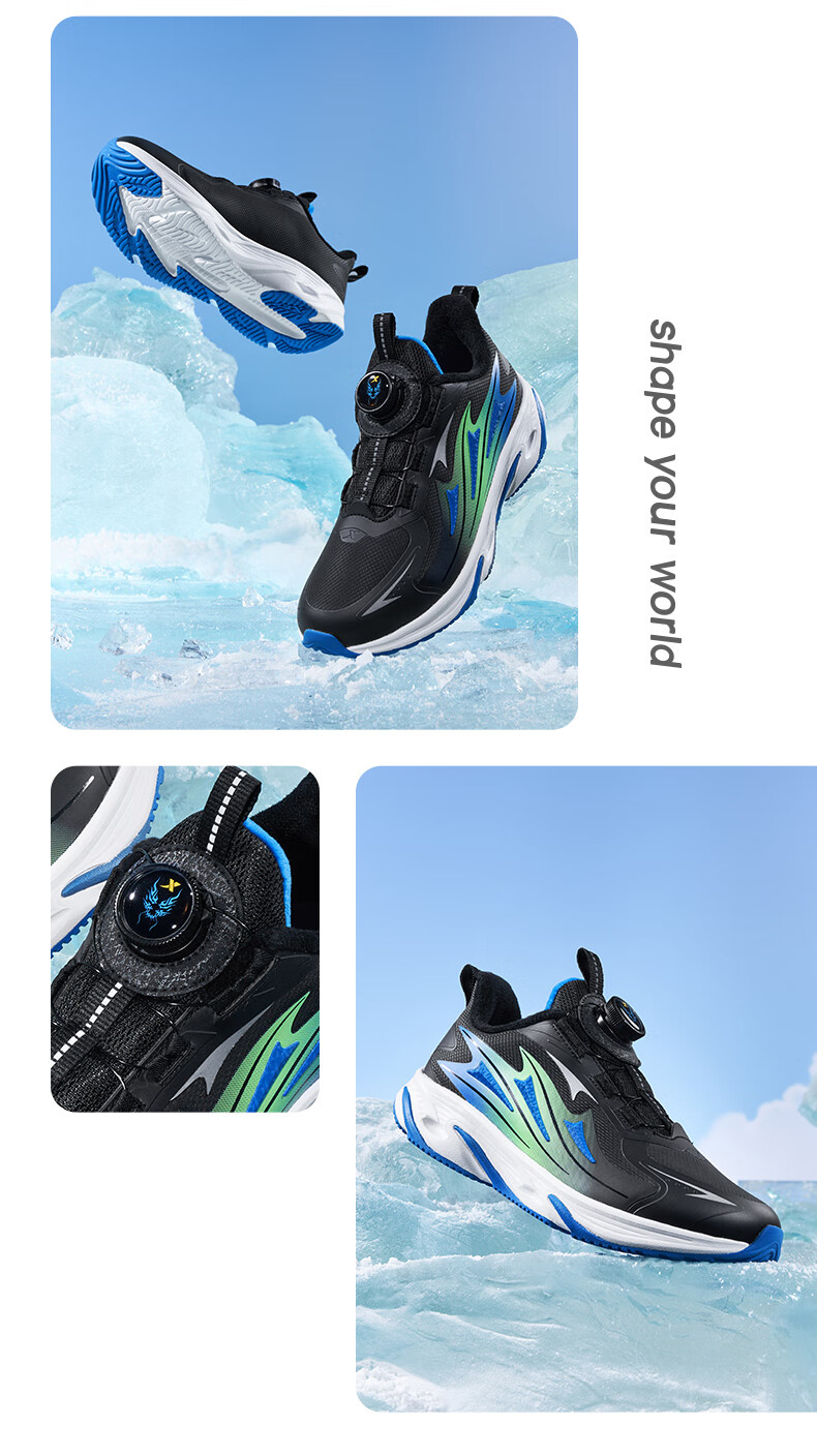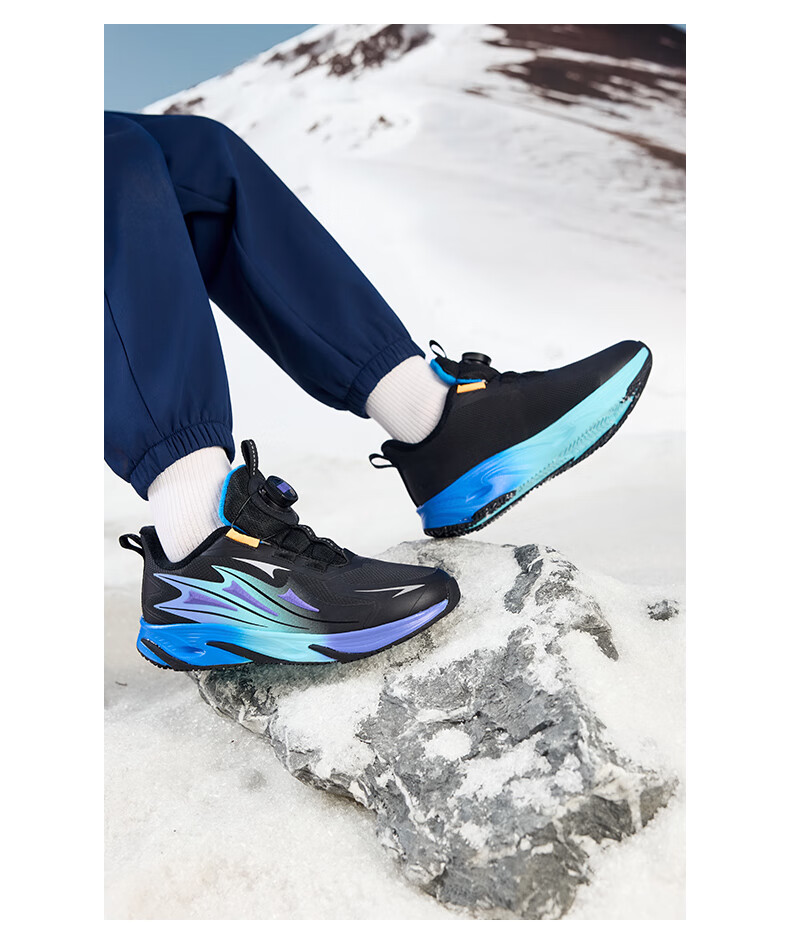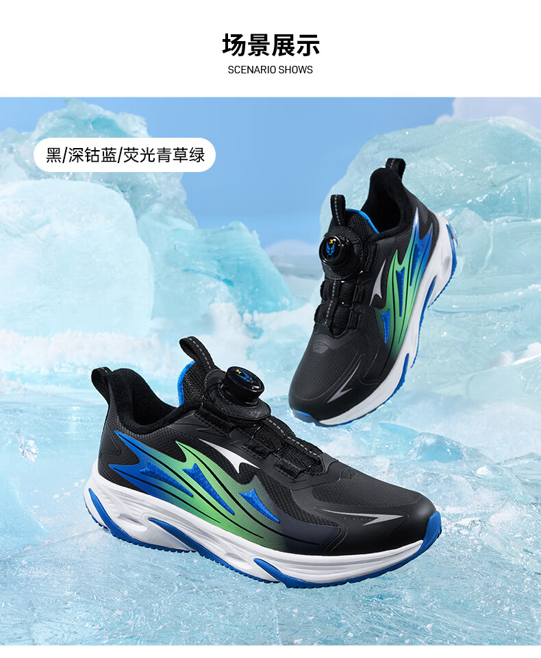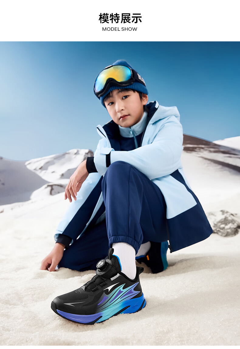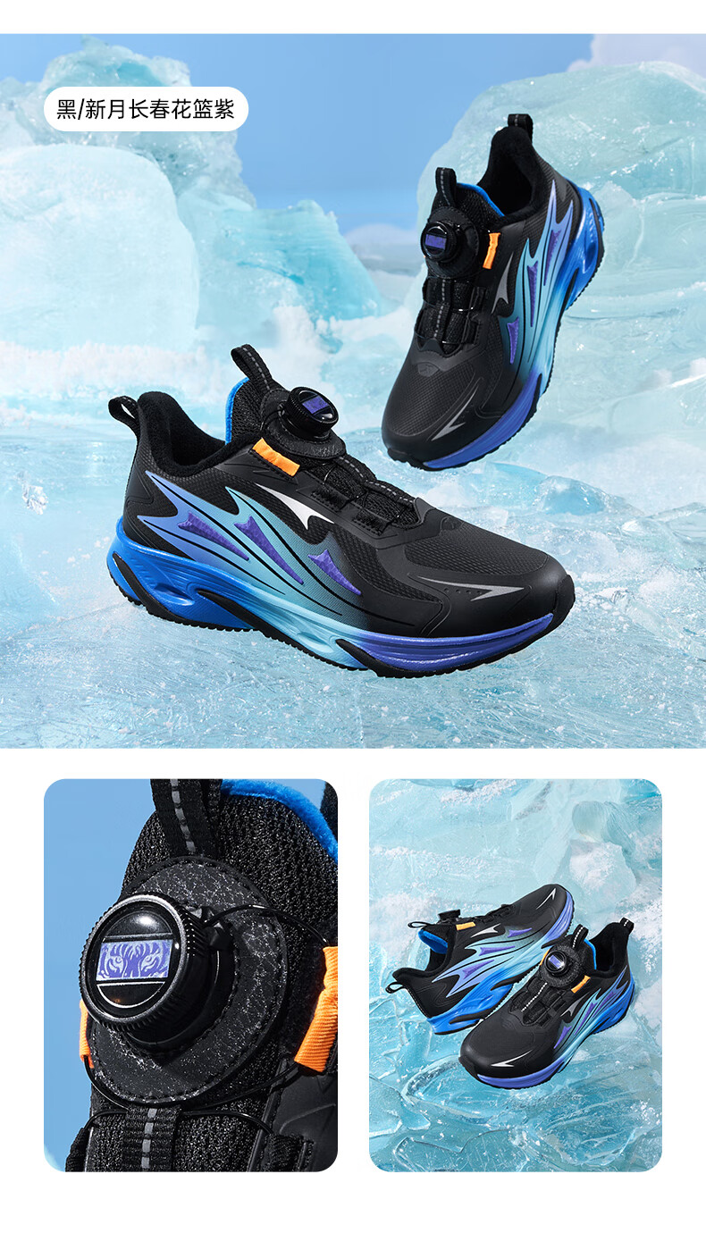 XTEP Children's Winter Low-top Knob Button Plus Velvet Warm Anti-Slip Cushioning Cotton Shoes for Boys, Middle and Large Children Sports and Leisure Black/Dark Cobalt Blue/Fluorescent Grass Green 33