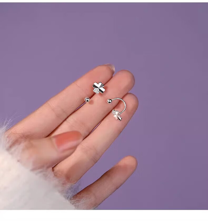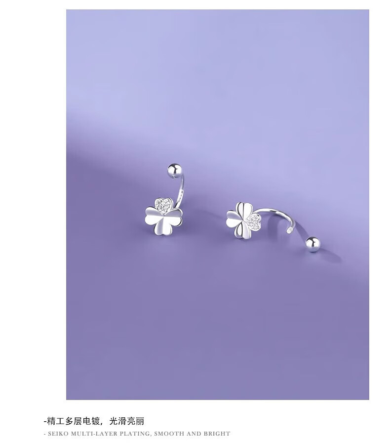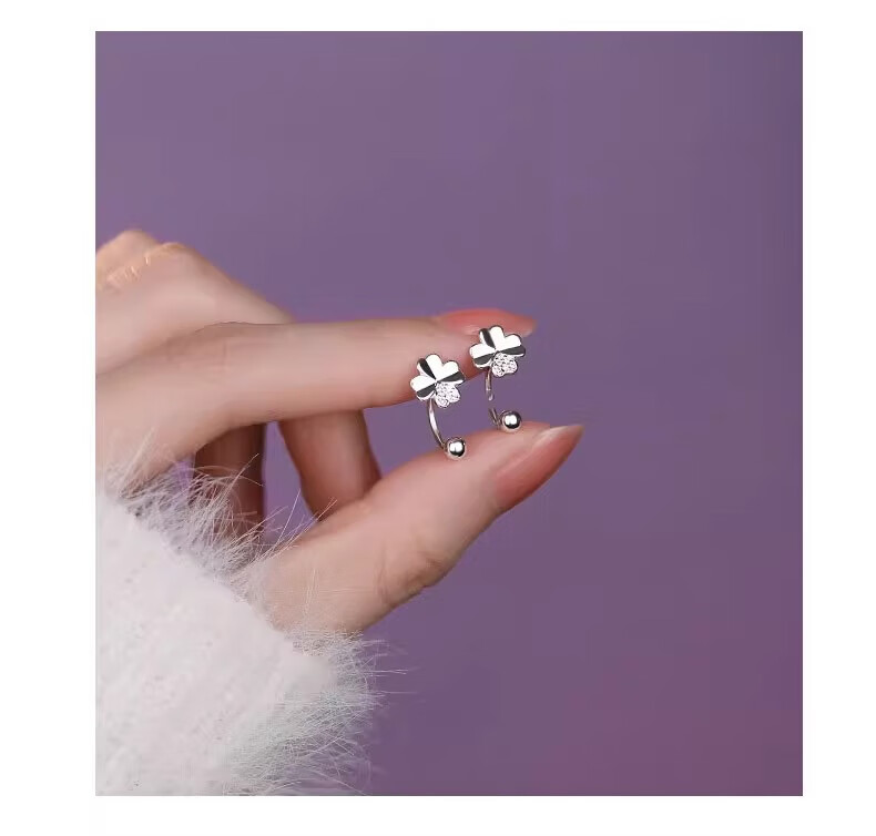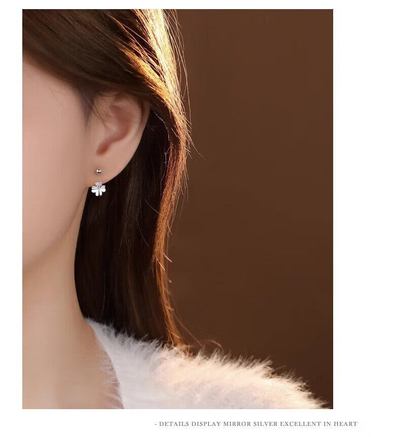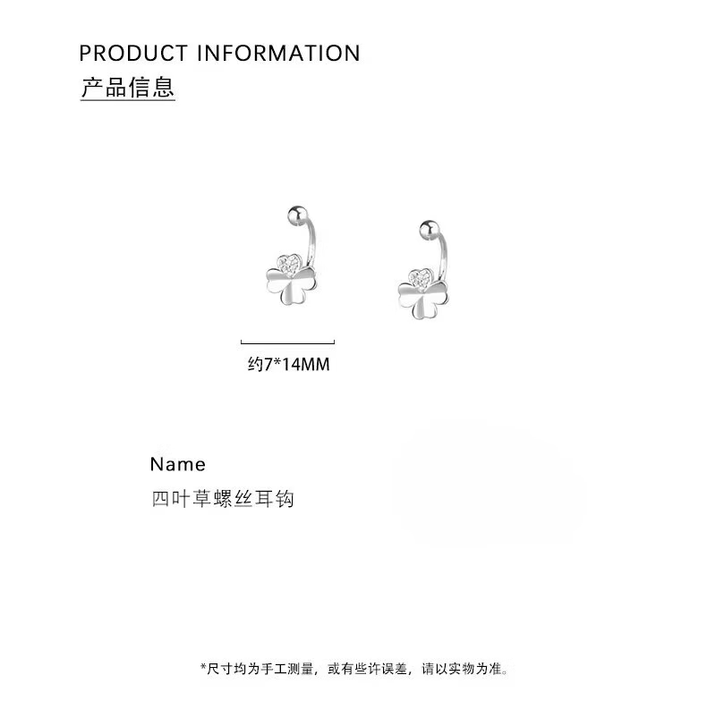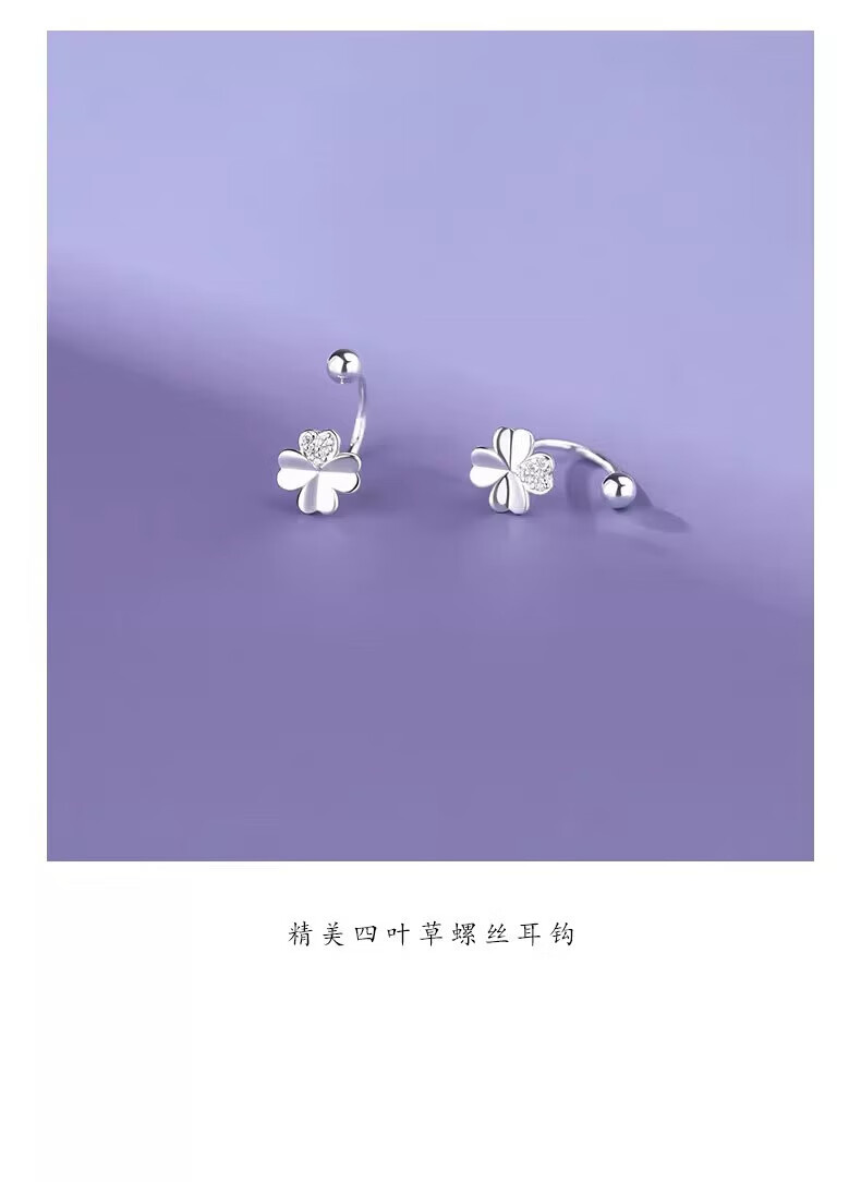 Maiyong Lao Phoenix P950 Platinum Four-leaf Clover Silver Earrings Women's Earrings Screw Buckle Imitation Platinum Gold Ear Bone Nails 2025 Four-leaf Clover Ear Hooks - Light Luxury Style
