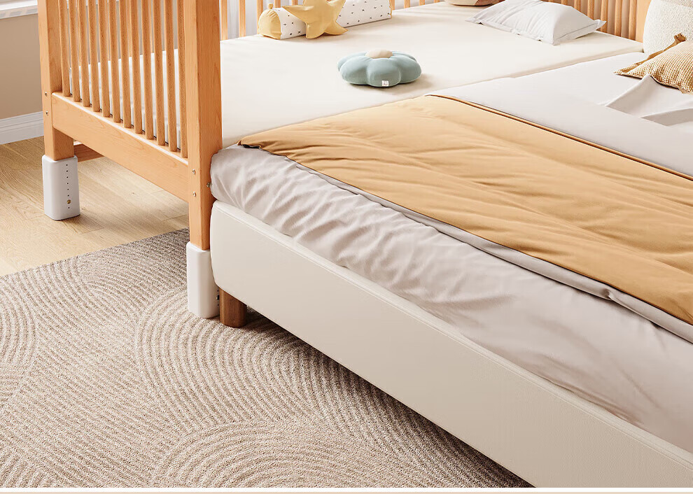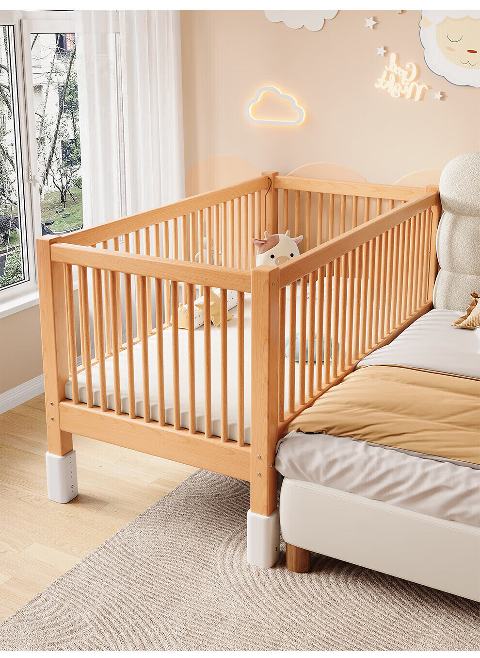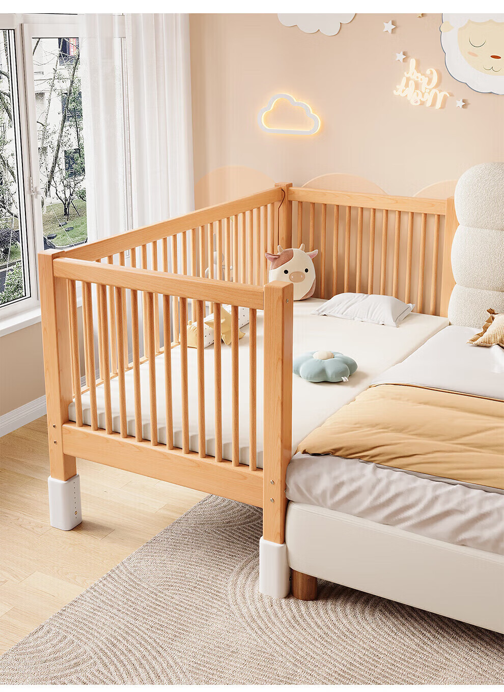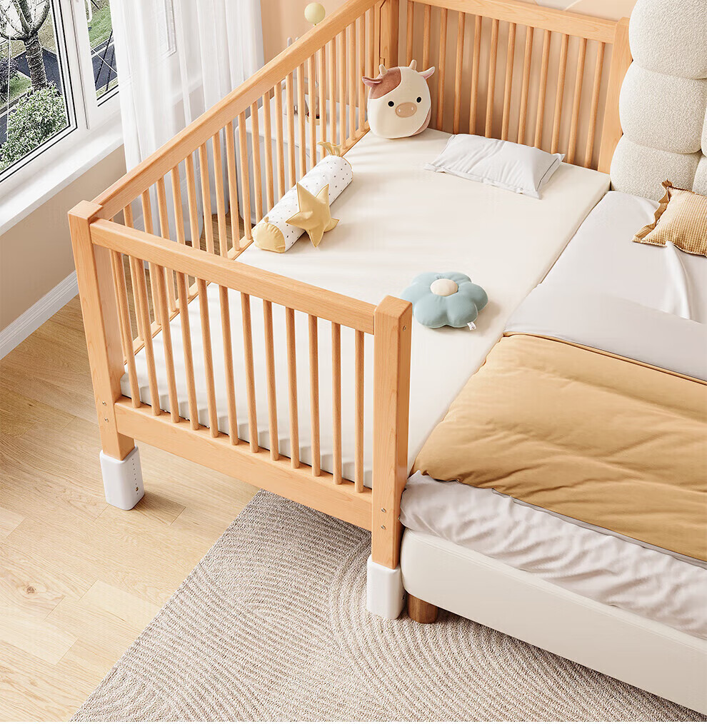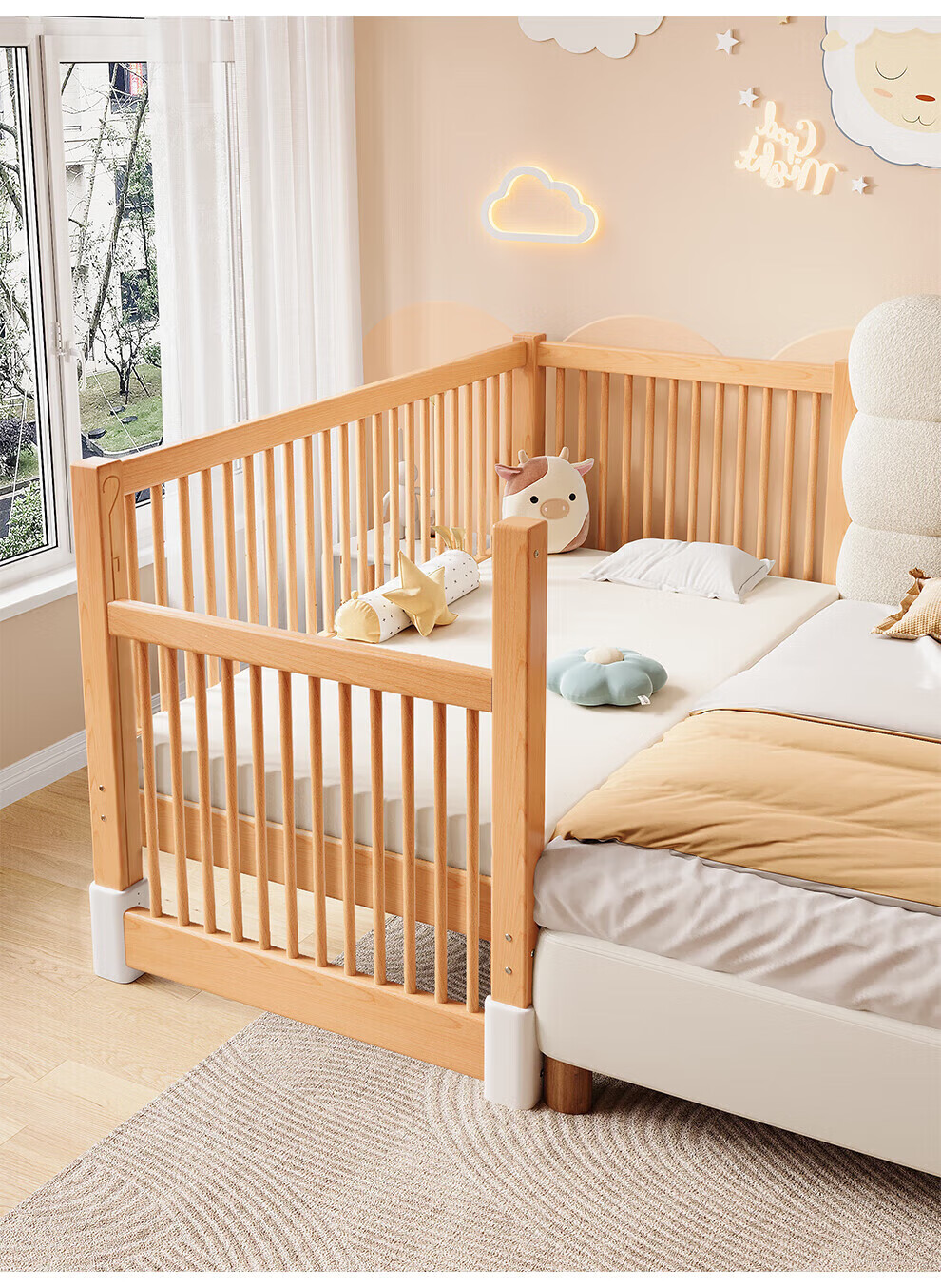Qiuying liftable beech wood spliced bed crib widened spliced large bed children's bedside bed spliced bed with three side lifting 5cm mattress + 7A antibacterial cotton bedside can lift length 200 width 60 height 35 60 guardrails