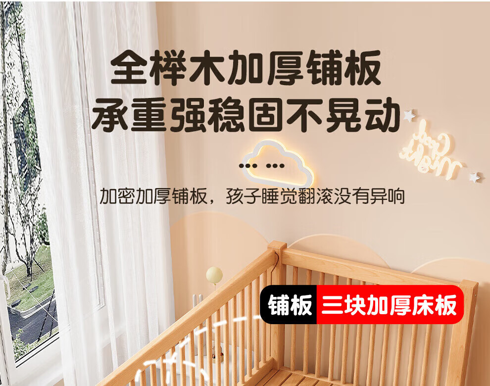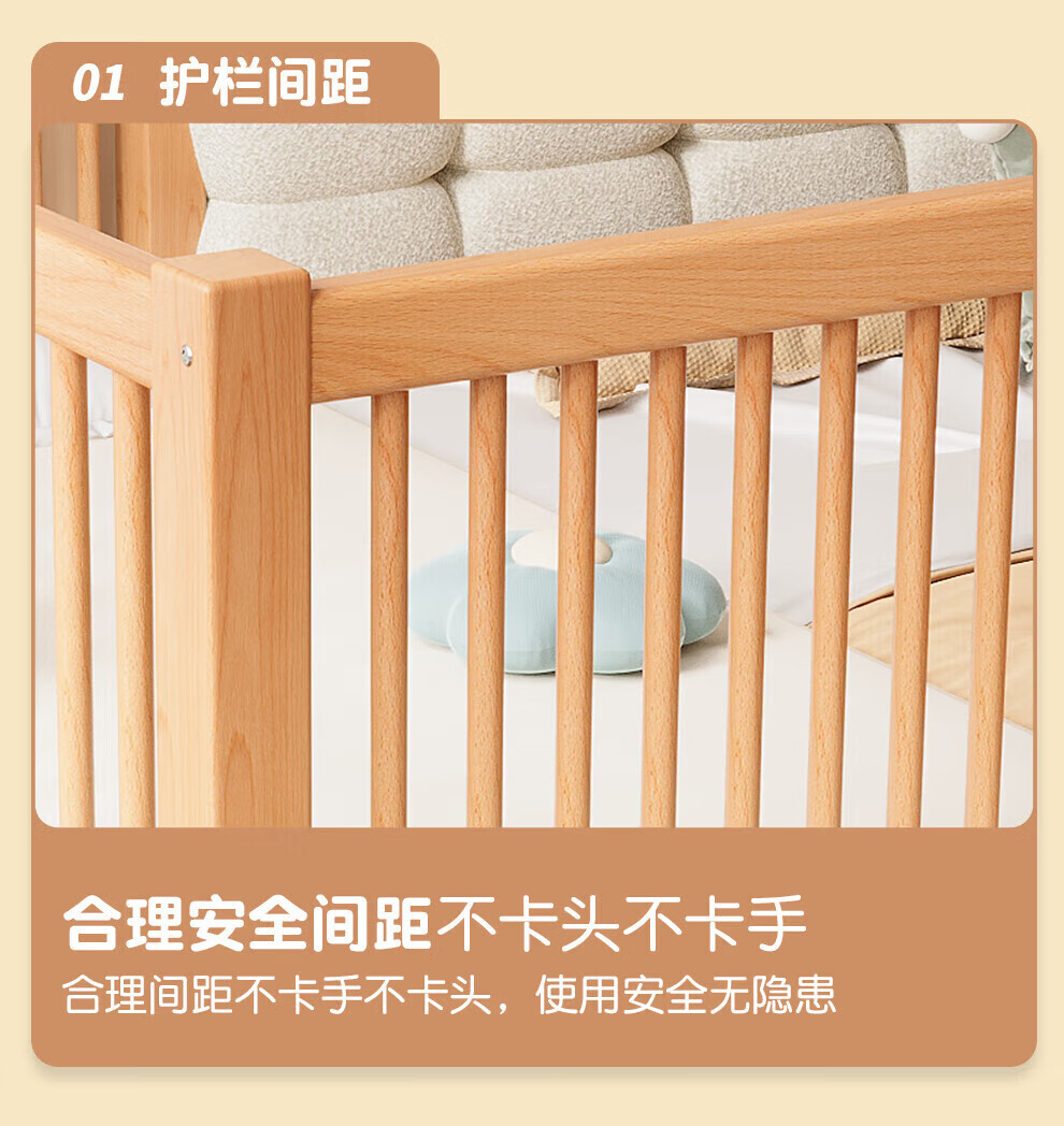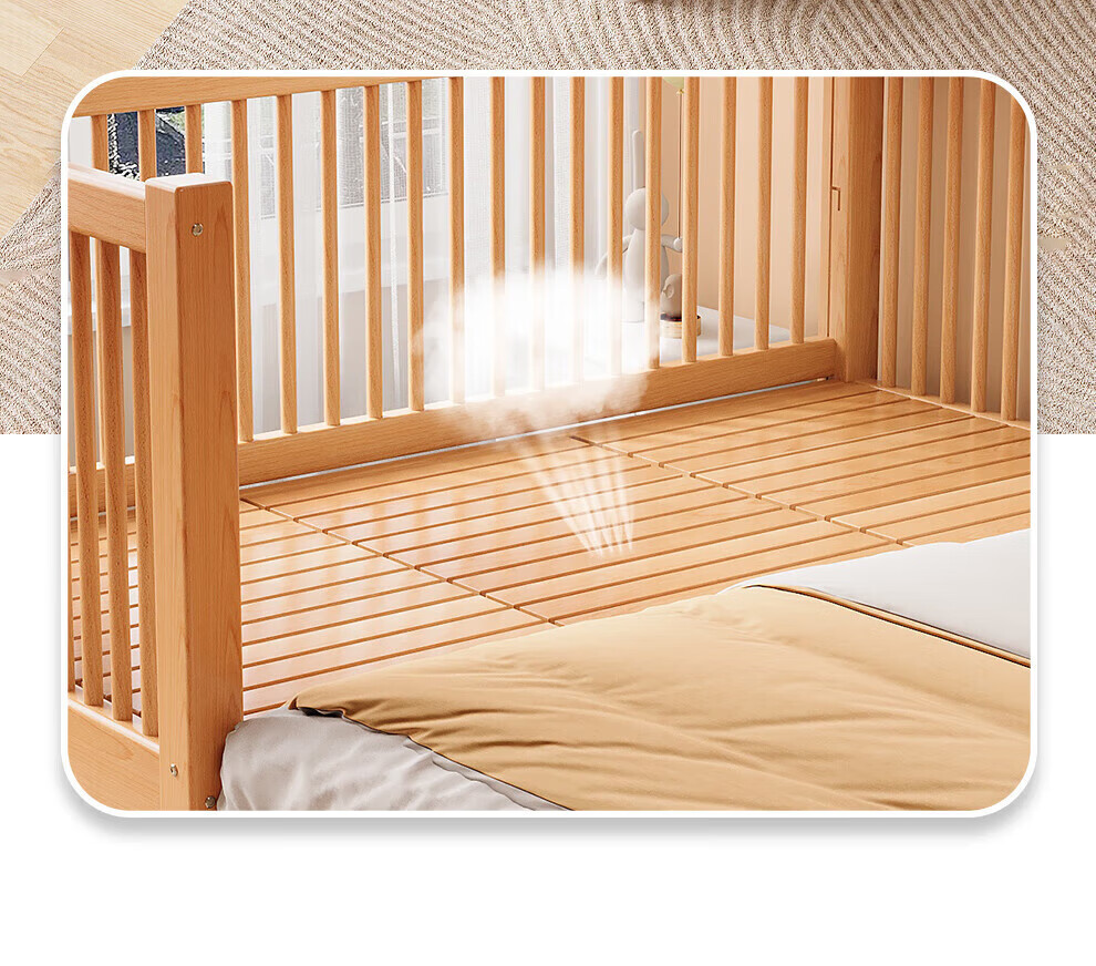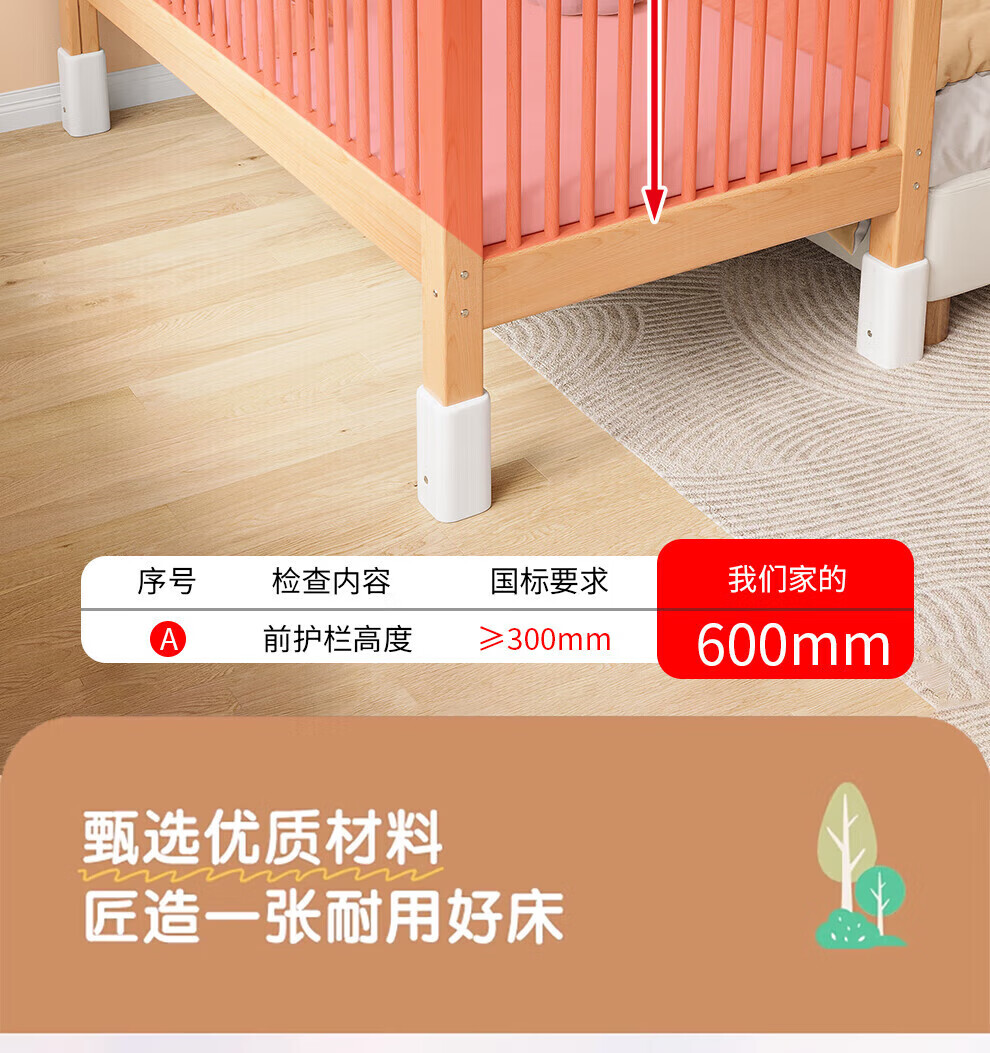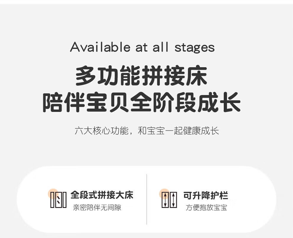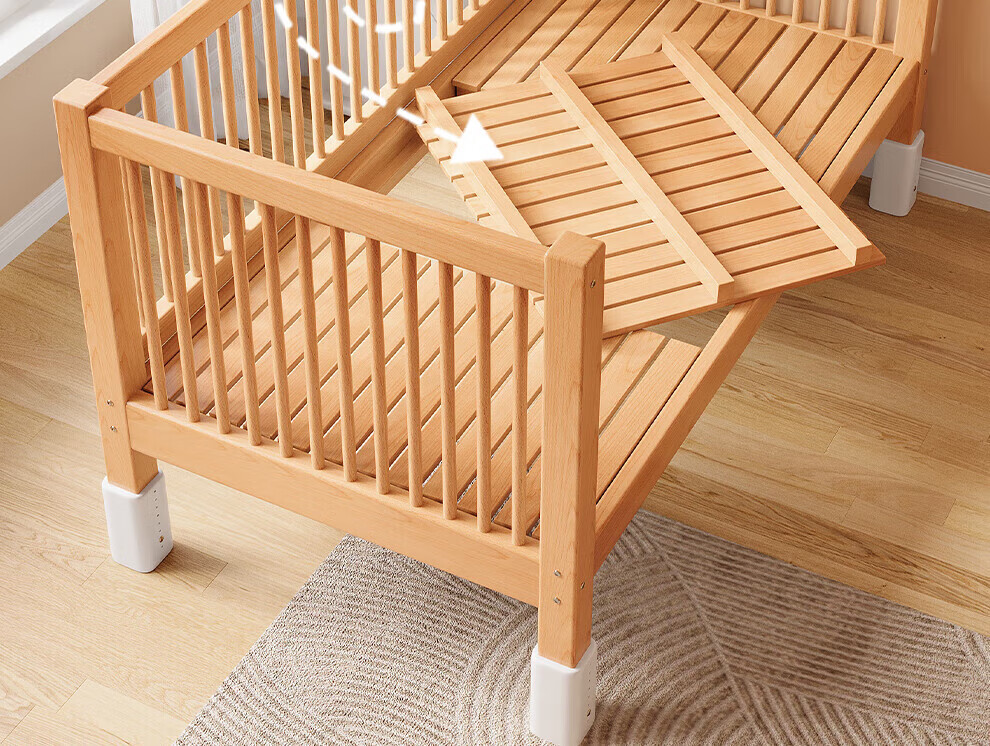 Qiuying liftable beech wood spliced bed crib widened spliced large bed children's bedside bed spliced bed with three side lifting 5cm mattress + 7A antibacterial cotton bedside can lift length 200 width 60 height 35 60 guardrails