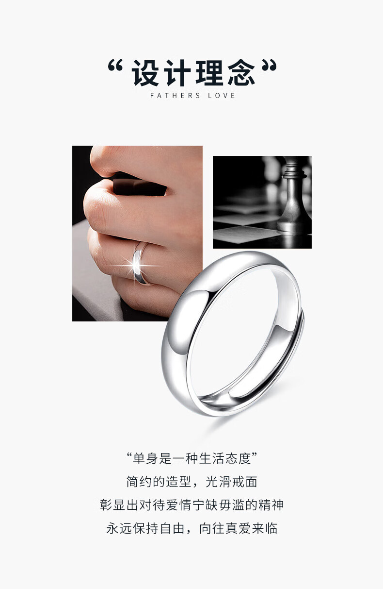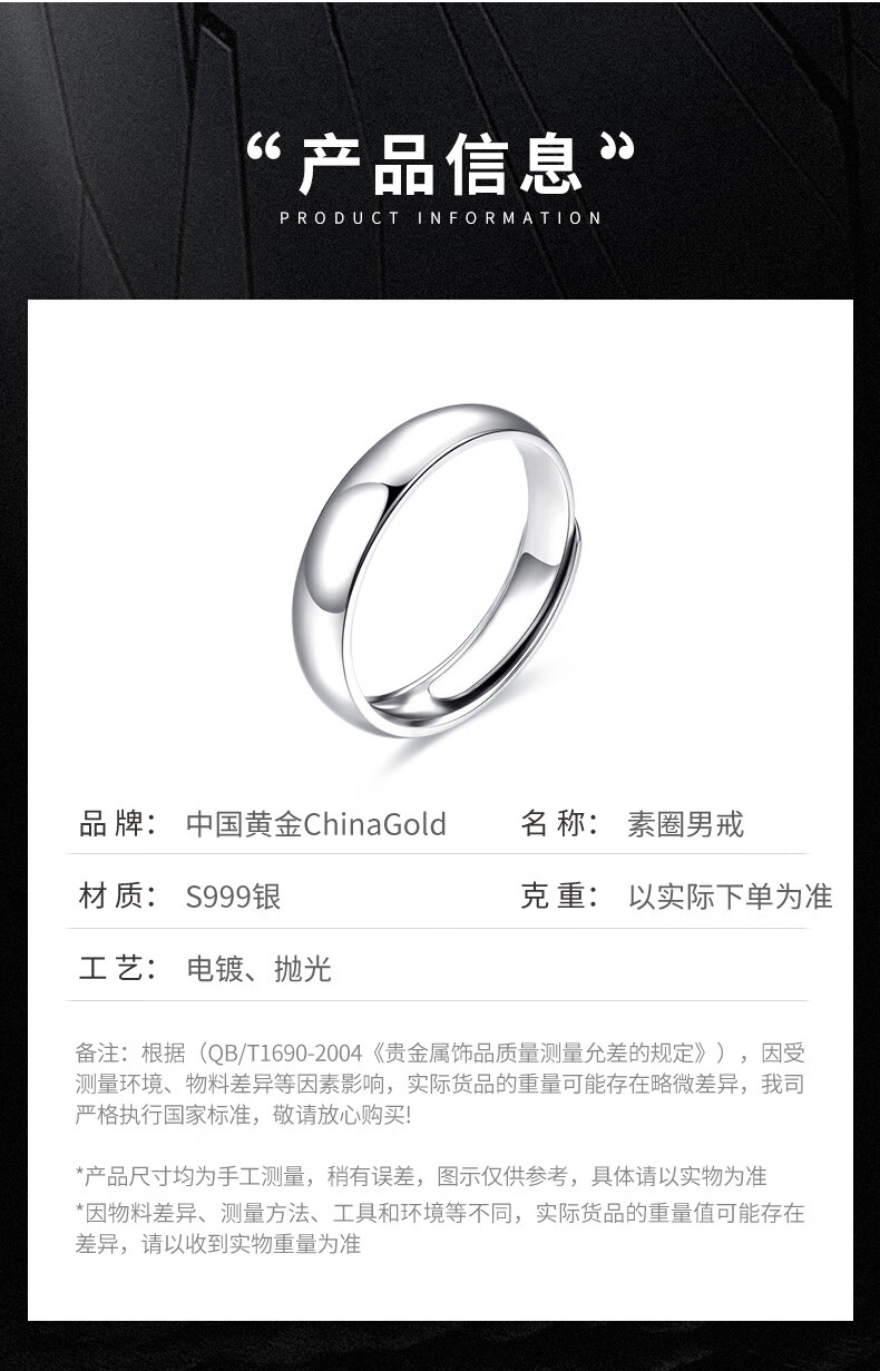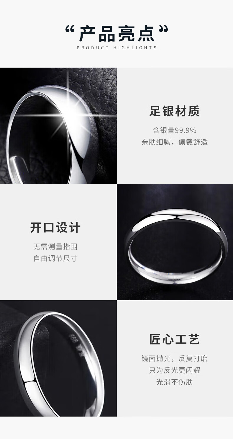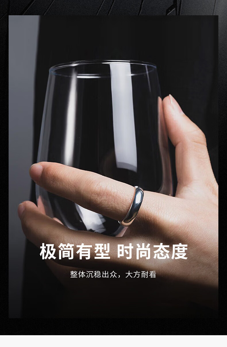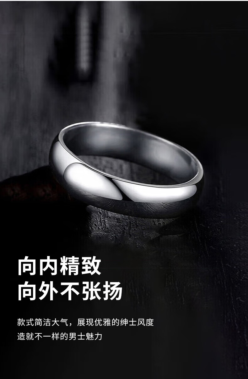 CHINA GOLD self-disciplined pure silver men's ring men's niche tail ring single Valentine's Day birthday gift for girlfriend and wife 925 silver classic plain ring (light version) brand gift box