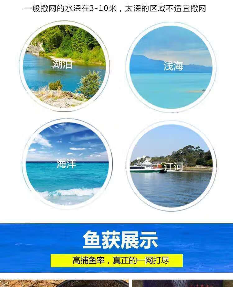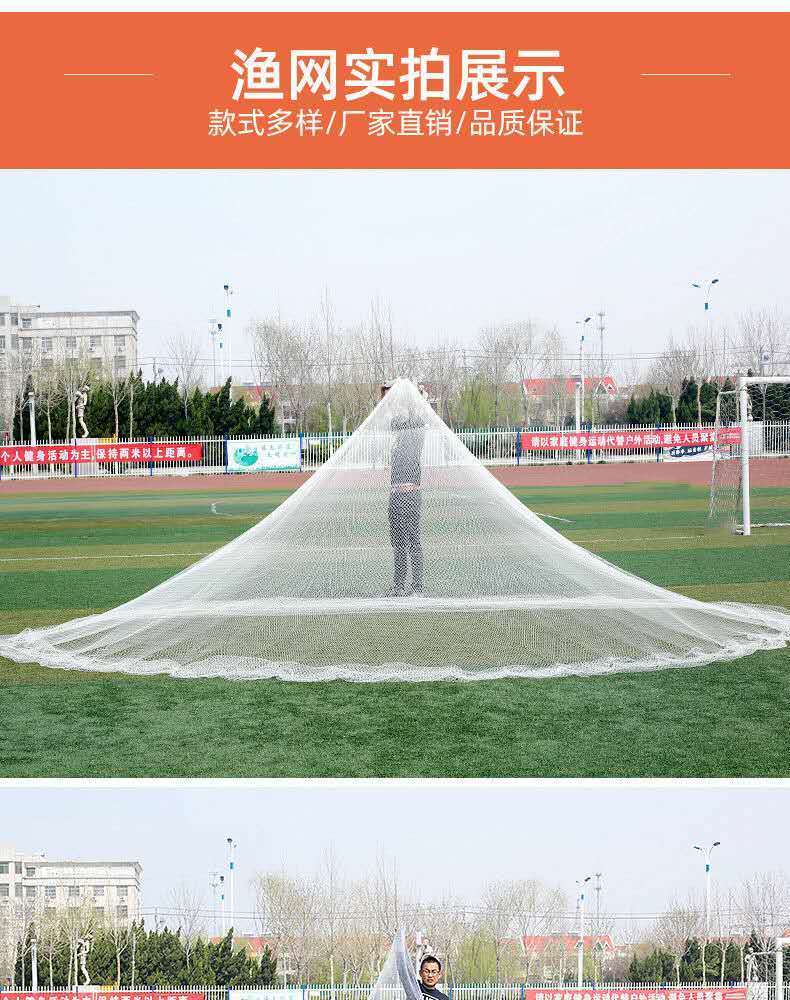 Old-fashioned traditional hand-thrown fishing net, rotating net, hand-thrown net, old-fashioned fishing net, old-fashioned fishing net, tire wire 2 meters high, 3 meters wide, 4Jin Jin is equal to 0.5kg, one-finger mesh, upgraded steel pendant