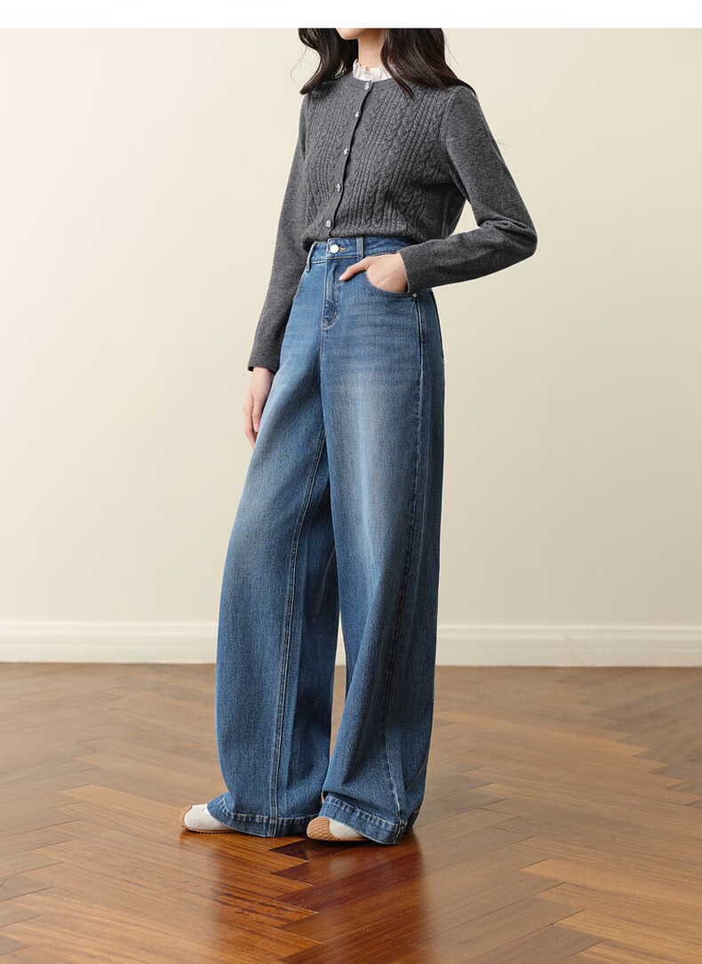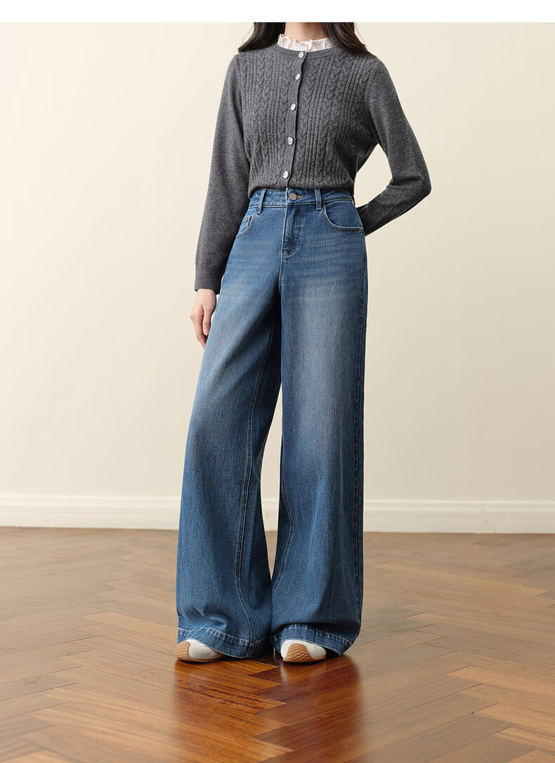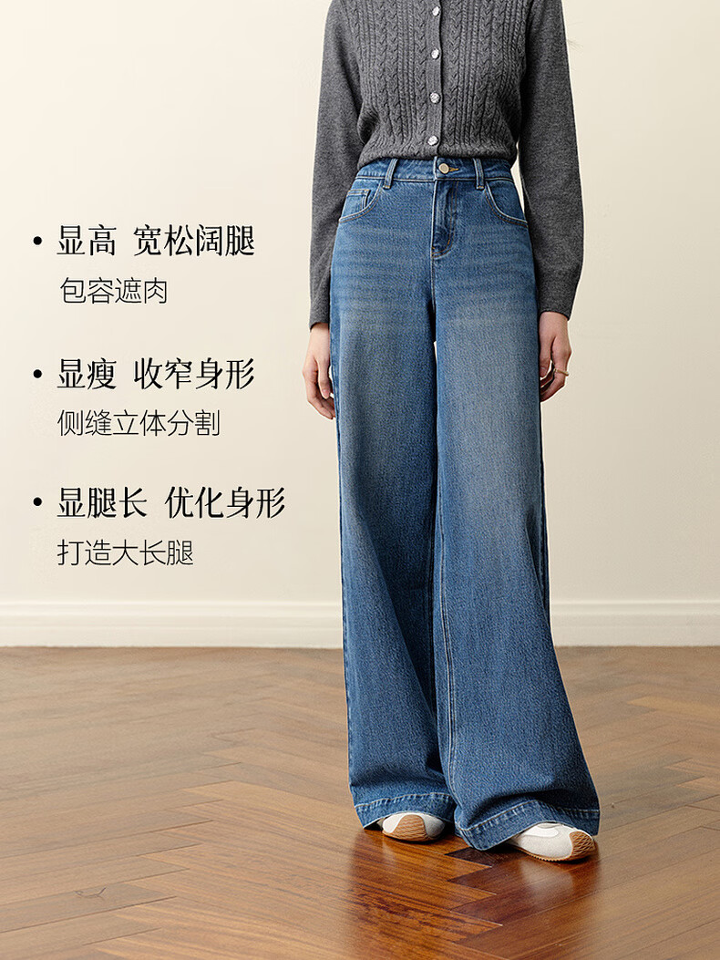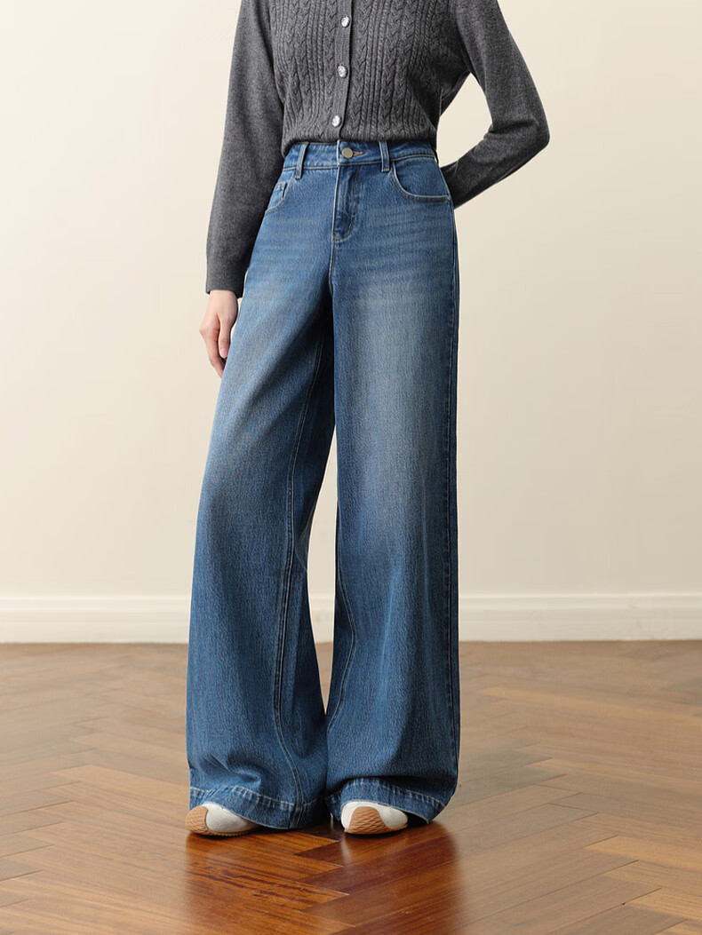 SEIFINI Meng Ziyi endorses wide-leg straight jeans 2025 autumn new loose floor-length drape cotton elastic trousers denim blue M