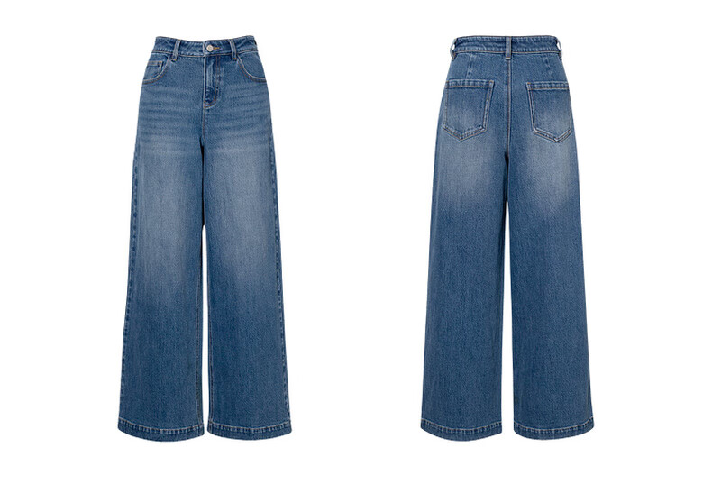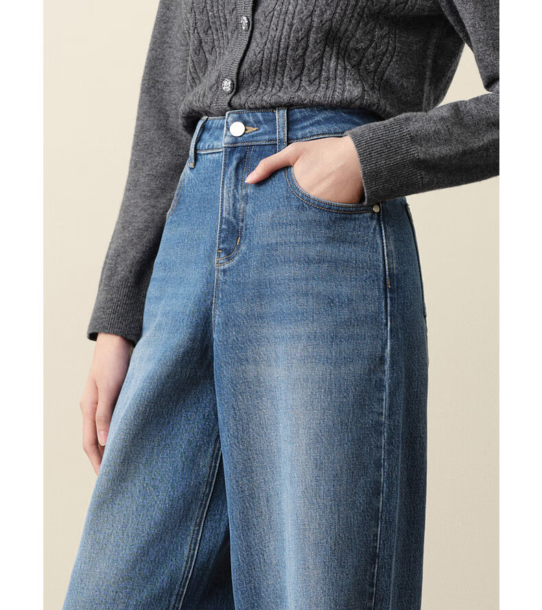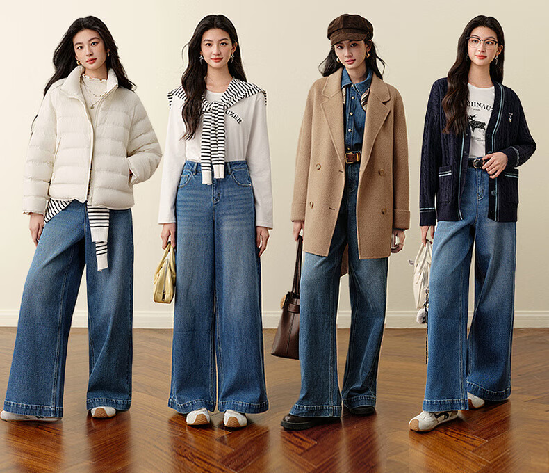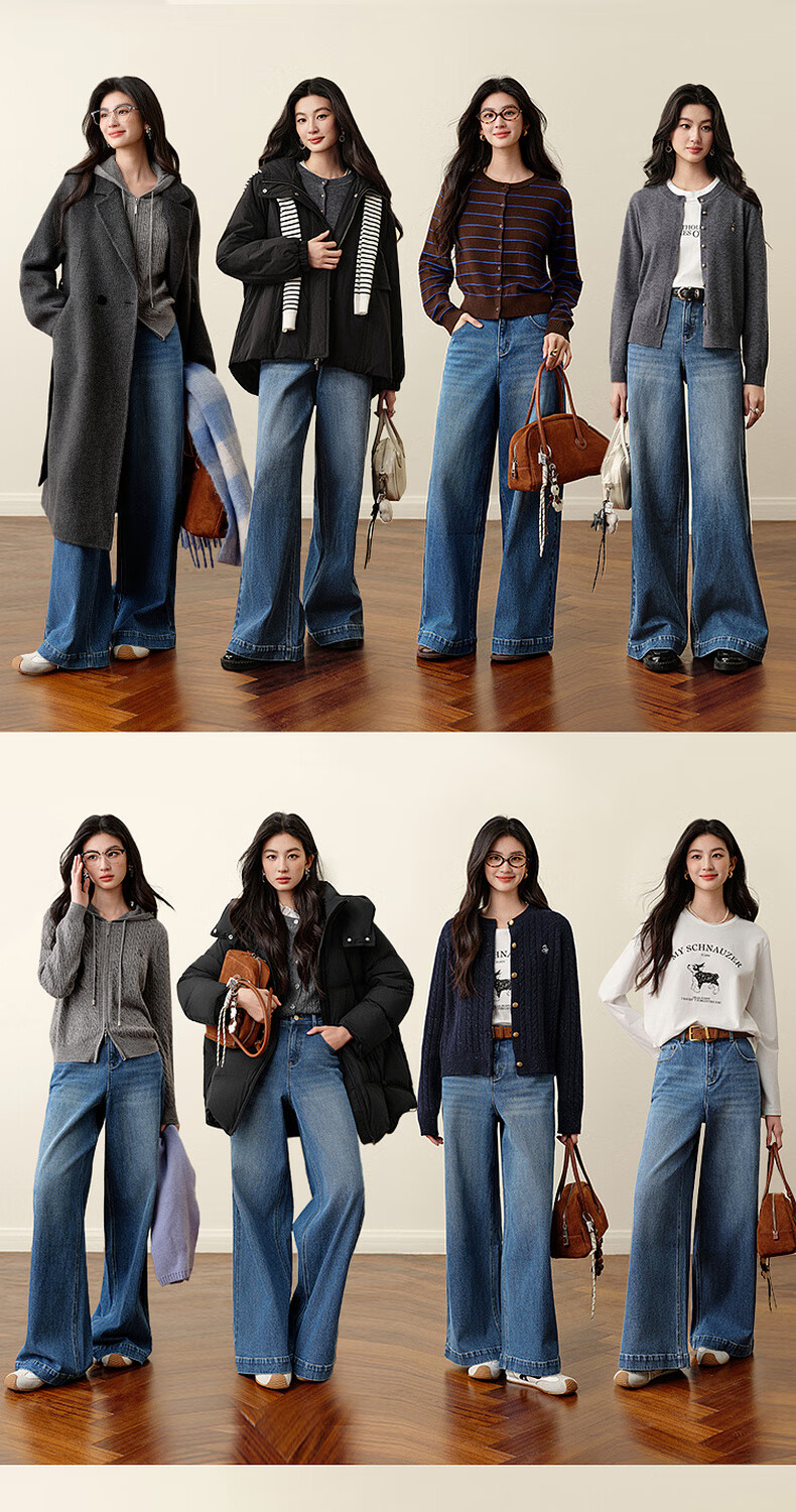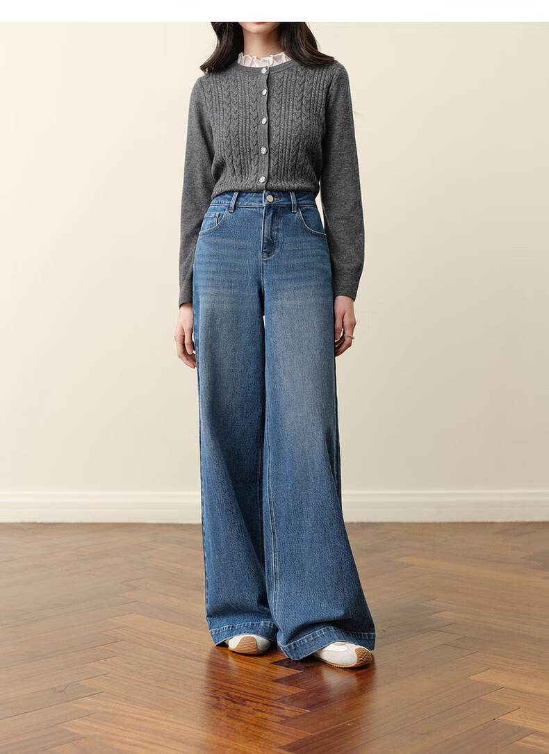 SEIFINI Meng Ziyi endorses wide-leg straight jeans 2025 autumn new loose floor-length drape cotton elastic trousers denim blue M