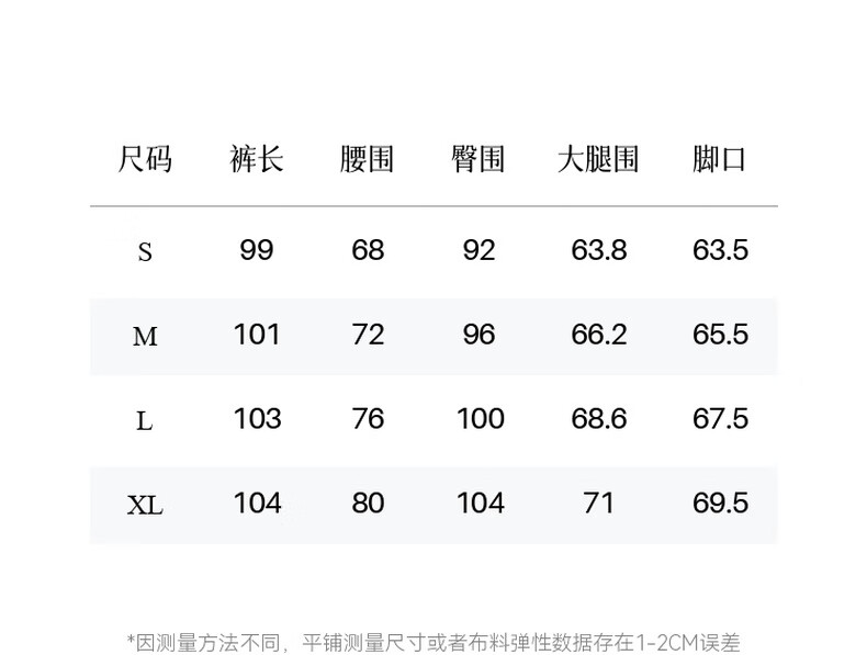 Outseam (cm) 99 cm 101.5 cm 104 cm 106.5 cm 109 cm