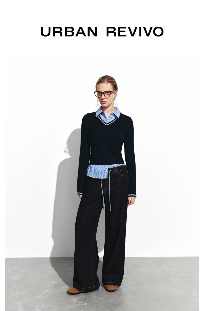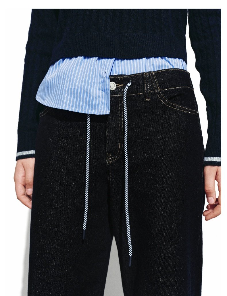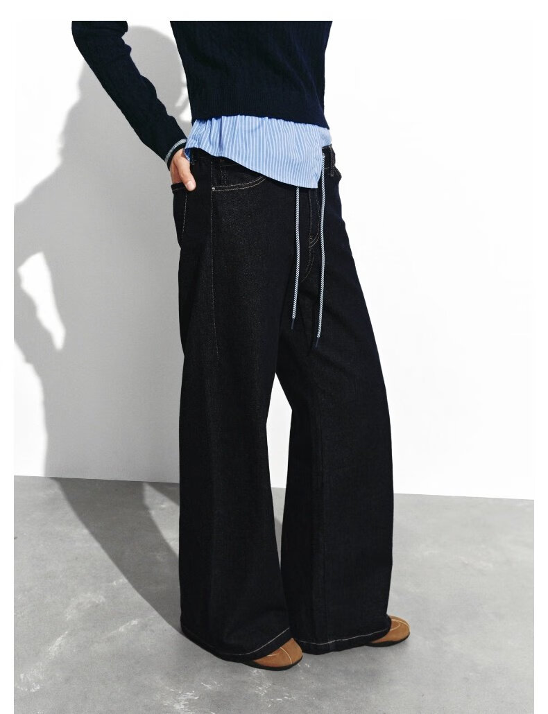 UR2025 new winter women's casual elastic waist drawstring denim trousers UYY850264 Indigo 26