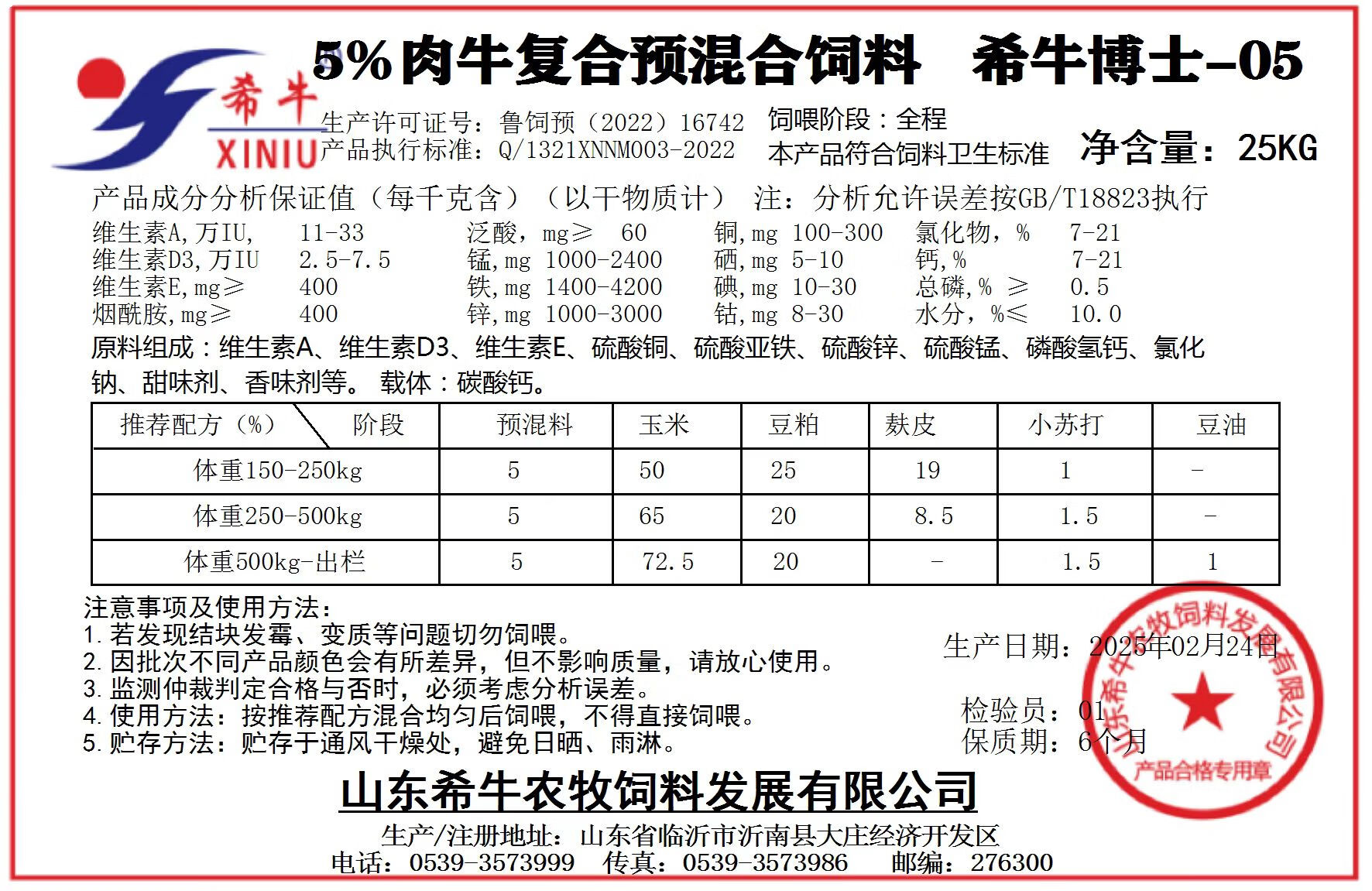 Xi Niu feed 5% beef cattle premix, fattening cattle premix, beef cattle special feed, fattening period cattle feed 5% beef cattle premix 2 bags/50KG
