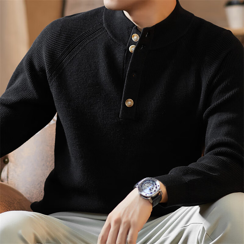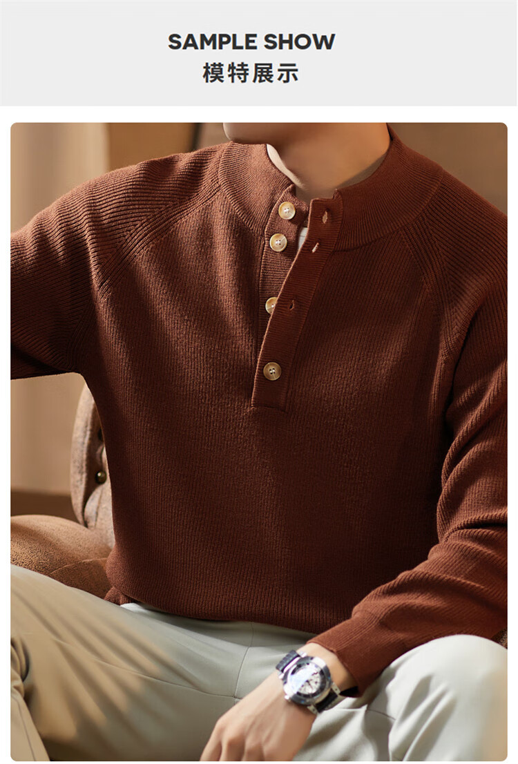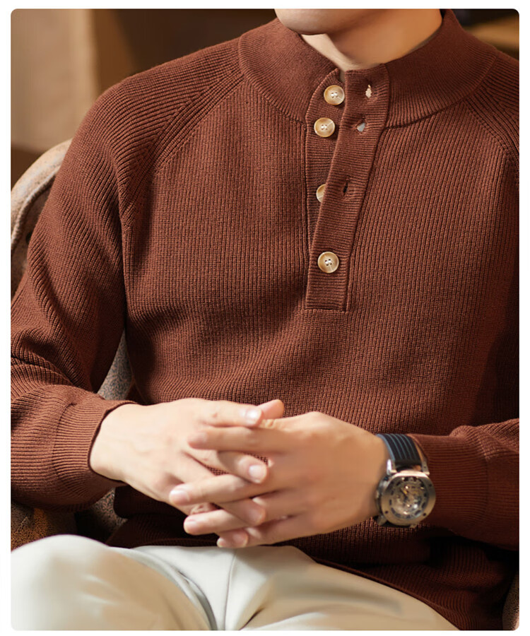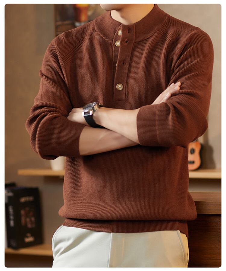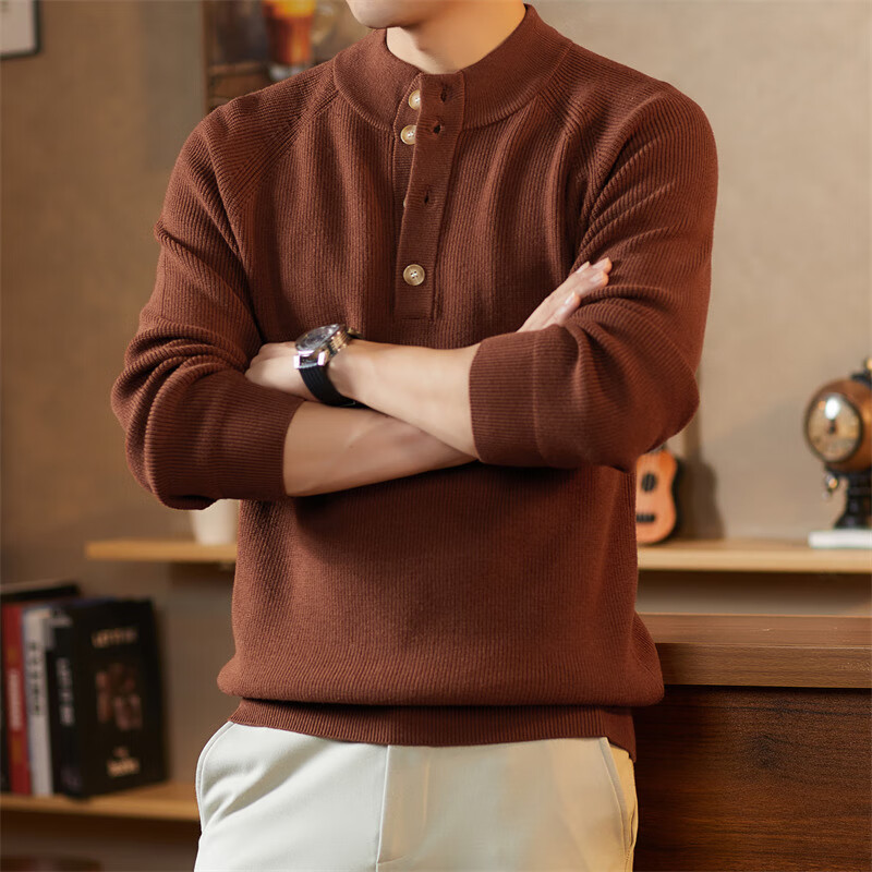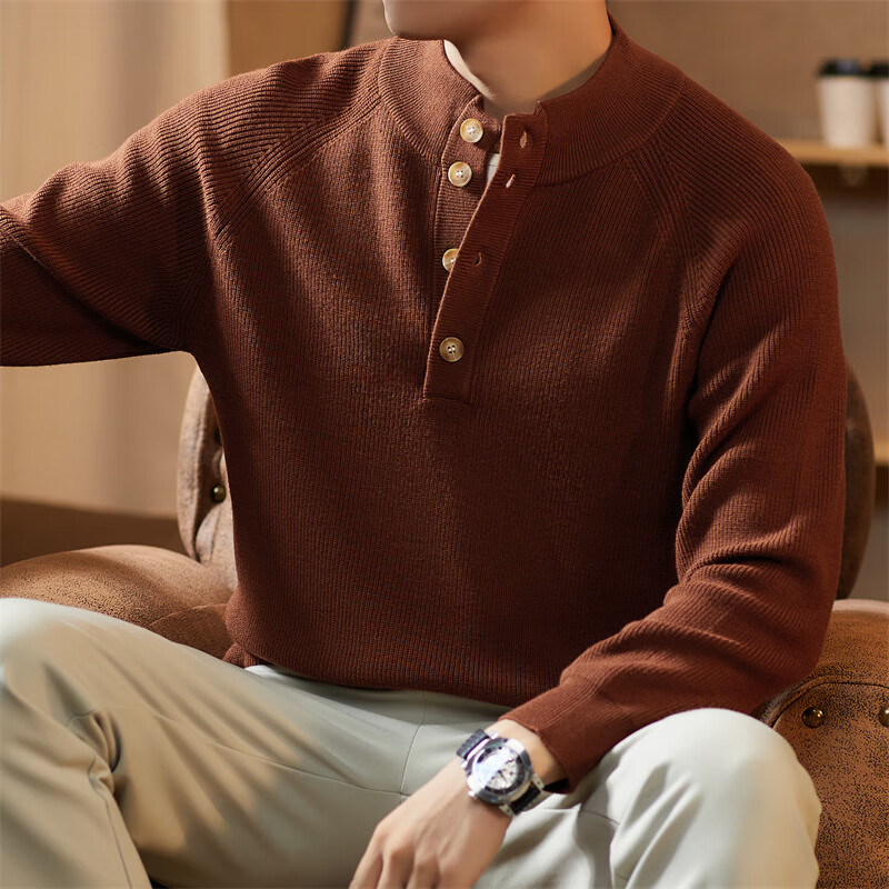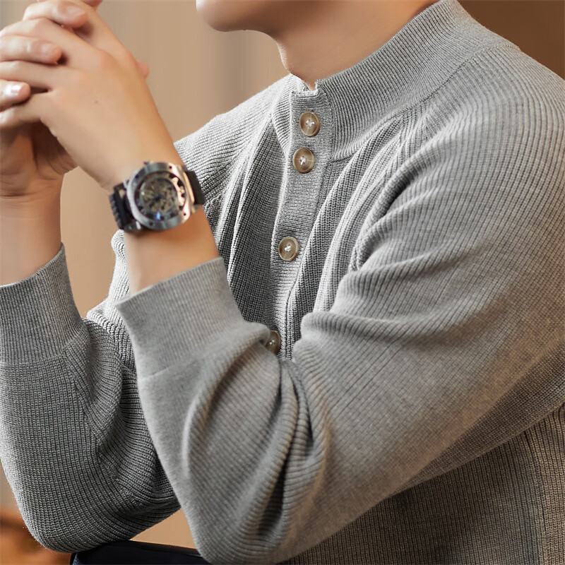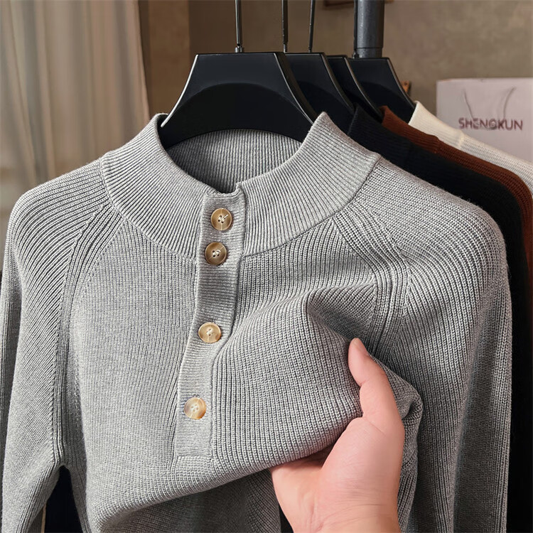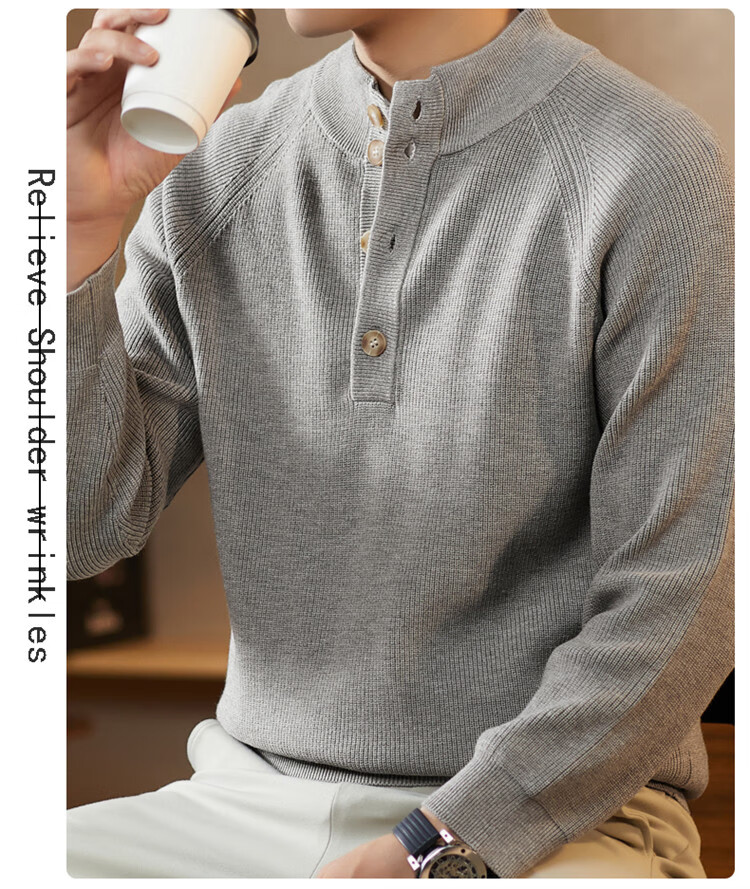 ROMON Japanese retro solid color Henry collar pullover sweater jacket for men autumn and winter new bottoming with casual sweater Gray S 165/80A