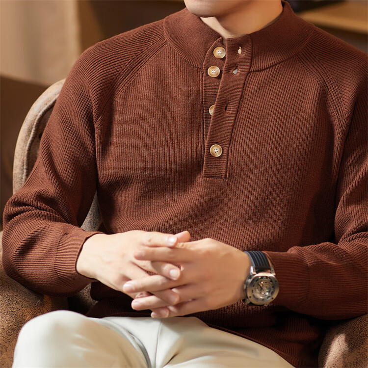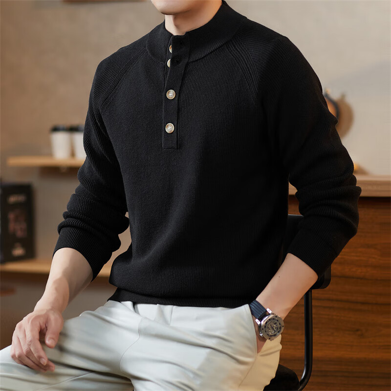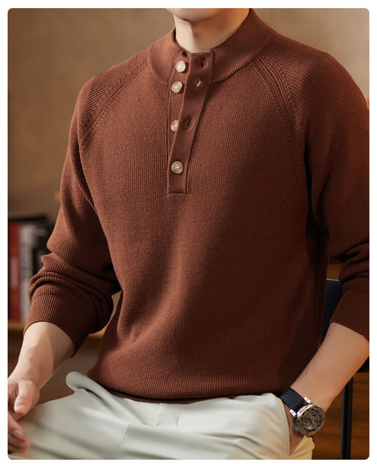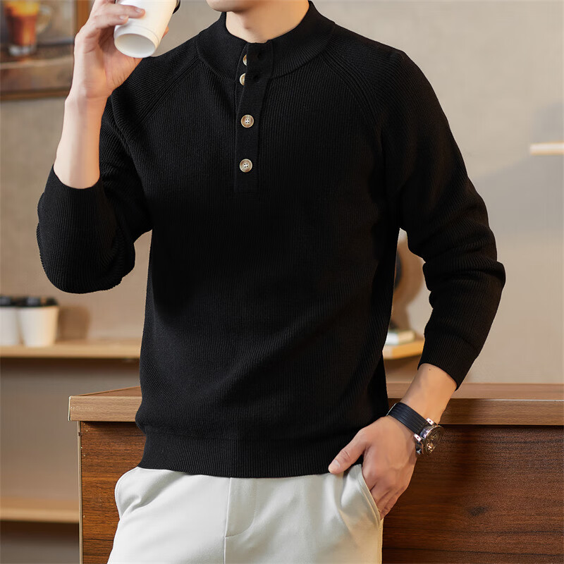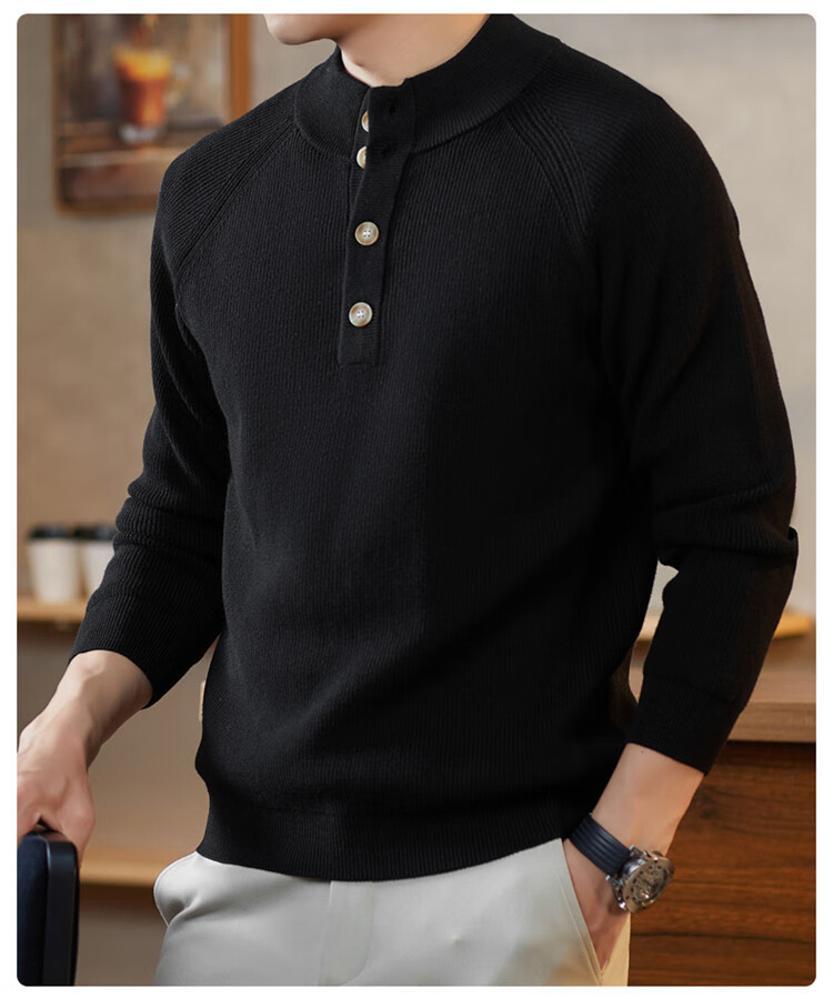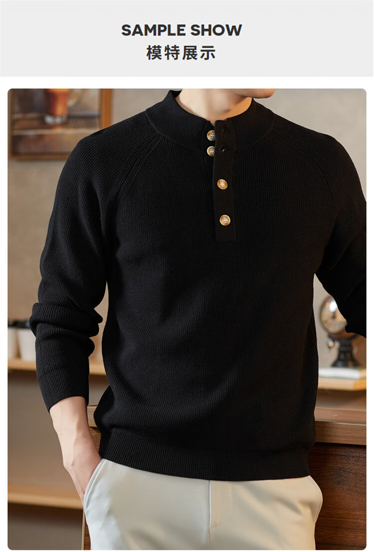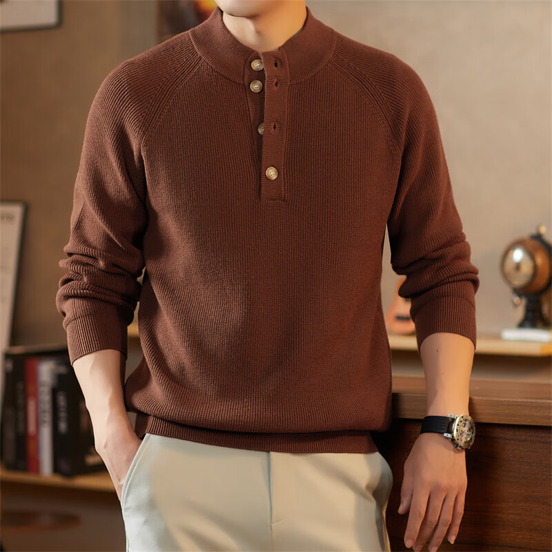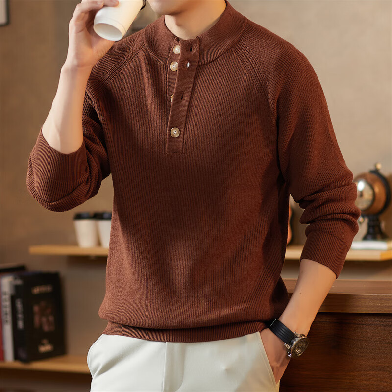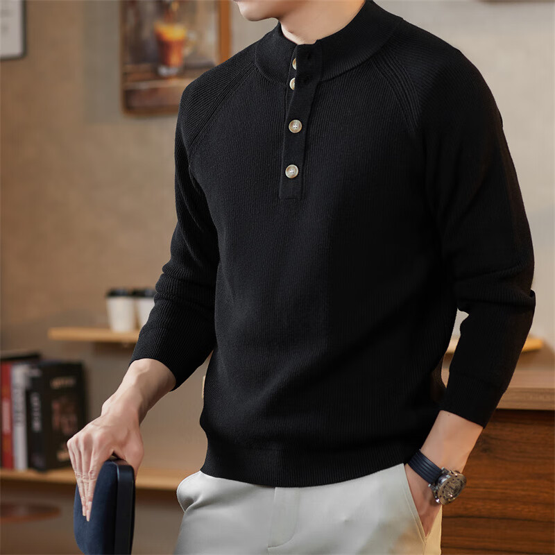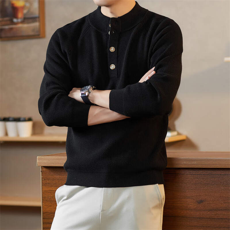 ROMON Japanese retro solid color Henry collar pullover sweater jacket for men autumn and winter new bottoming with casual sweater Gray S 165/80A