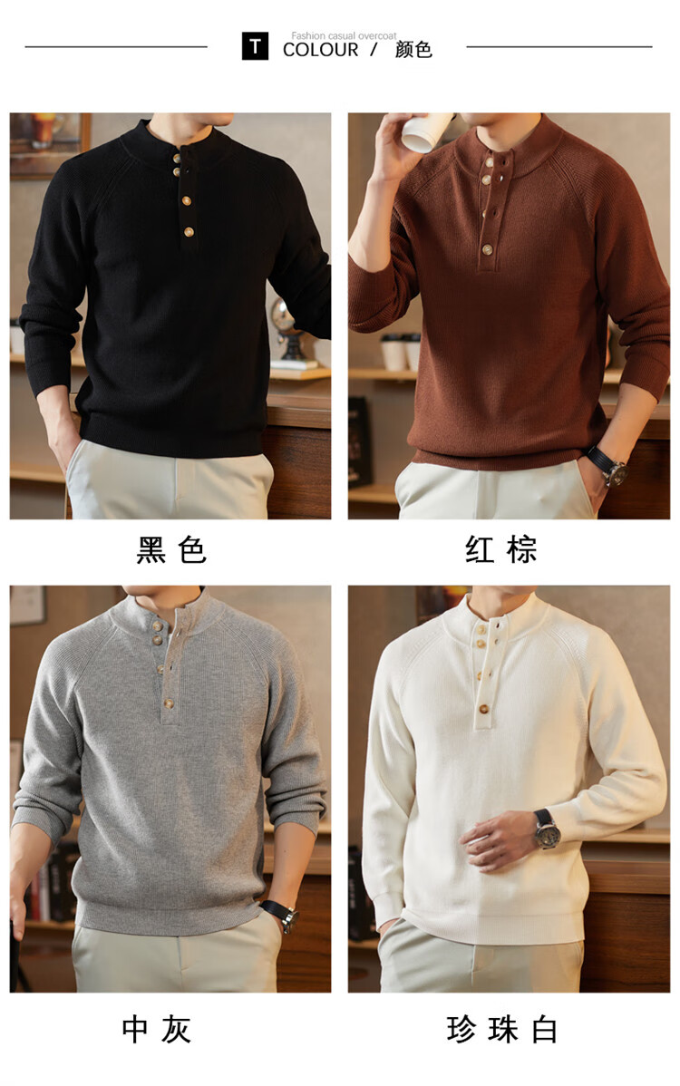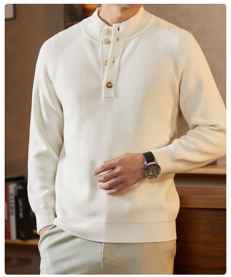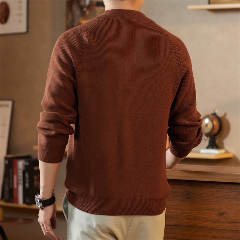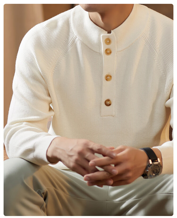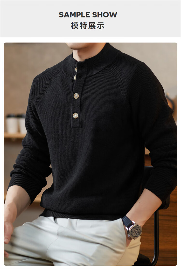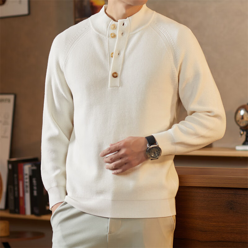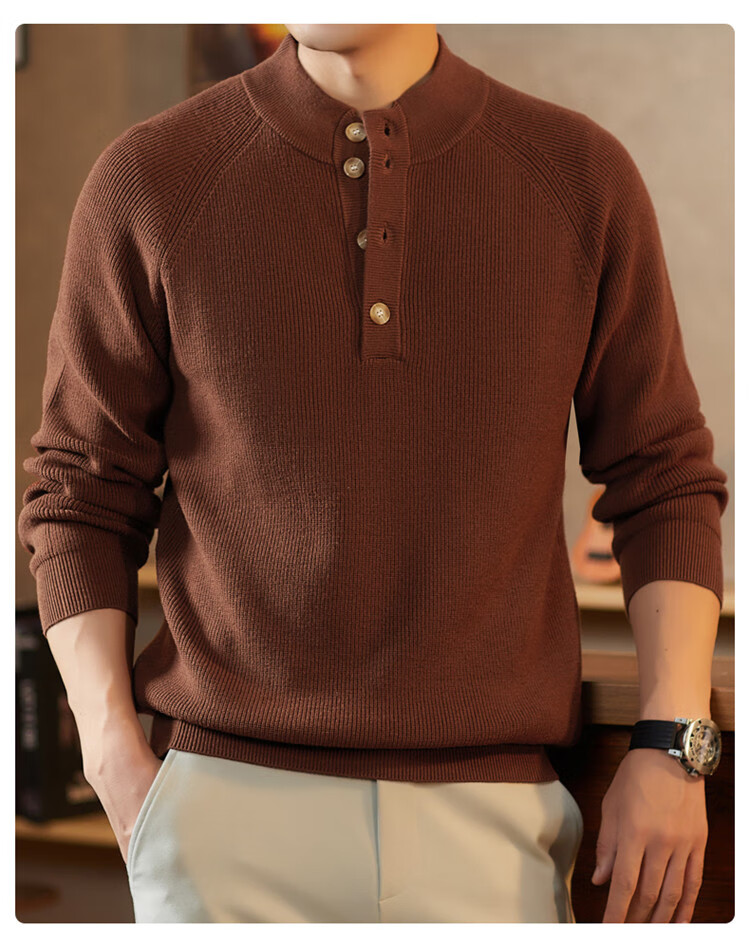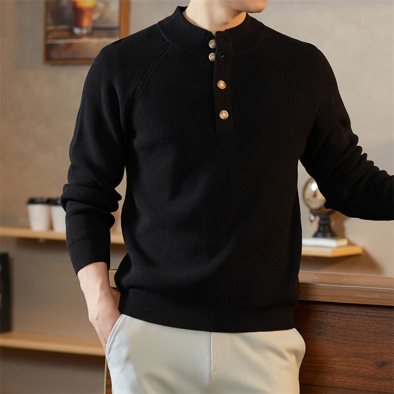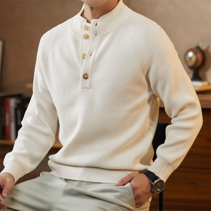 ROMON Japanese retro solid color Henry collar pullover sweater jacket for men autumn and winter new bottoming with casual sweater Gray S 165/80A