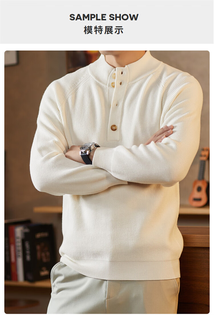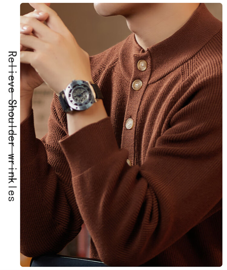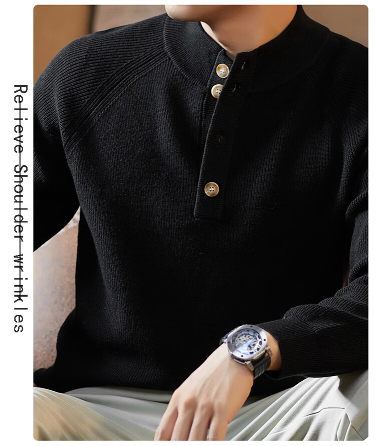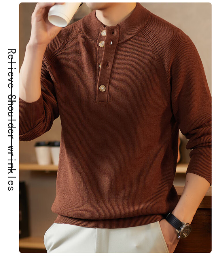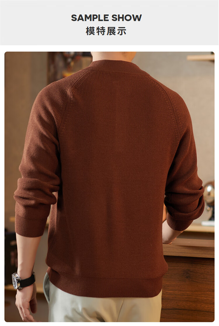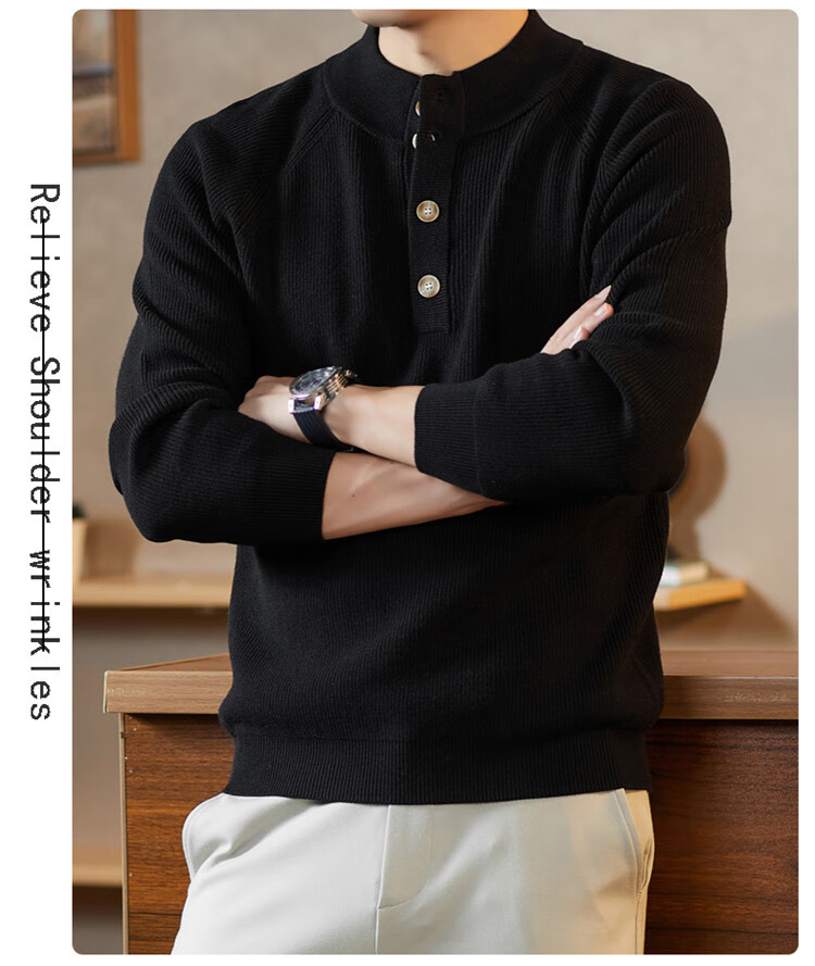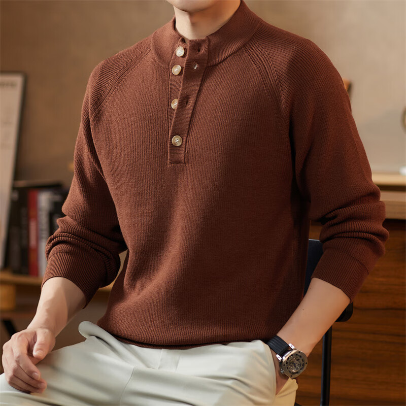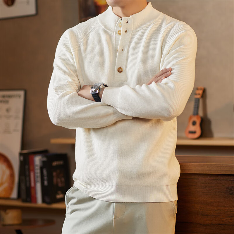 ROMON Japanese retro solid color Henry collar pullover sweater jacket for men autumn and winter new bottoming with casual sweater Gray S 165/80A