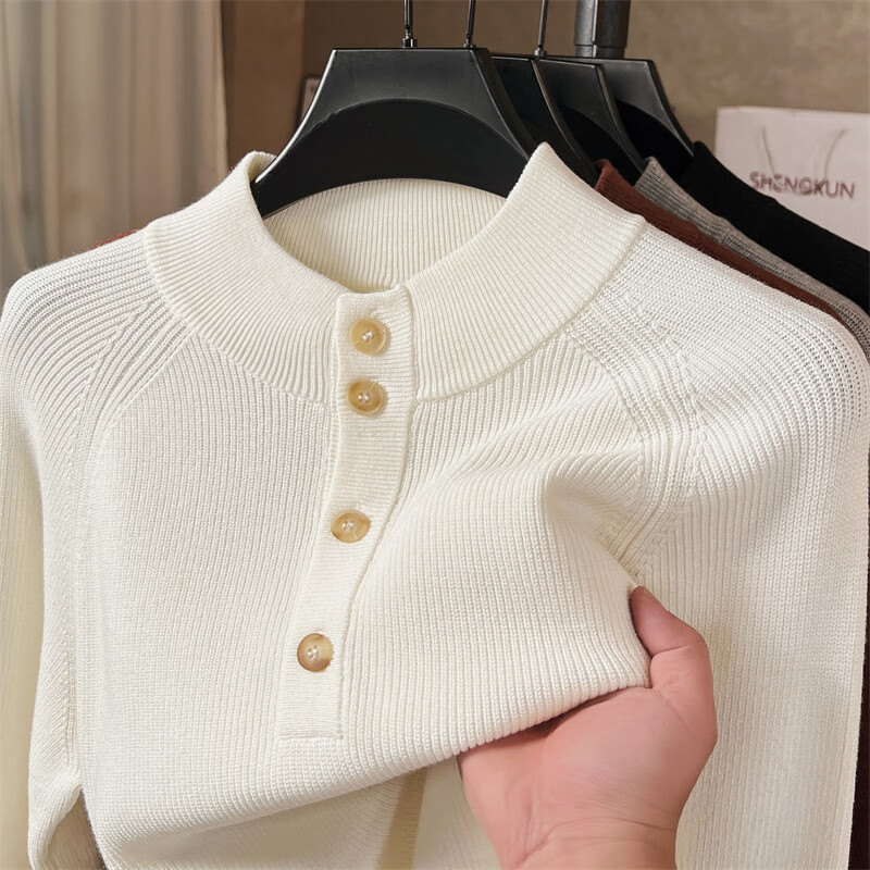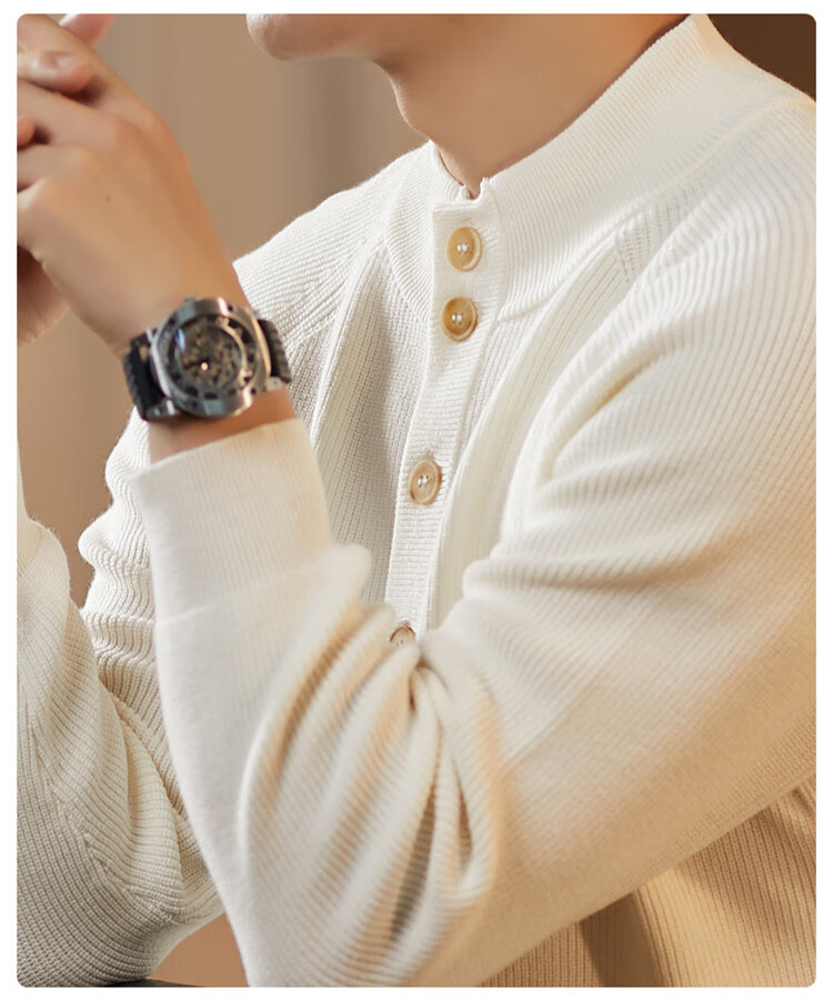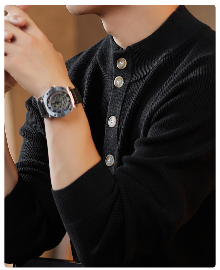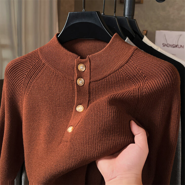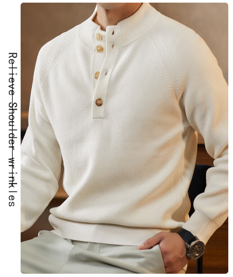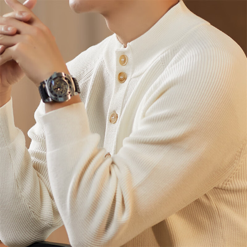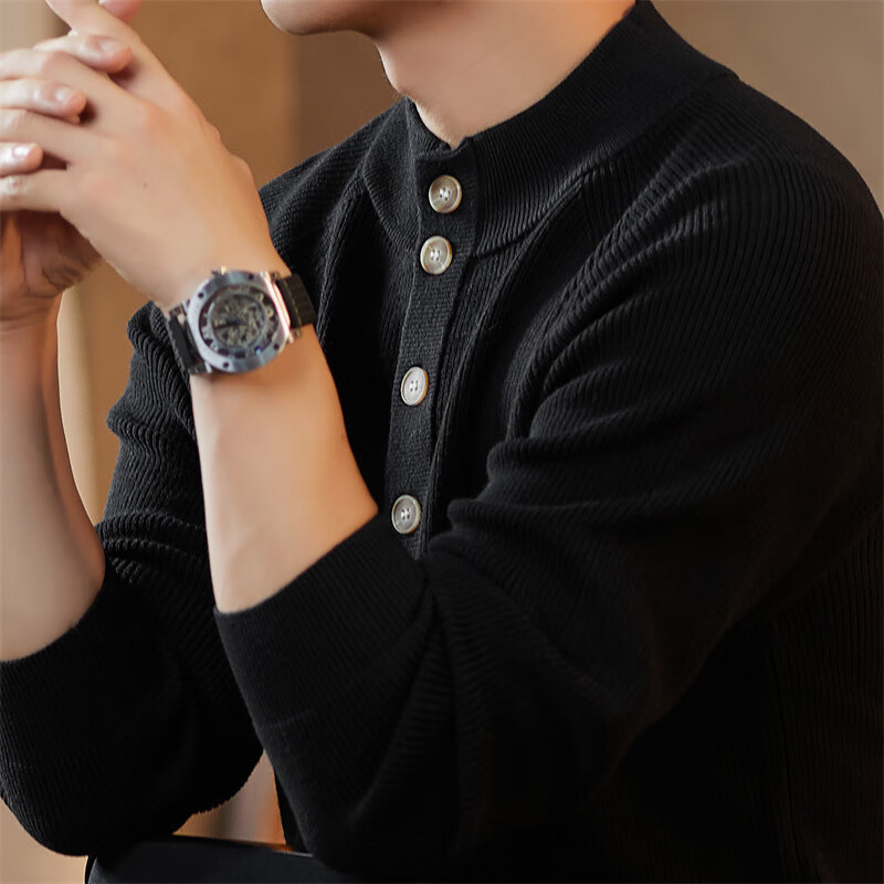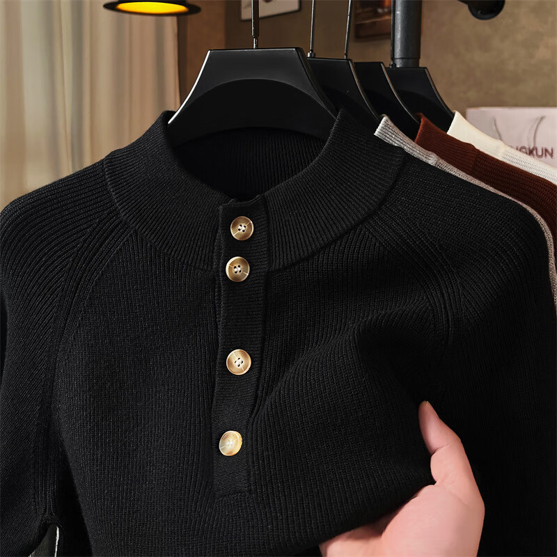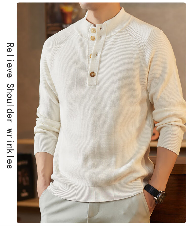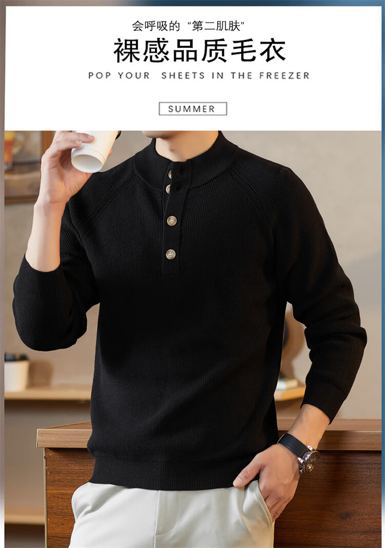 ROMON Japanese retro solid color Henry collar pullover sweater jacket for men autumn and winter new bottoming with casual sweater Gray S 165/80A