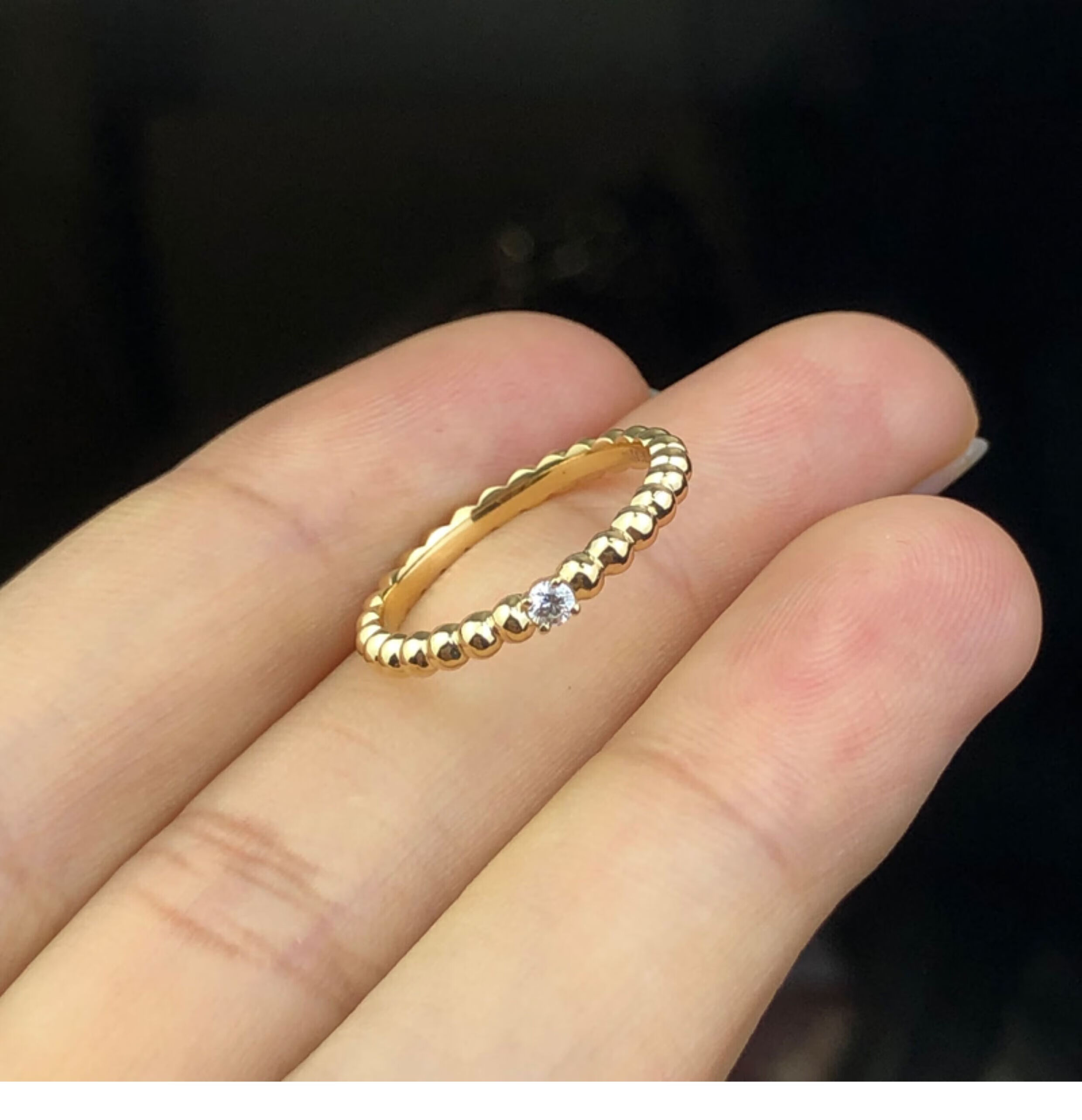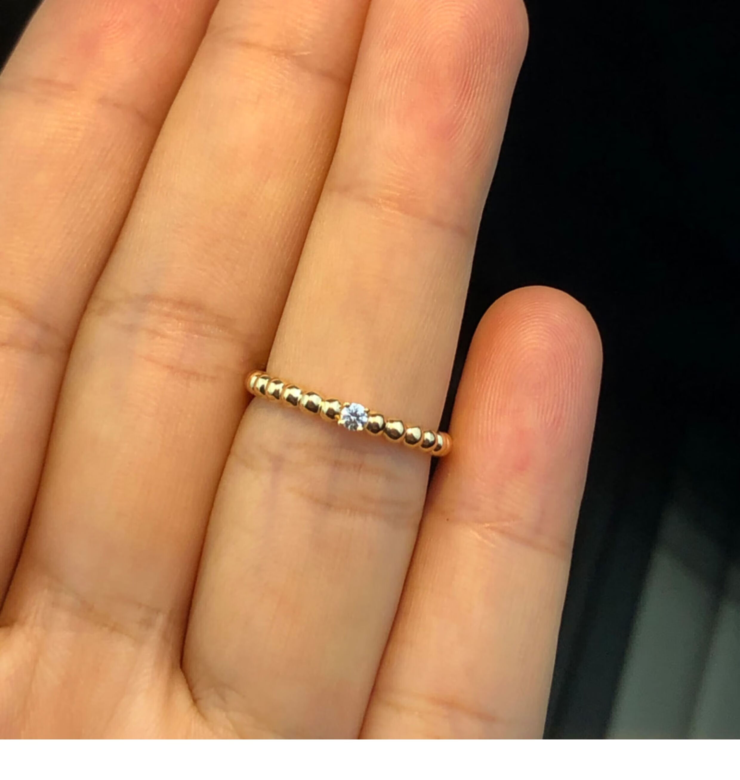 Mengdong fashionable and simple 18k gold diamond bean ring rose gold beads plain gold single diamond engagement ring color 18k gold single diamond 4 points women's size 10
