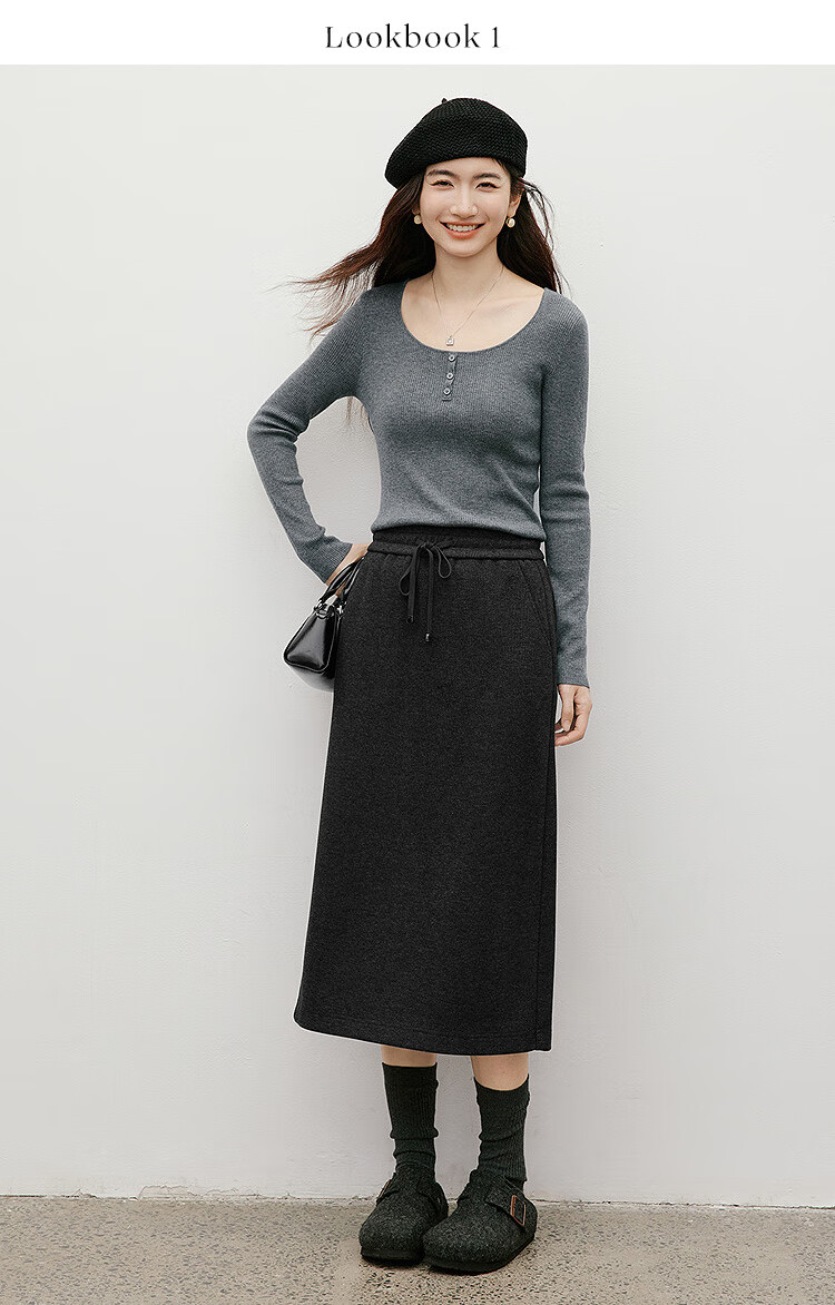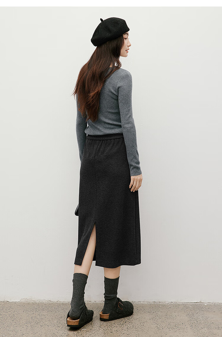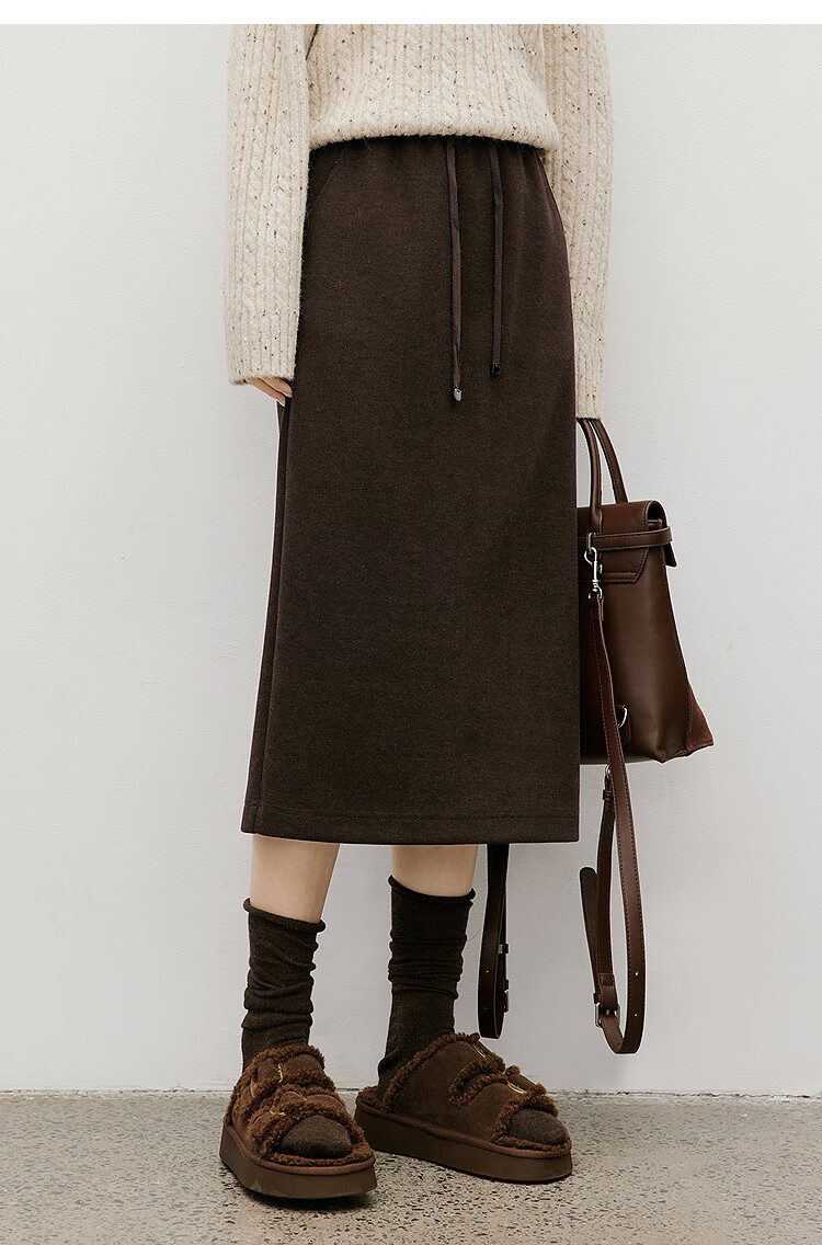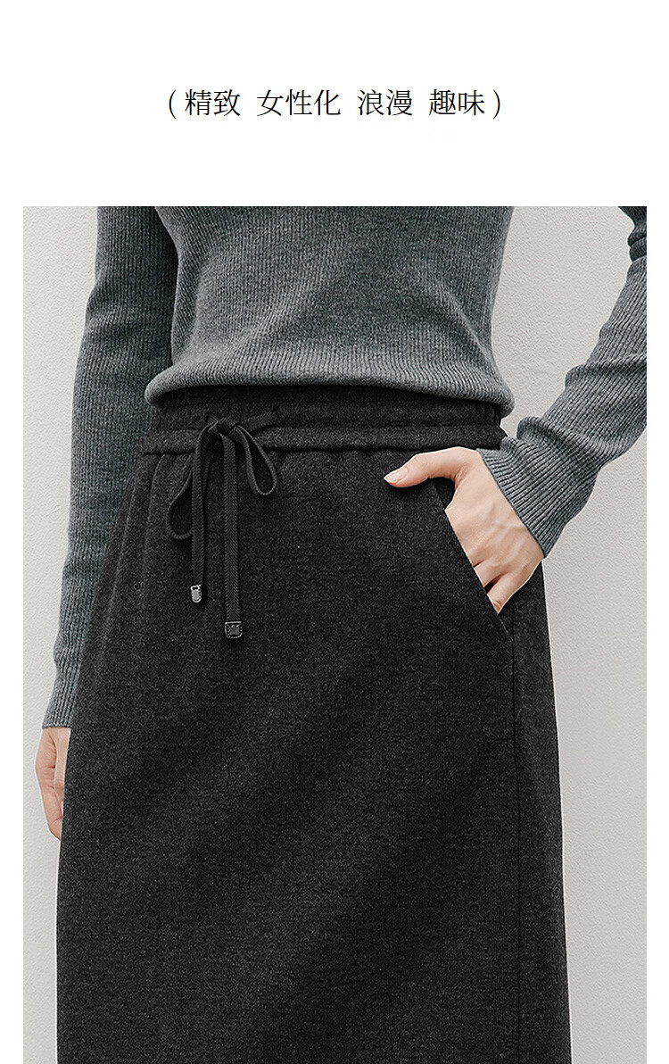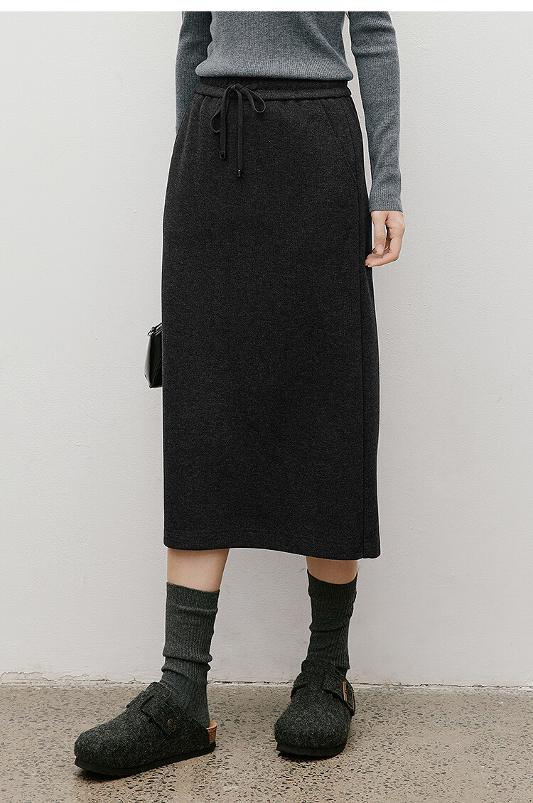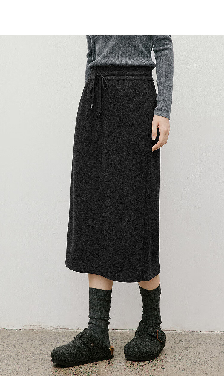 Red sleeves (hopeshow) super good-looking versatile skirt 2025 winter new women's lace-up elastic waist slimming straight temperament mid-length skirt black gray 090 M