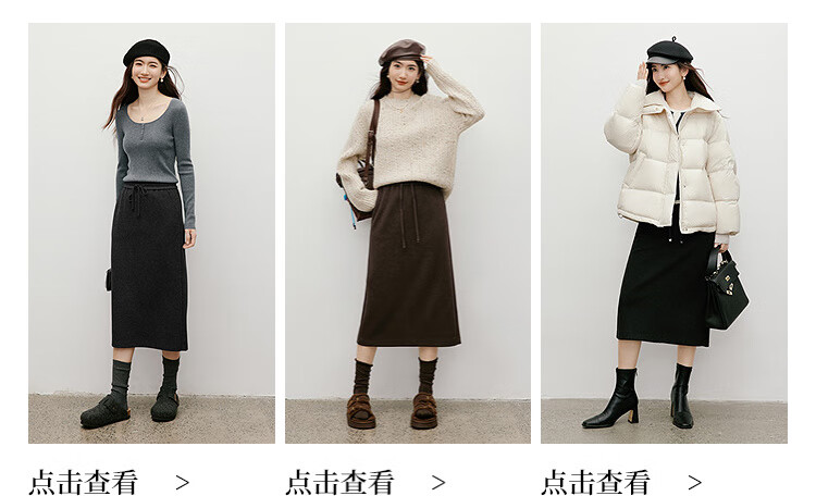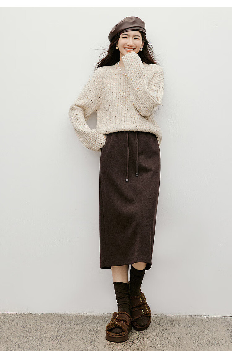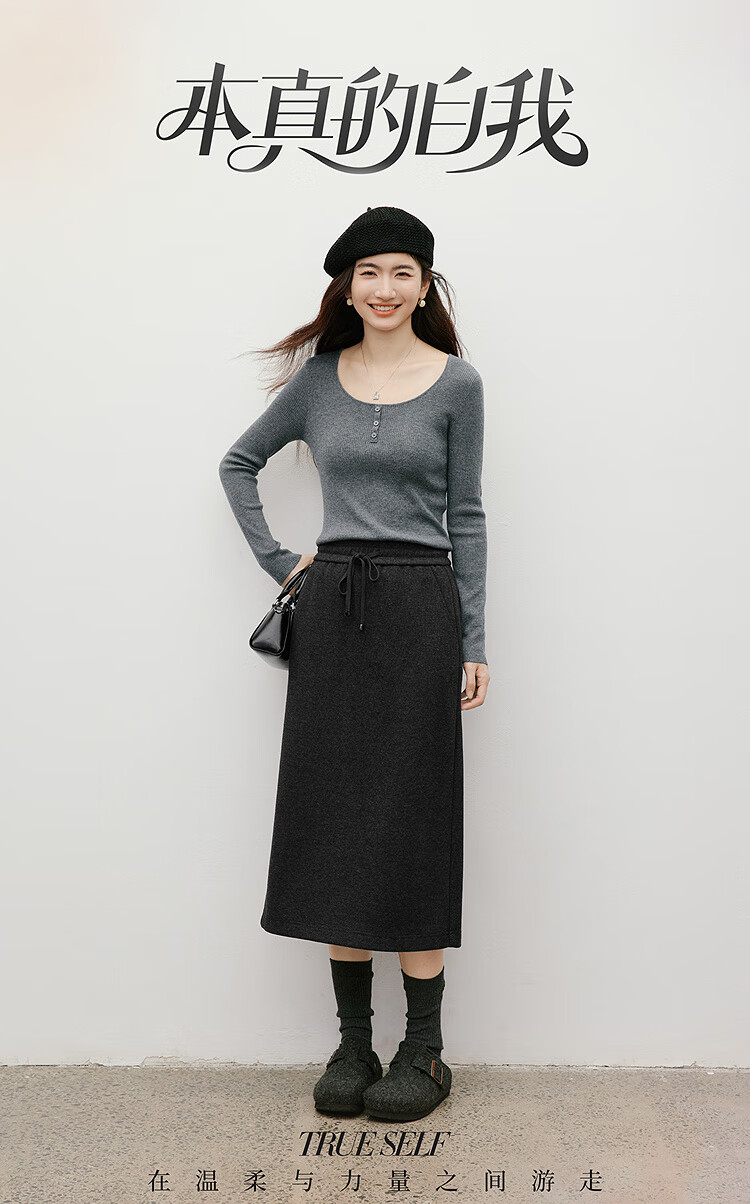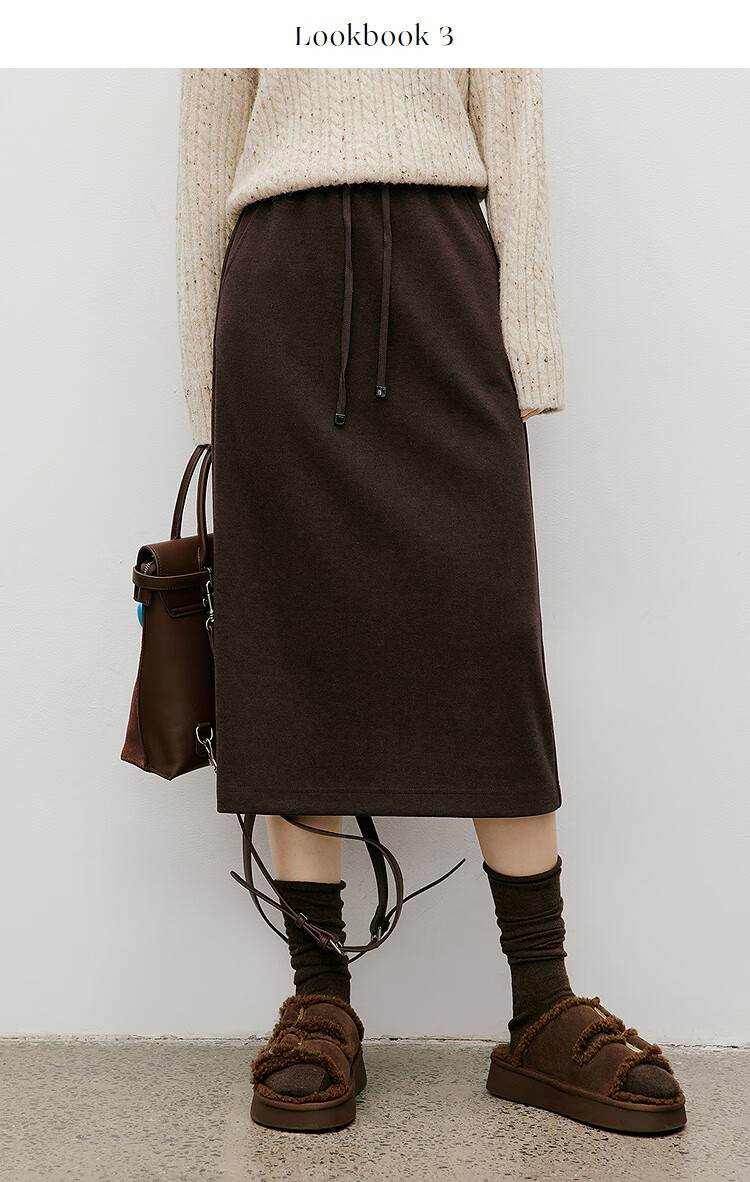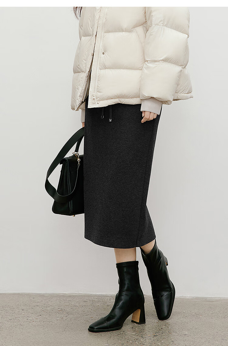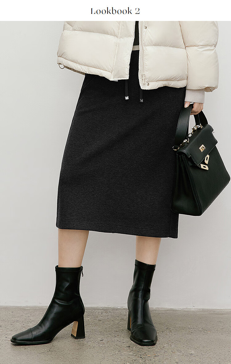 Red sleeves (hopeshow) super good-looking versatile skirt 2025 winter new women's lace-up elastic waist slimming straight temperament mid-length skirt black gray 090 M