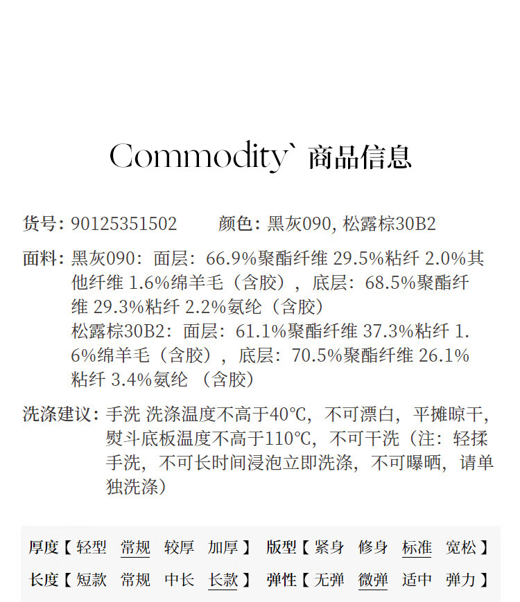 China (cm) 160-165/84-86 165-170 / 88-90 167-172 / 92-96 168-173 / 98-102 170-176 / 106-110