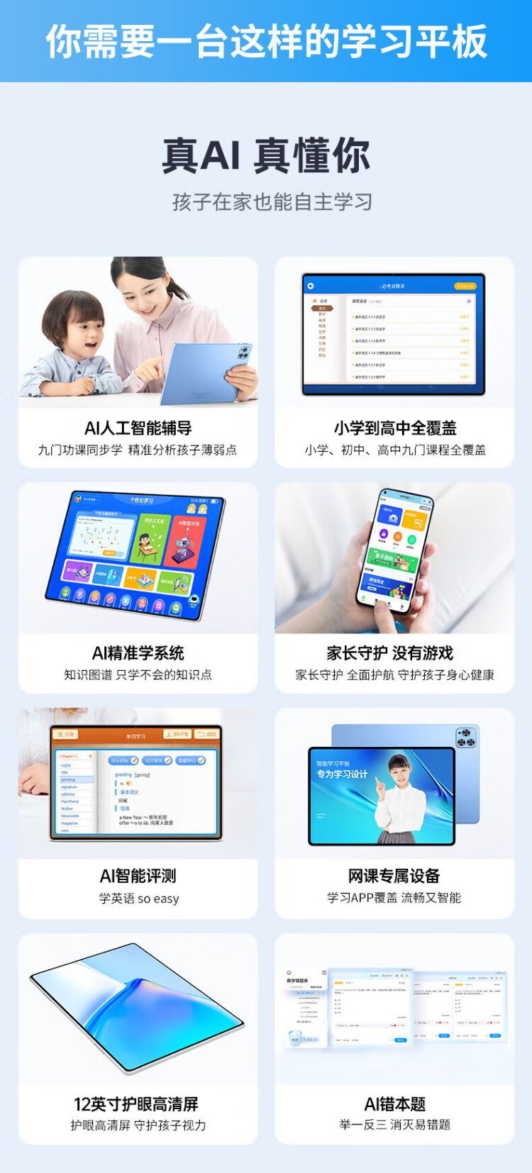 2025 new eye-protecting AI learning machine tablet computer English point-to-point reading for kindergarten, primary school, junior high school and higher course textbooks nine simultaneous finger reading dual system丨tablet + learning machine mode full set of standard configuration