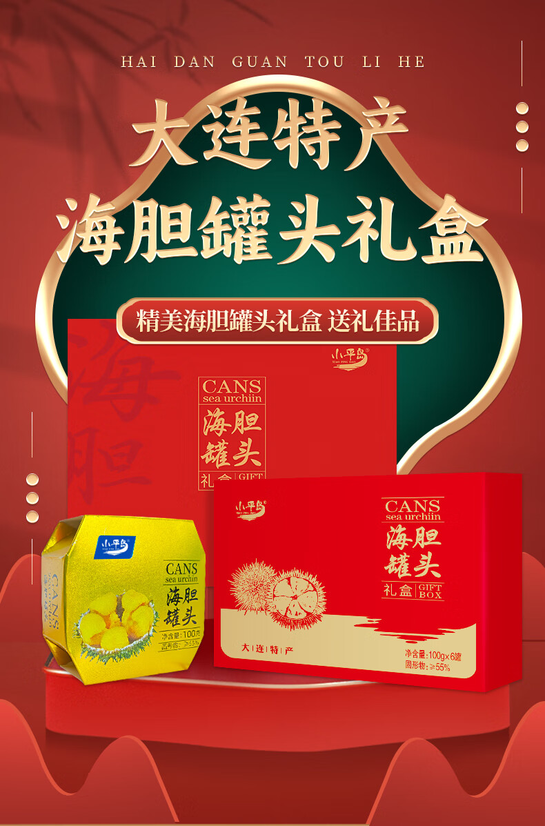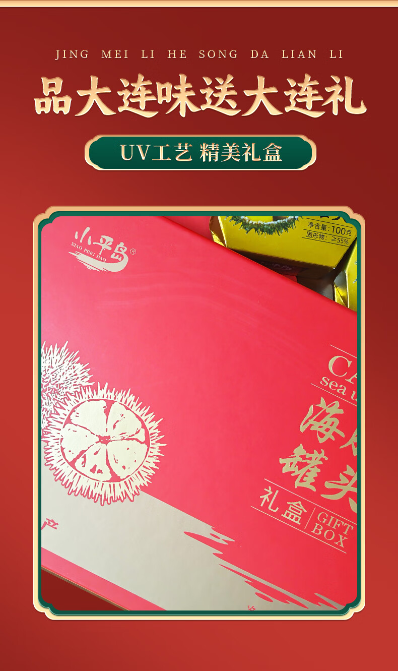 Xiaopingdao canned sea urchin 100g Dalian specialty ready-to-eat sea urchin sauce original sea urchin yellow mixed rice seafood sashimi New Year gift box gift box 100g*6 cans