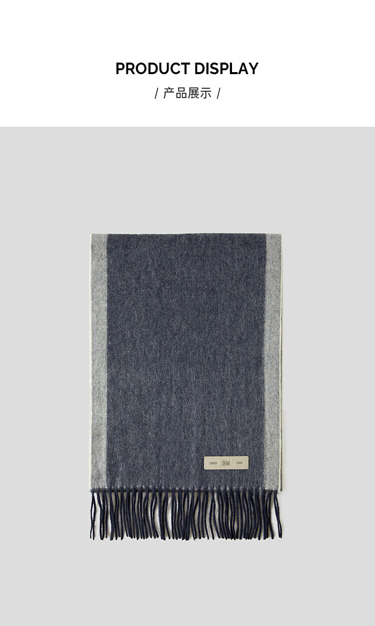 VICUTU Men's Scarf Autumn Comfortable Warm Blended Fabric Business Casual Versatile Scarf Black Gray 164cm*30cm+8cm*2cm