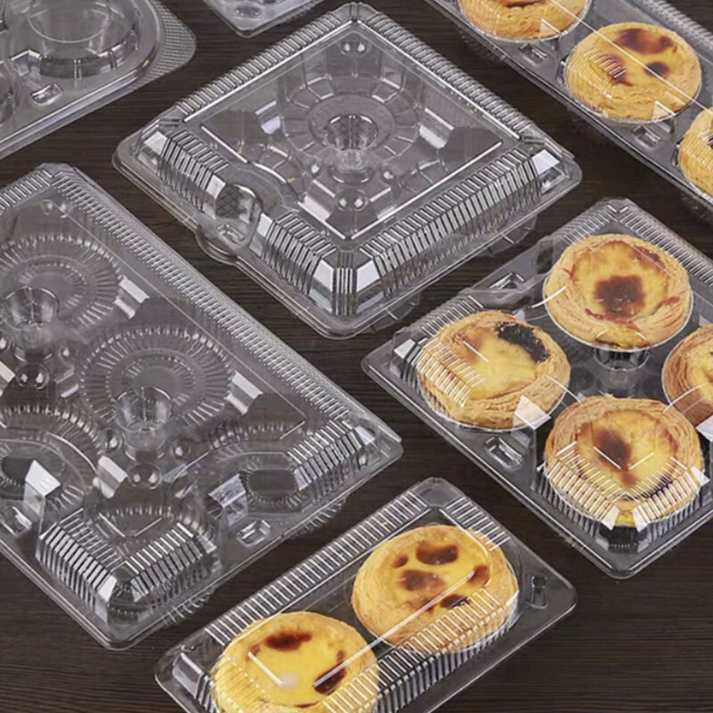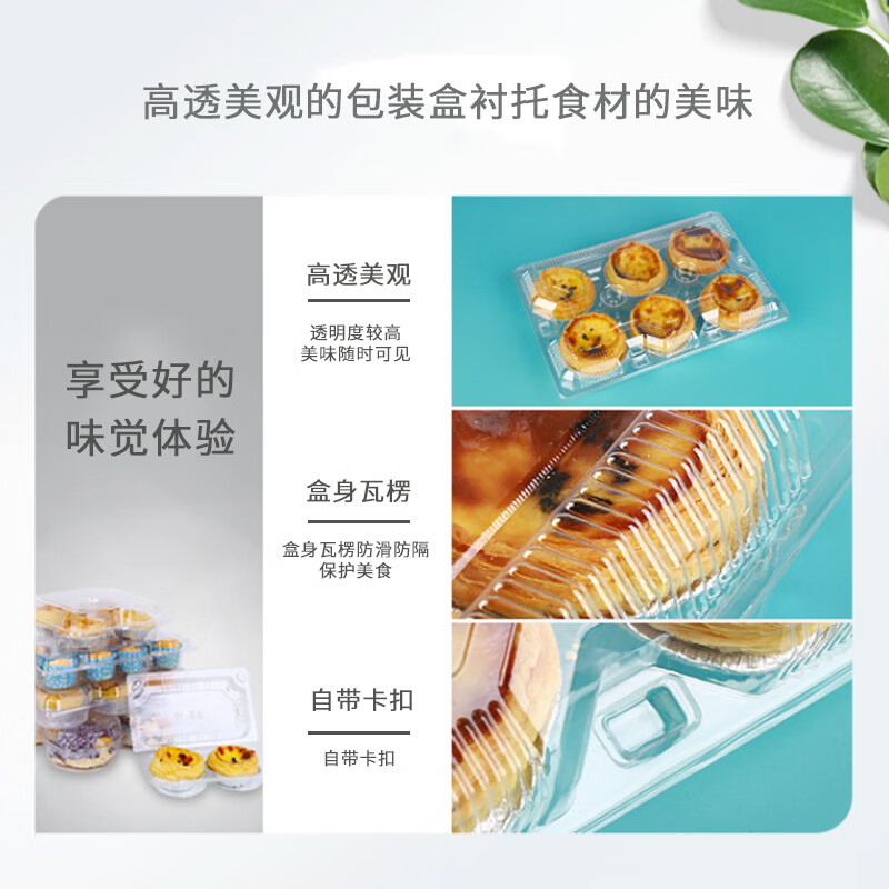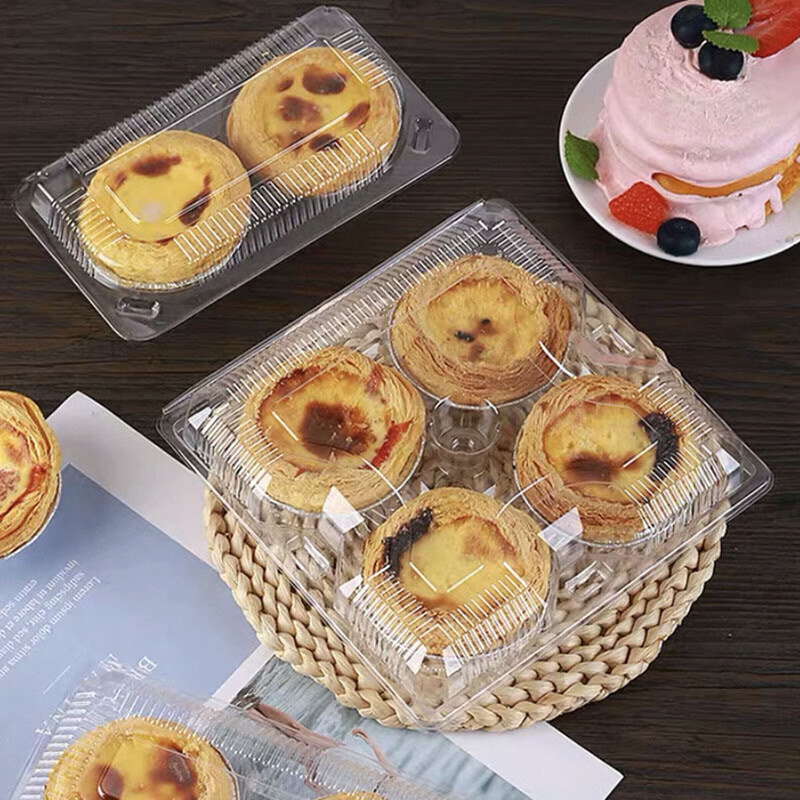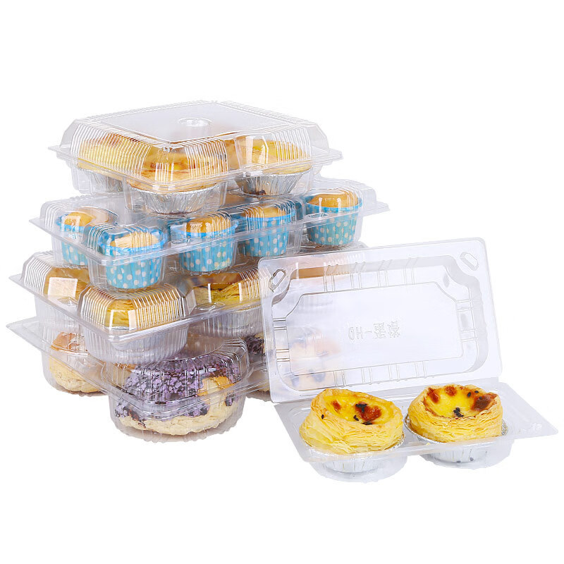 Dongzhitiandi disposable transparent plastic egg tart box cake house baked Portuguese egg tart packaging box bo zai cake green dumpling box egg tart box 2 pieces 30 sets