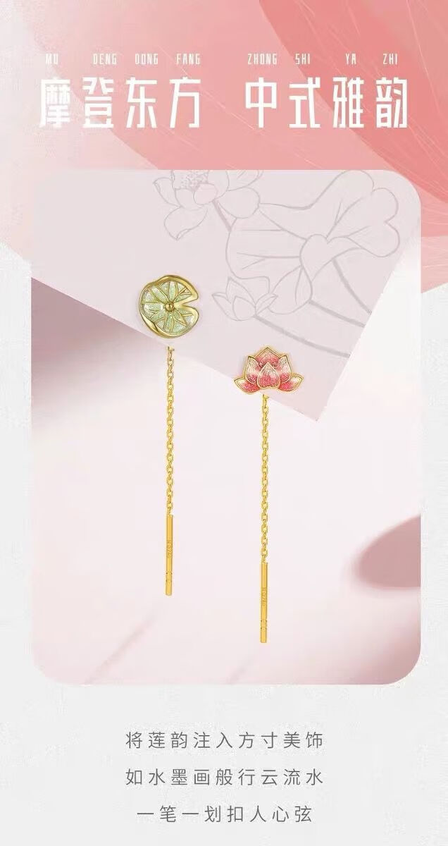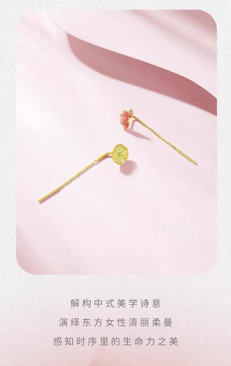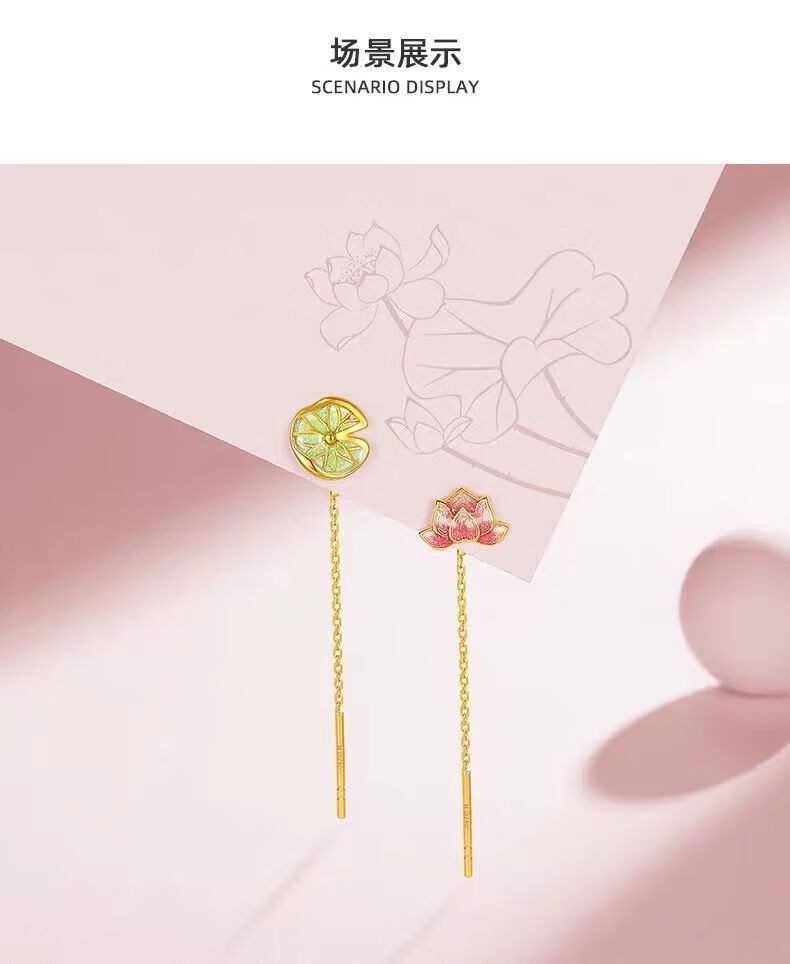 Wanke old phoenix flower rhyme yellow 18K gold ear wire color gold lotus lotus leaf lotus leaf earrings earrings gift for women