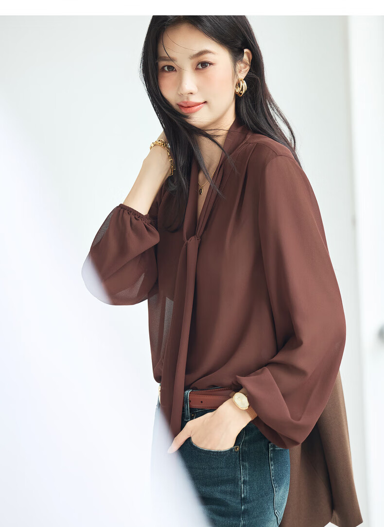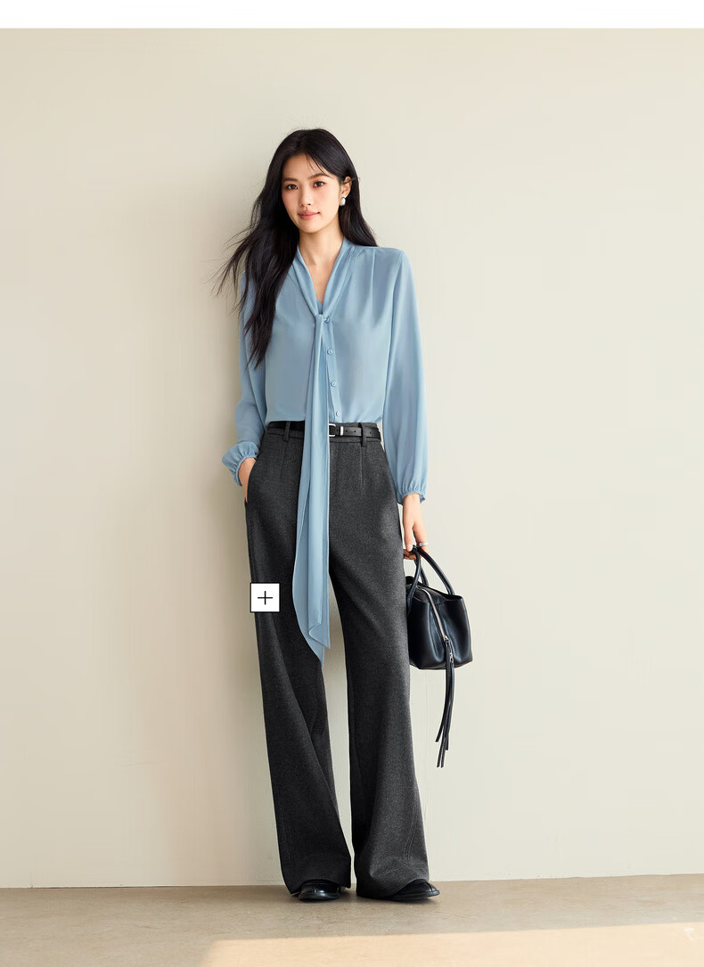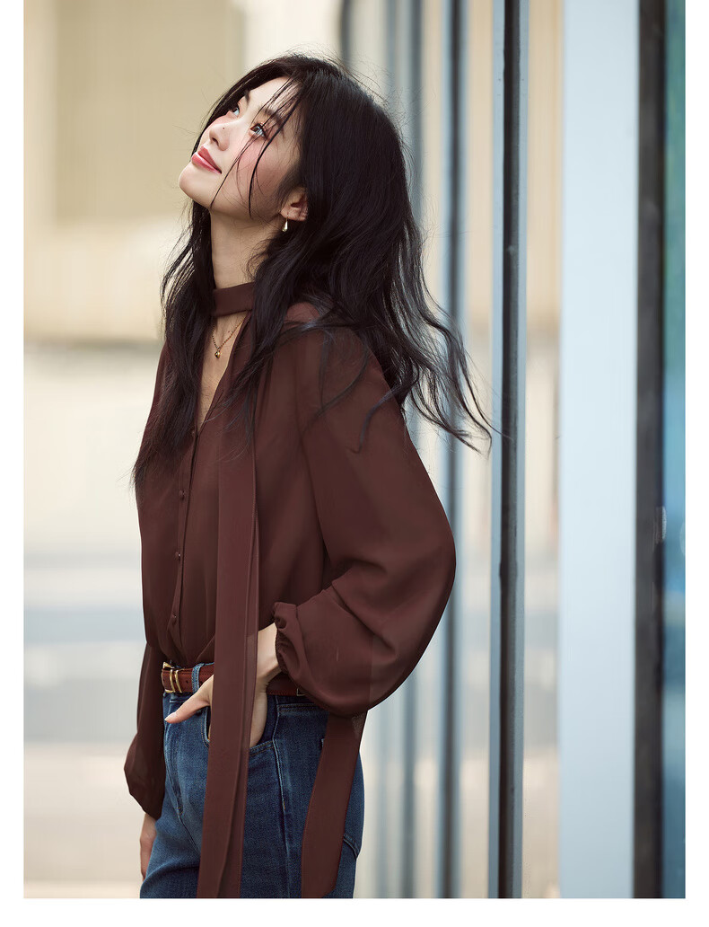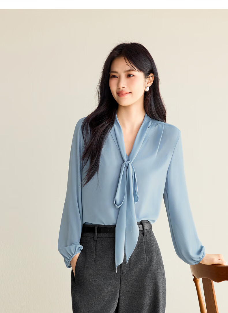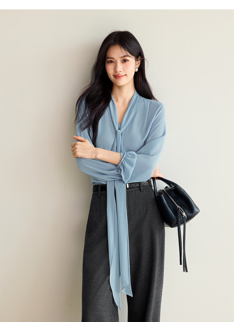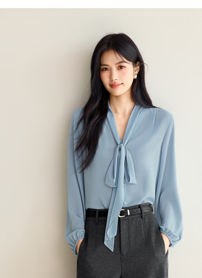Eveli (eifini) Jiang Xin's same style see-through ribbon top shirt for women 2026 spring classic style inner casual top for women blue S