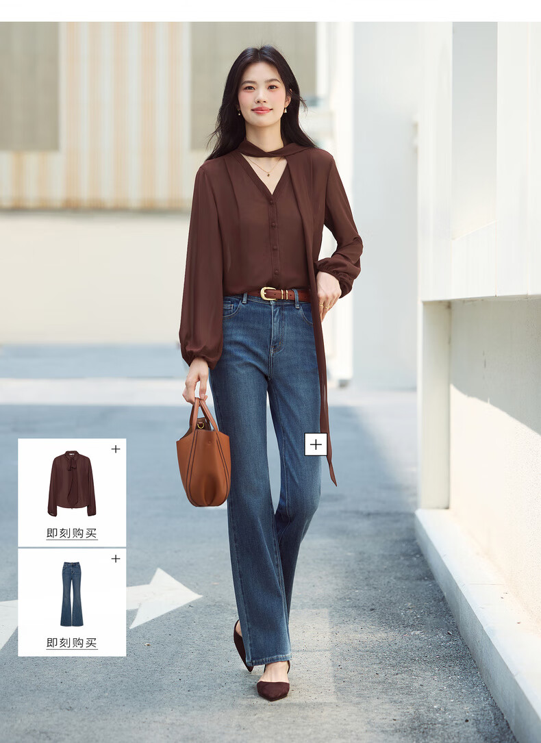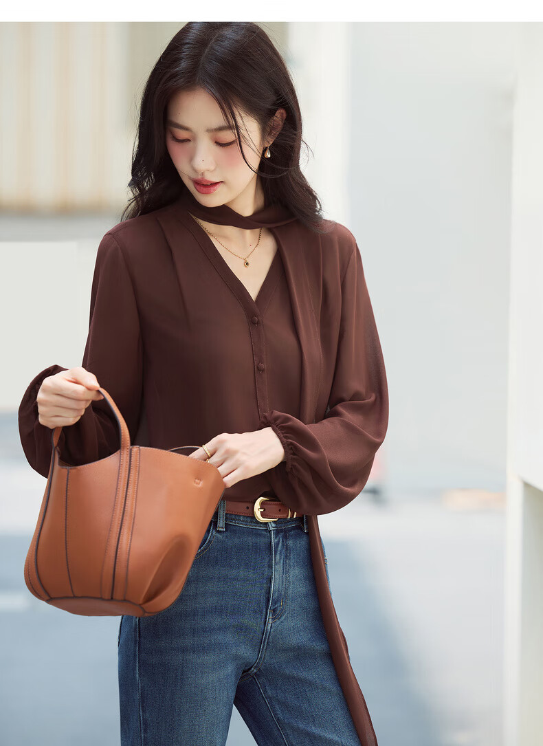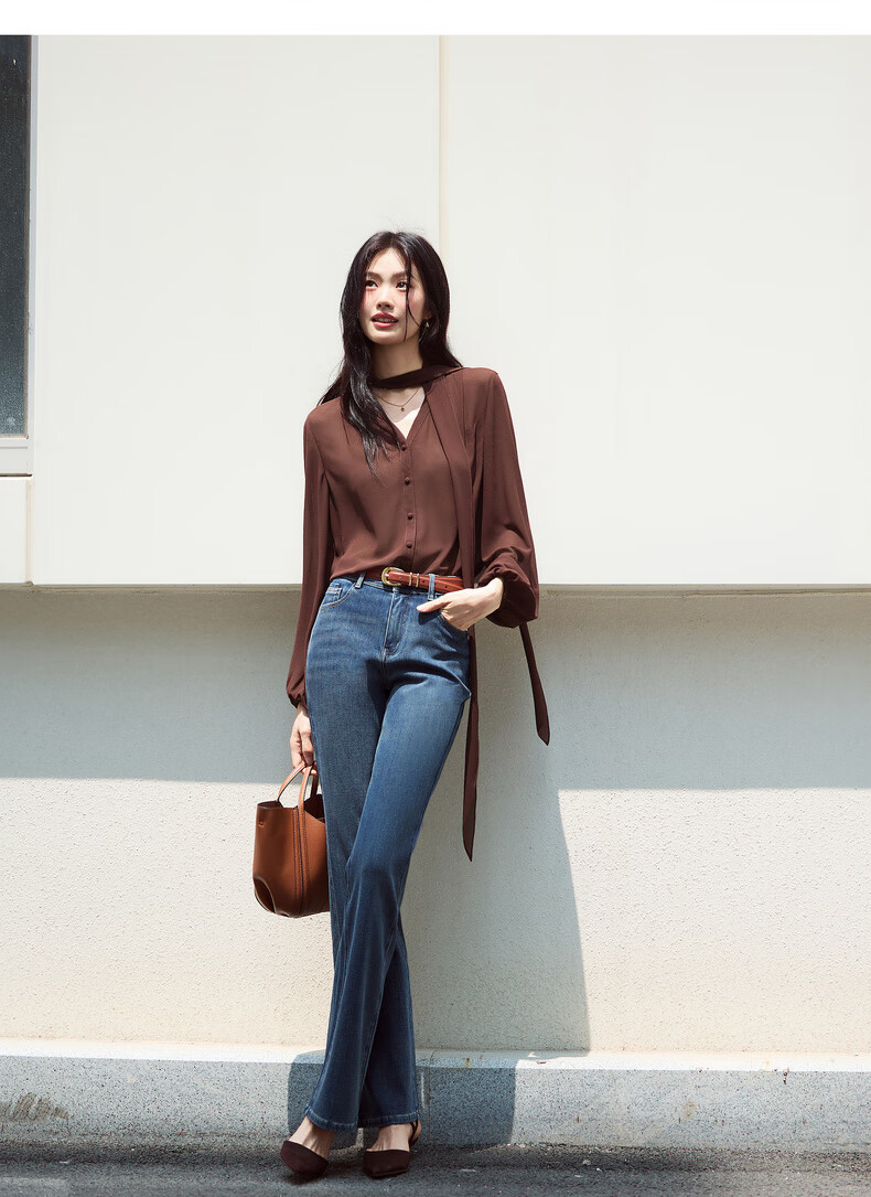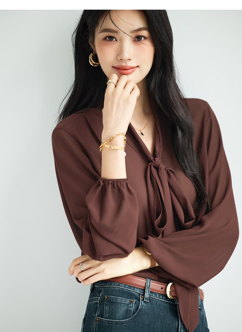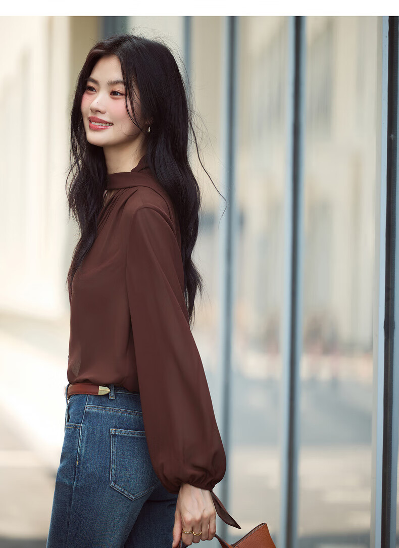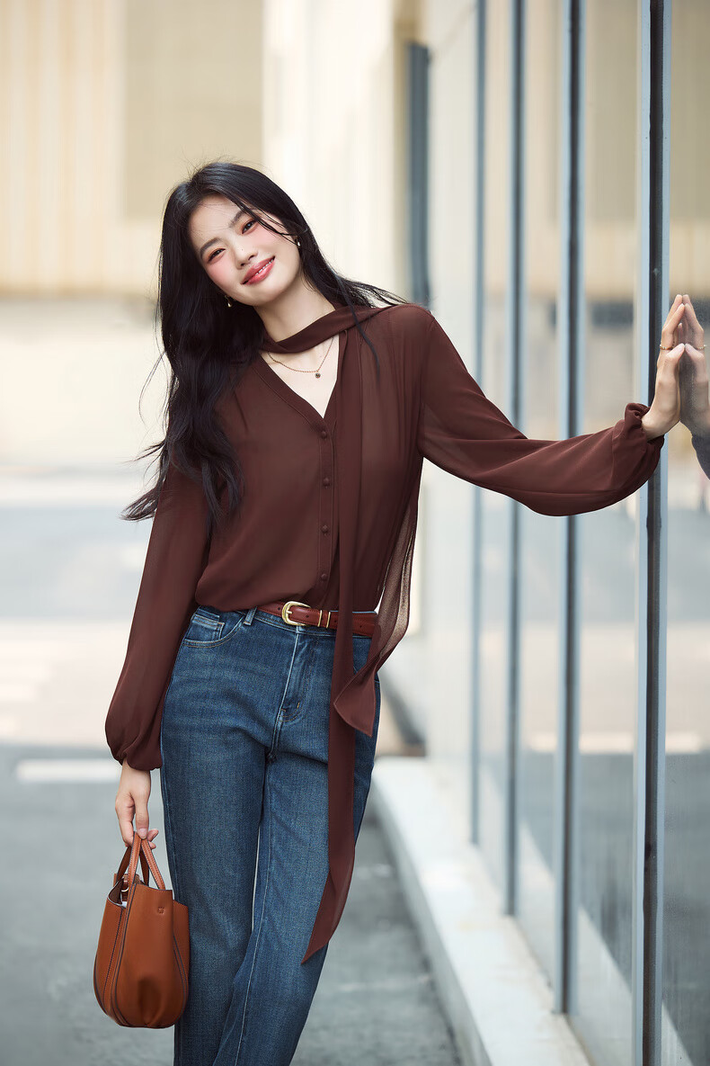 Eveli (eifini) Jiang Xin's same style see-through ribbon top shirt for women 2026 spring classic style inner casual top for women blue S