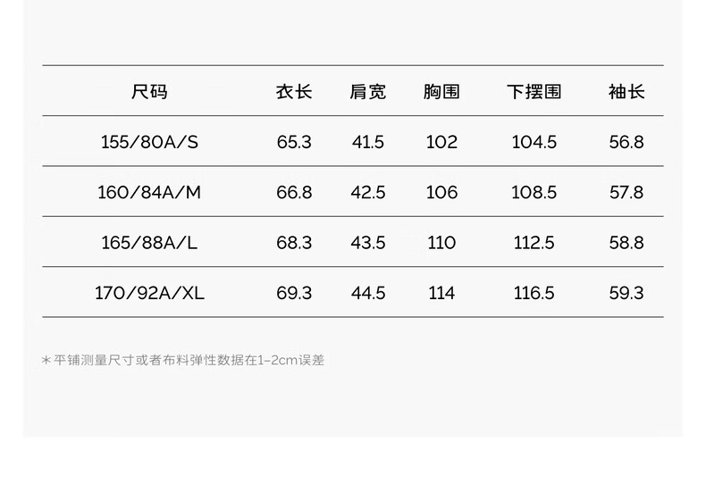 China (cm) 160-165/84-86 165-170 / 88-90 167-172 / 92-96 168-173 / 98-102 170-176 / 106-110