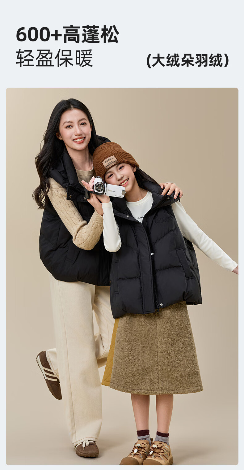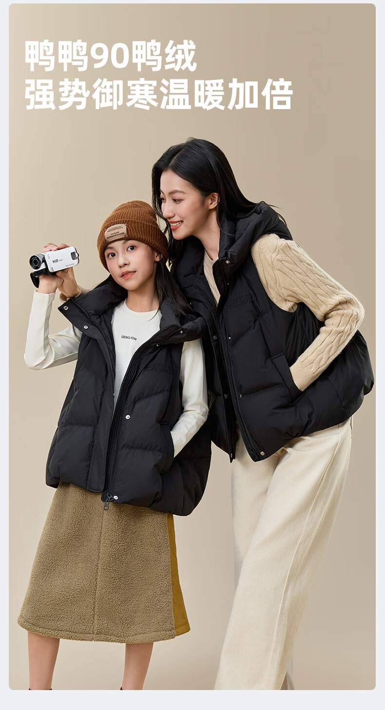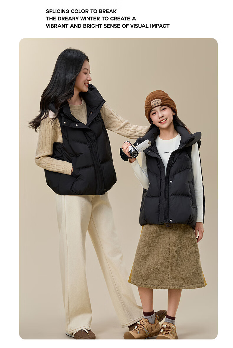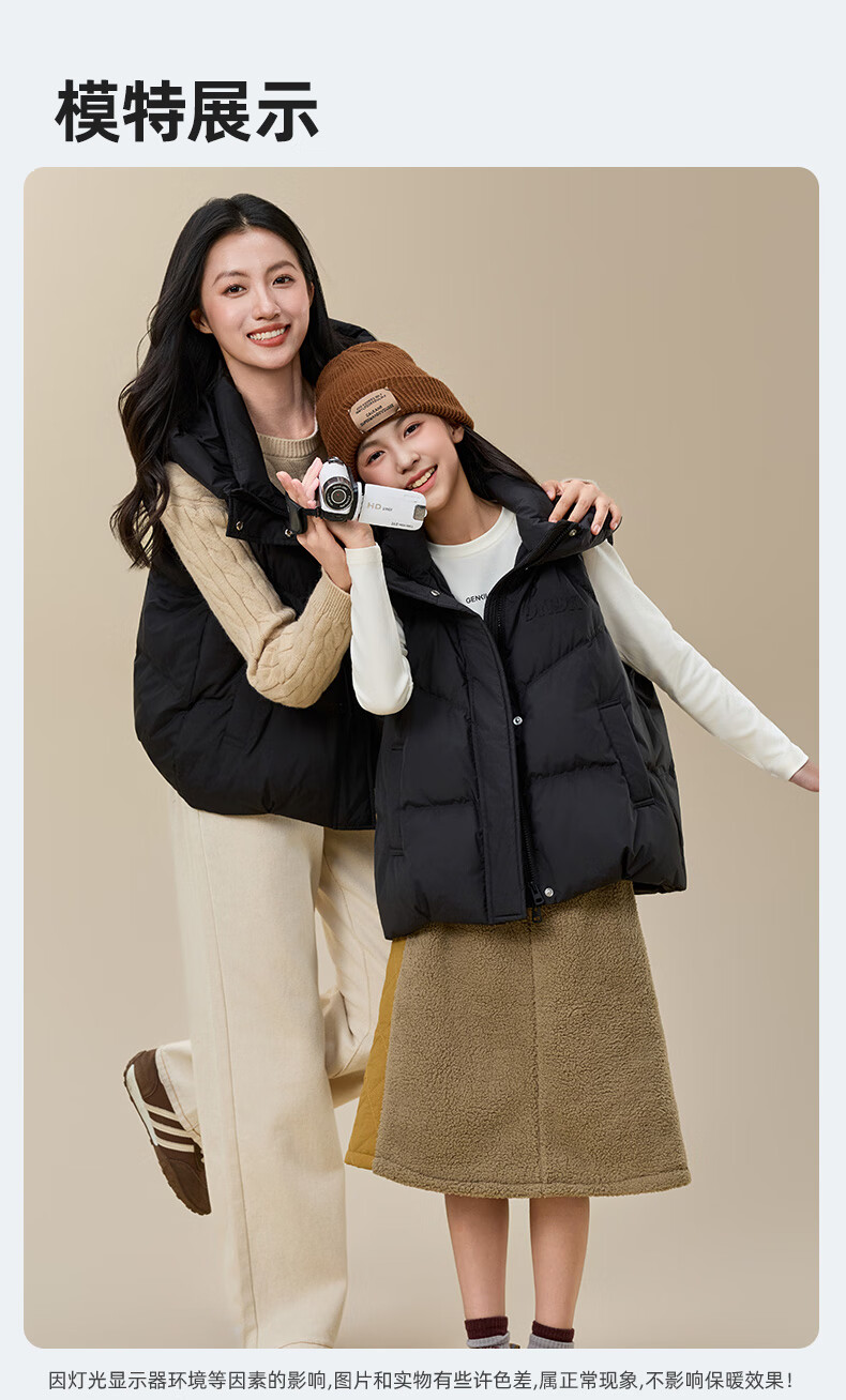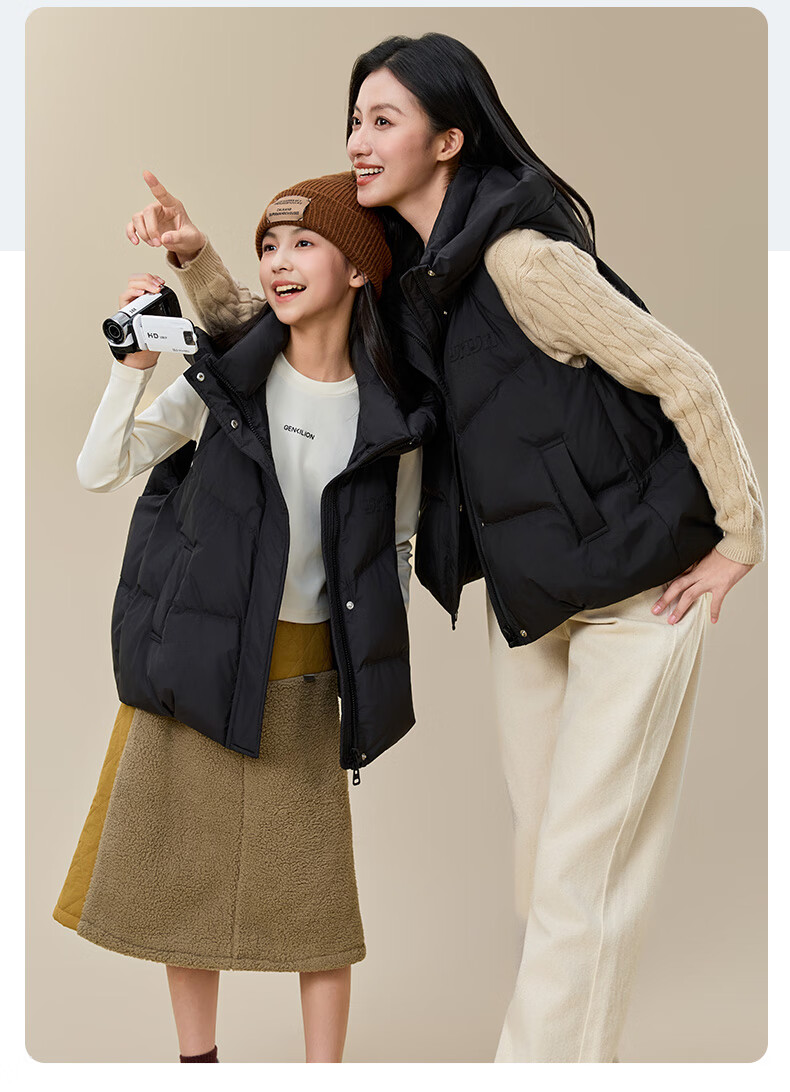 Yaya (YAYA) Down Vest Women's Outer Wear 2025 New Parent-child Clothing Fashion Korean Style Loose Trendy Casual Warm Waistcoat HF Black M (170) Adult Clothing