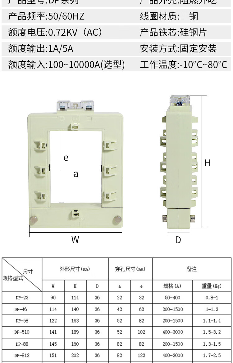 Open current transformer DP812 2000 copper bar square large current 0.5 DP23 400/5
