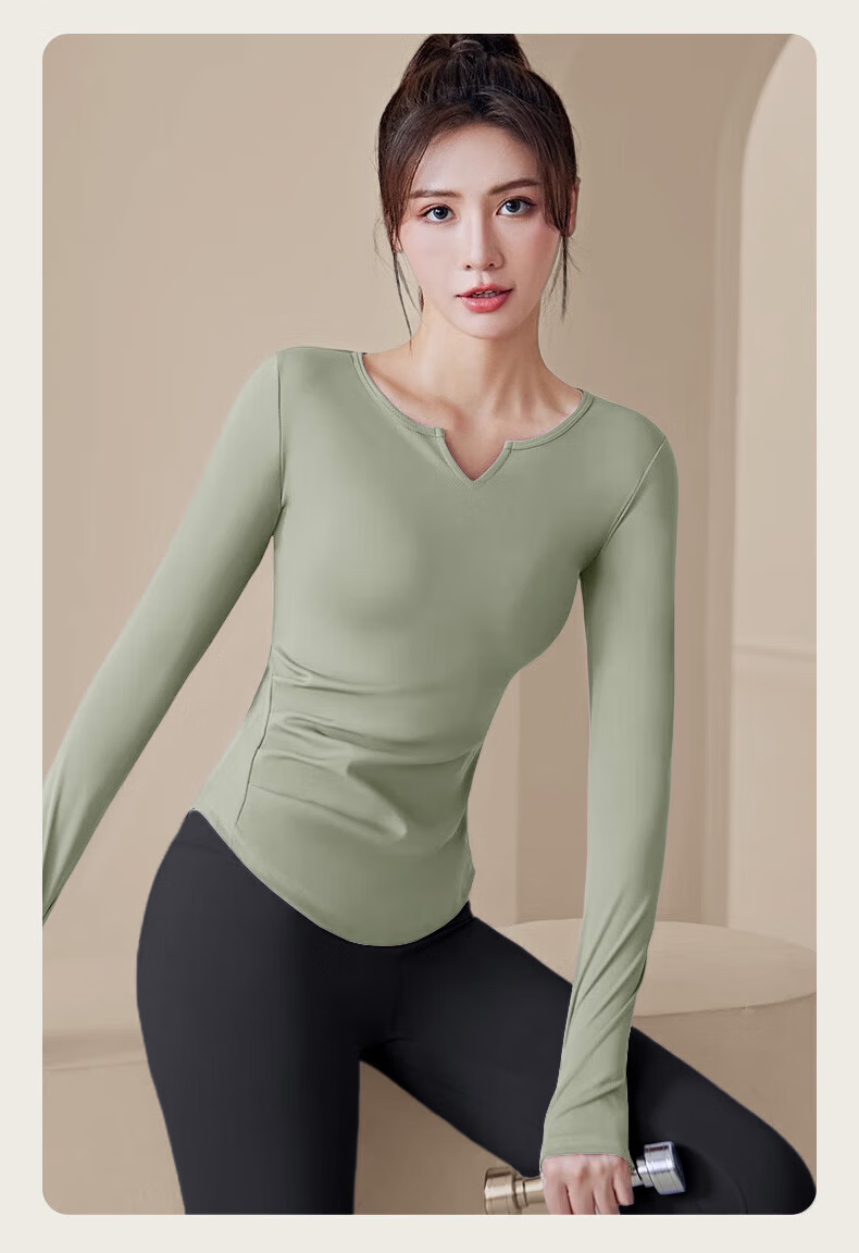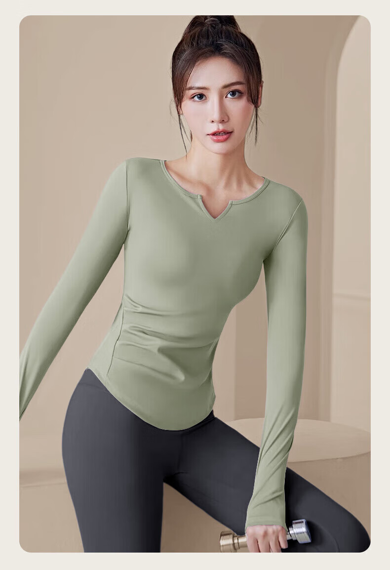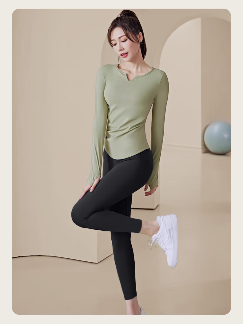 Lugeli Yoga Suit Running Sports Suit Spring and Summer Cycling Suit Women's Pilates Training Fitness Suit Yoga Pants V-neck Yoga Suit Green + Black XL Recommended 120-135 Jin Jin equals 0.5 kg