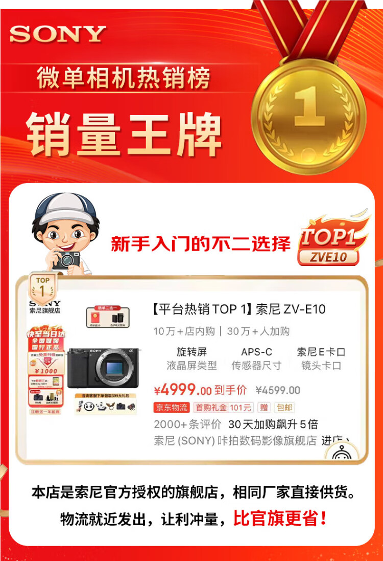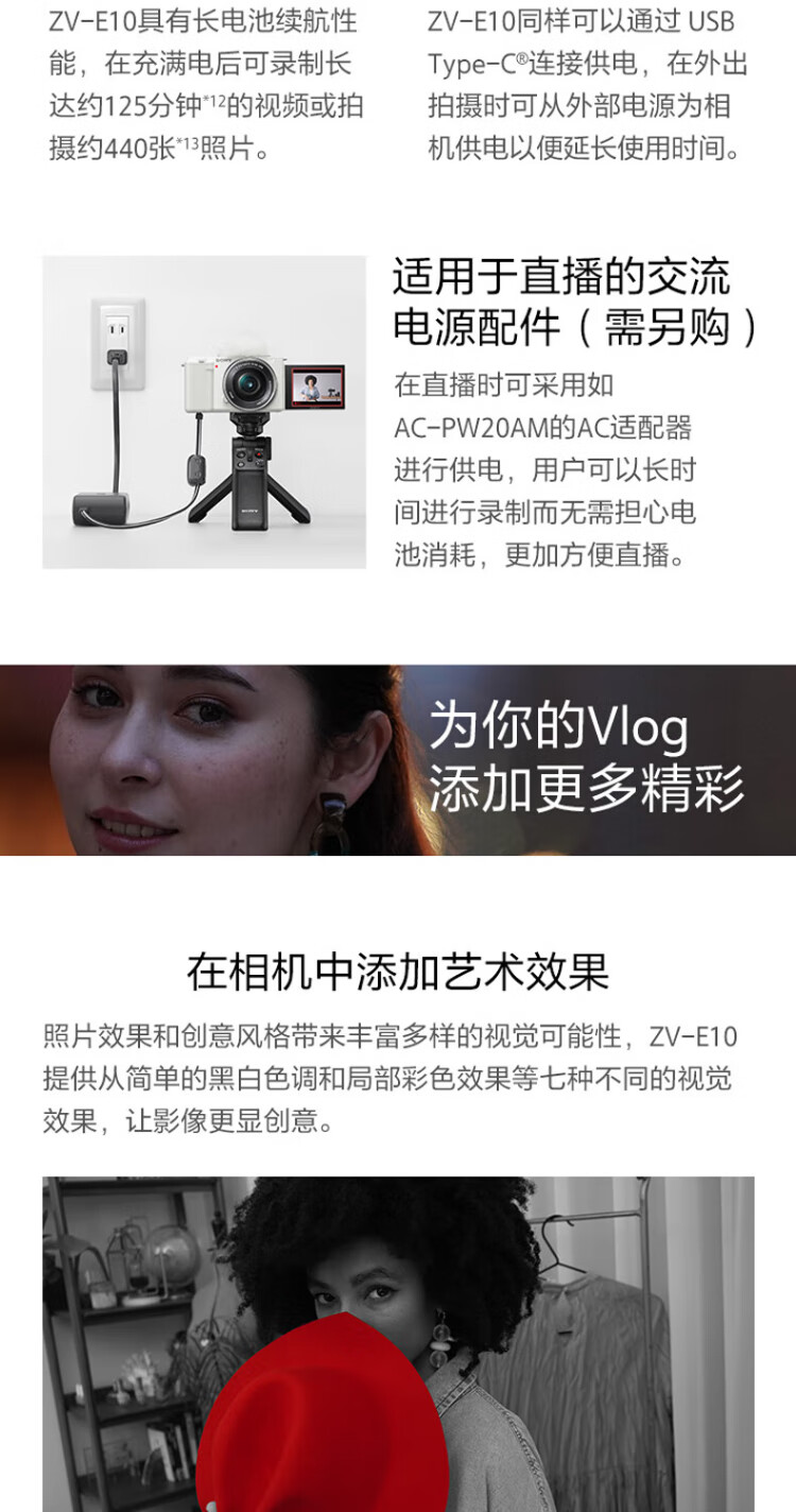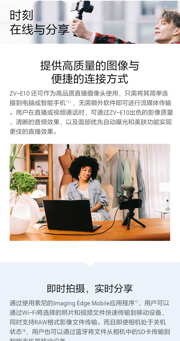 Sony (SONY) ZV-E10K mirrorless digital shooting ZV-E10 camera live broadcast beauty Vlog photography artifact APS-C half-frame video zve10 flip-up LCD screen ZV-E10K black kit upgrade model official standard configuration no necessary accessories/recommended purchase package