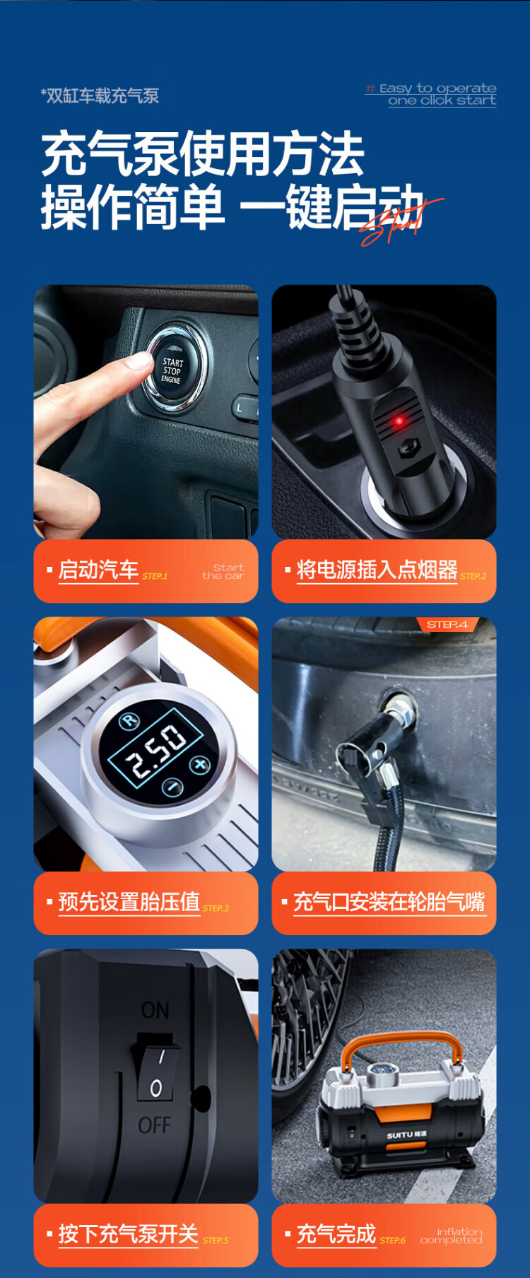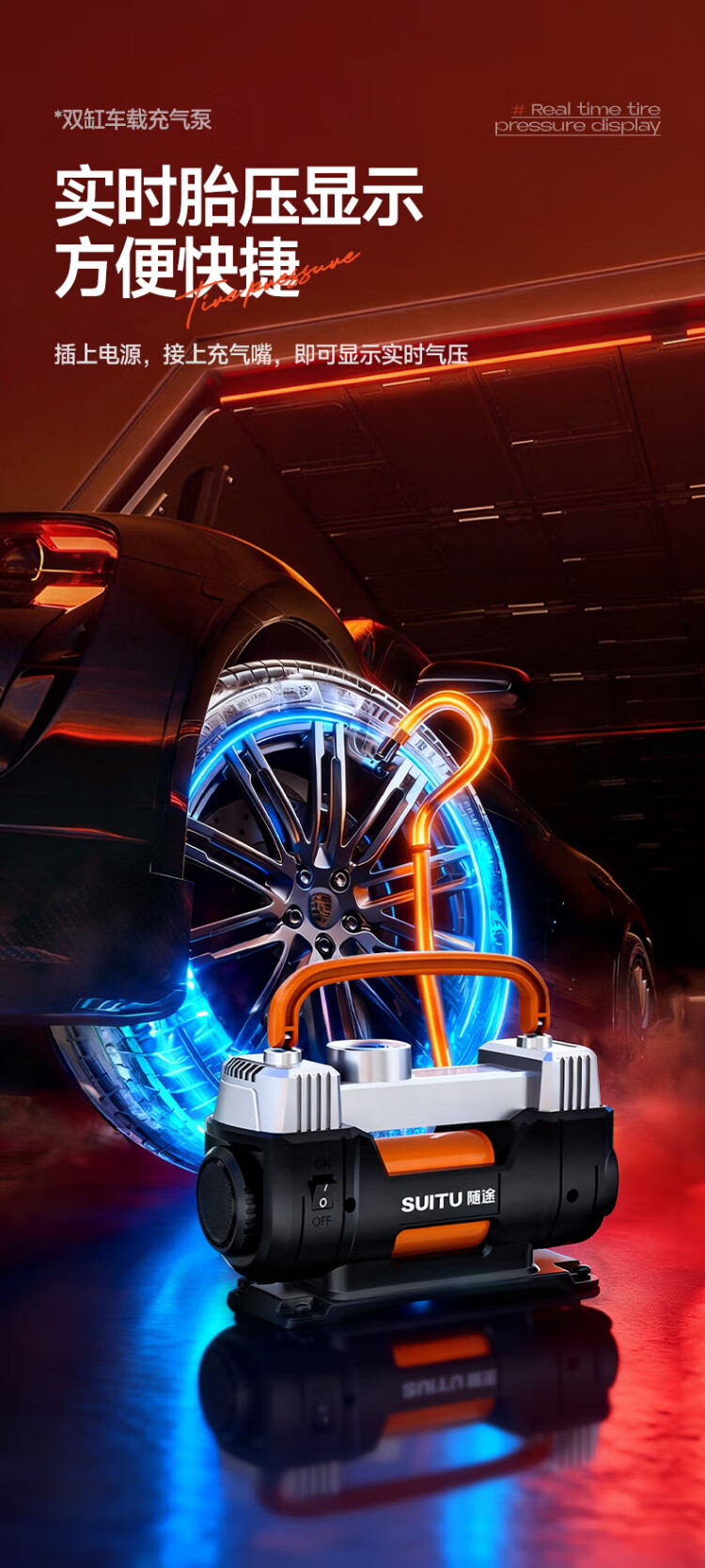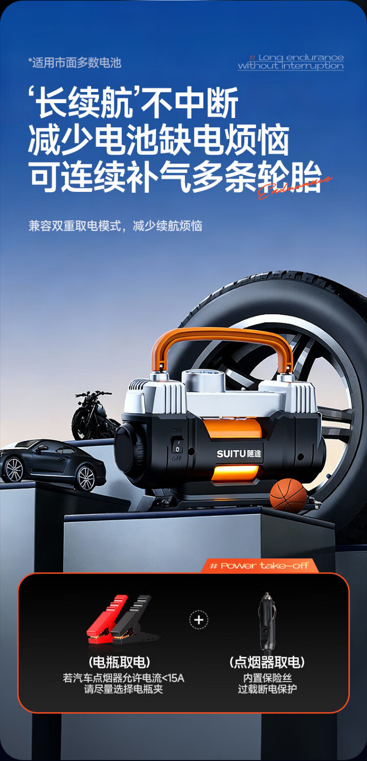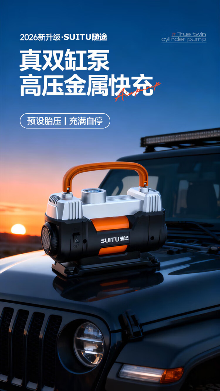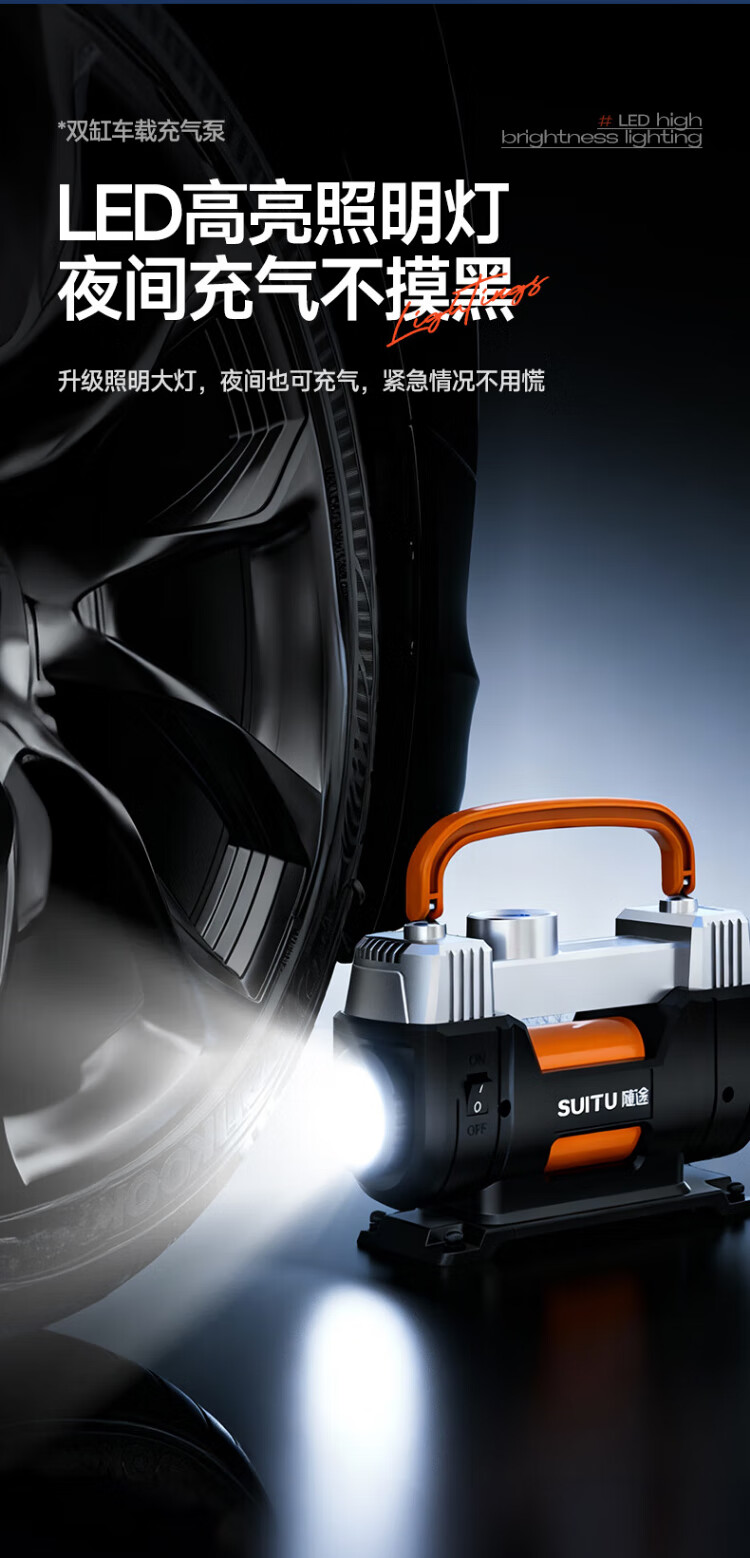Suitu car air pump double-cylinder car tire air pump electric inflator to measure tire pressure high-power off-road sedan metal true double-cylinder off-road high-power digital display fast charge + storage bag