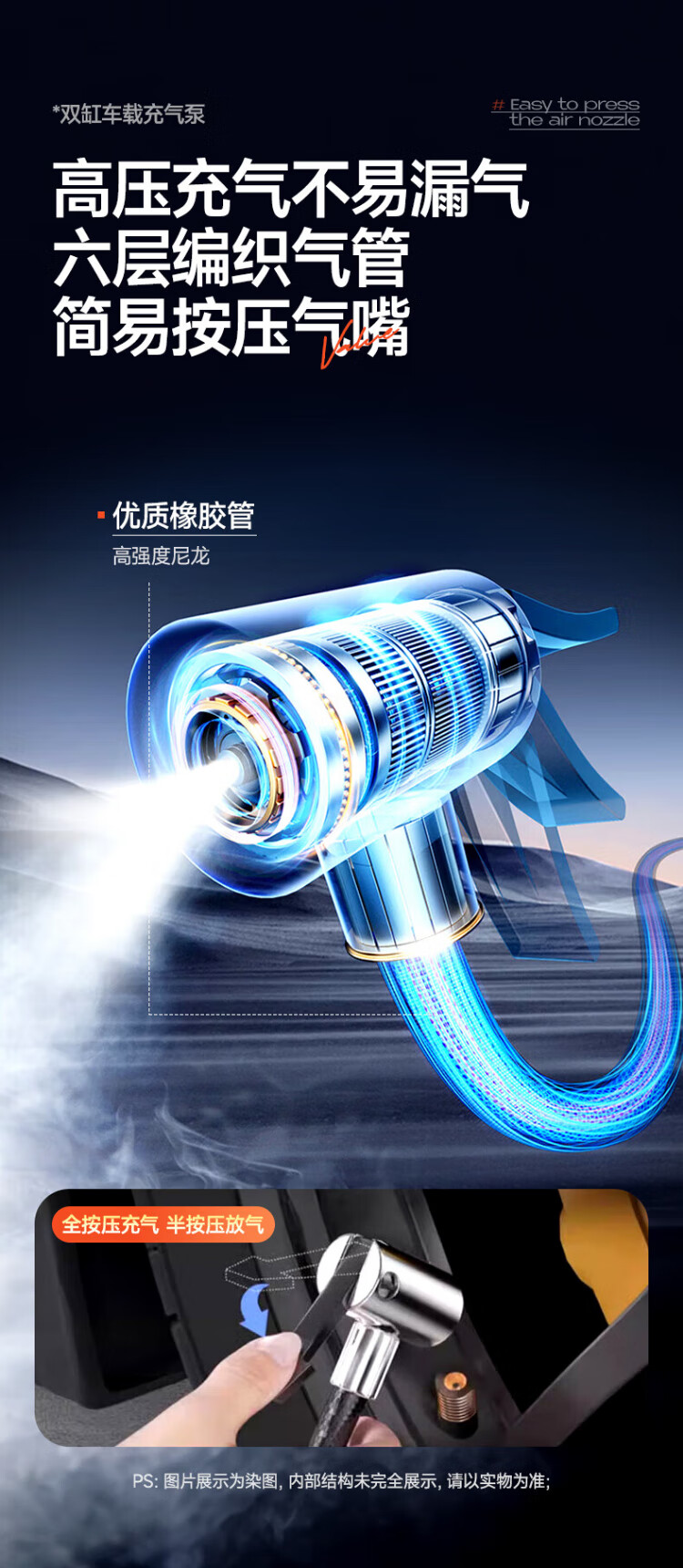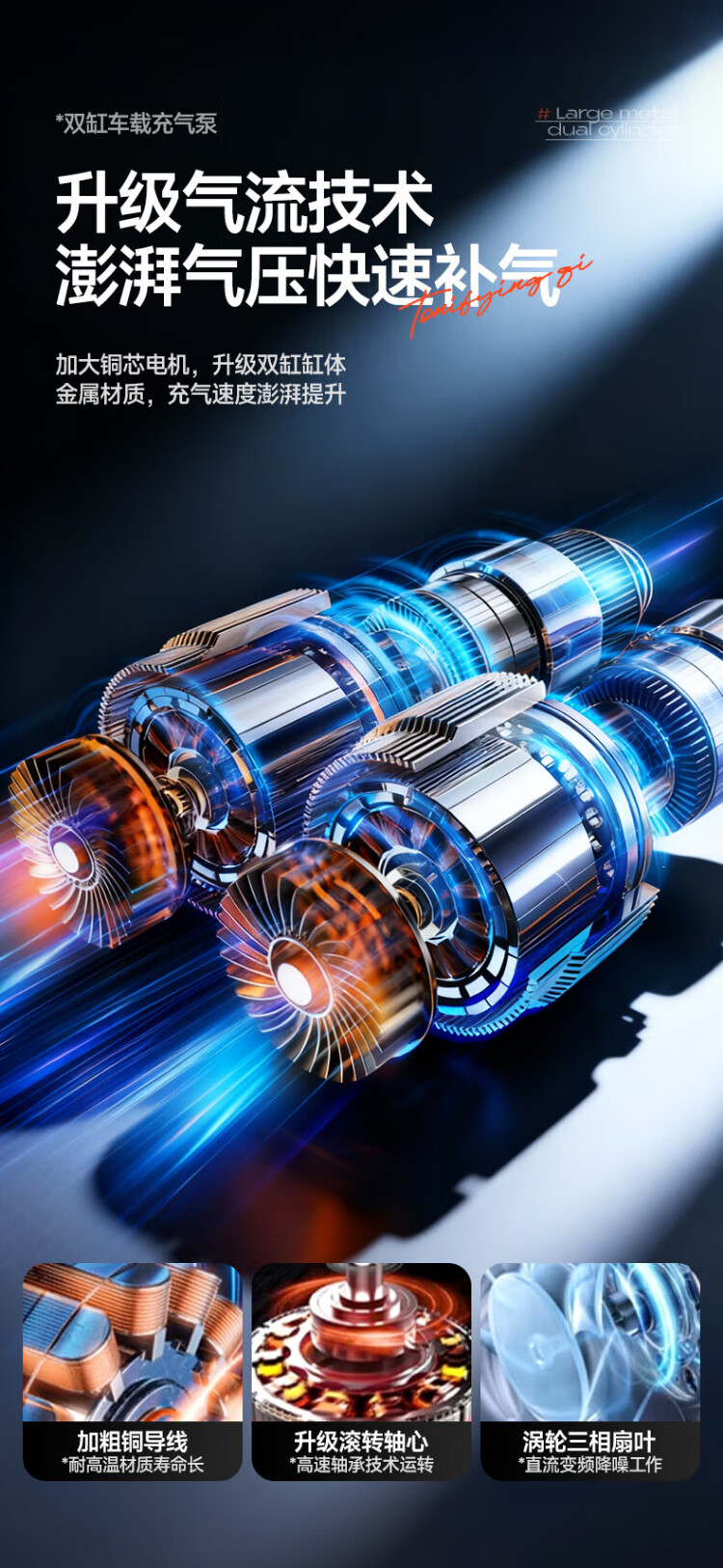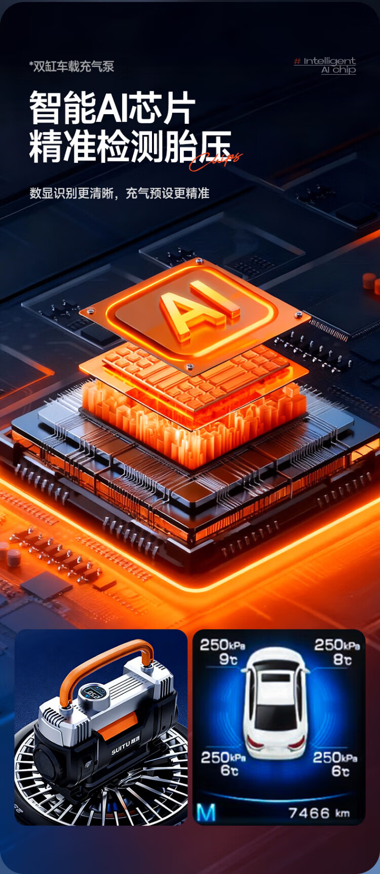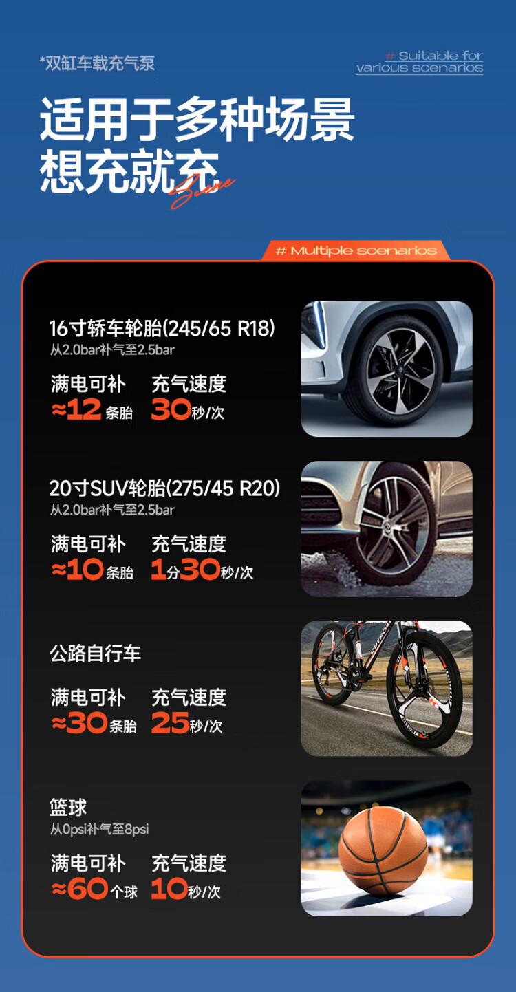 Suitu car air pump double-cylinder car tire air pump electric inflator to measure tire pressure high-power off-road sedan metal true double-cylinder off-road high-power digital display fast charge + storage bag