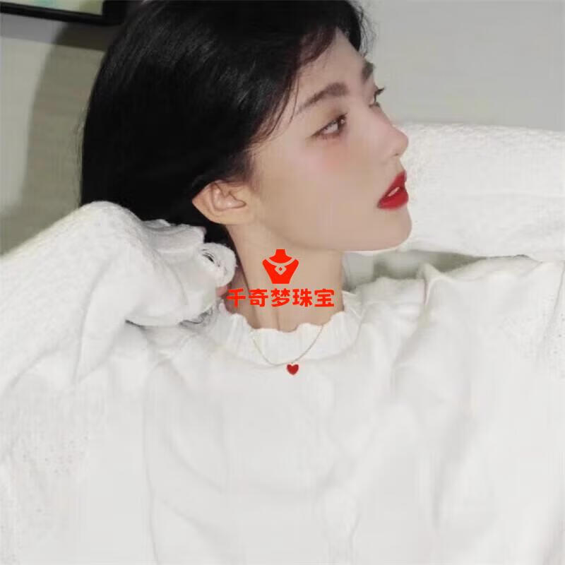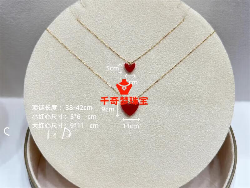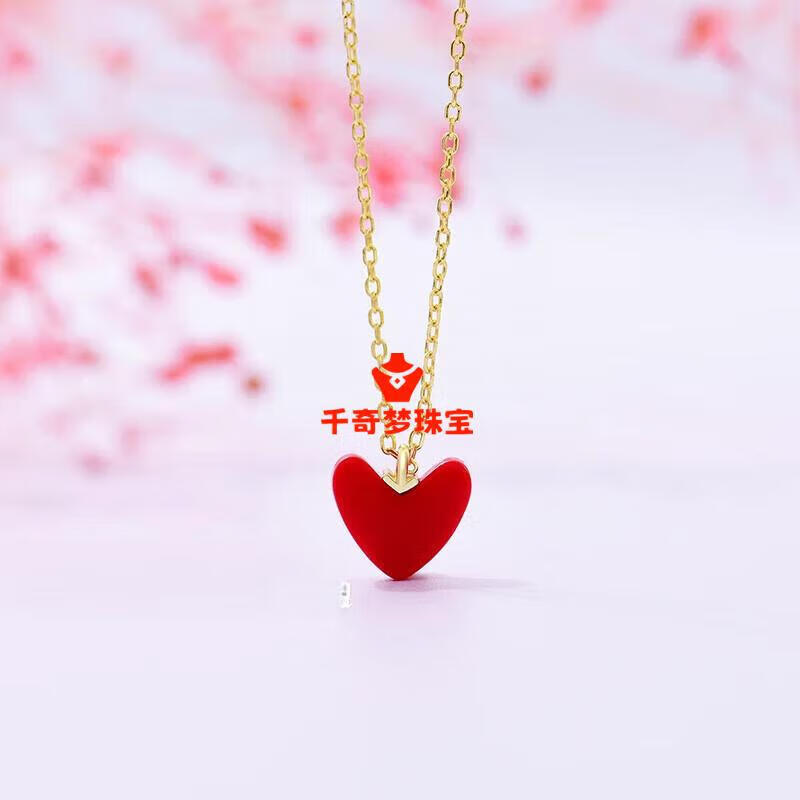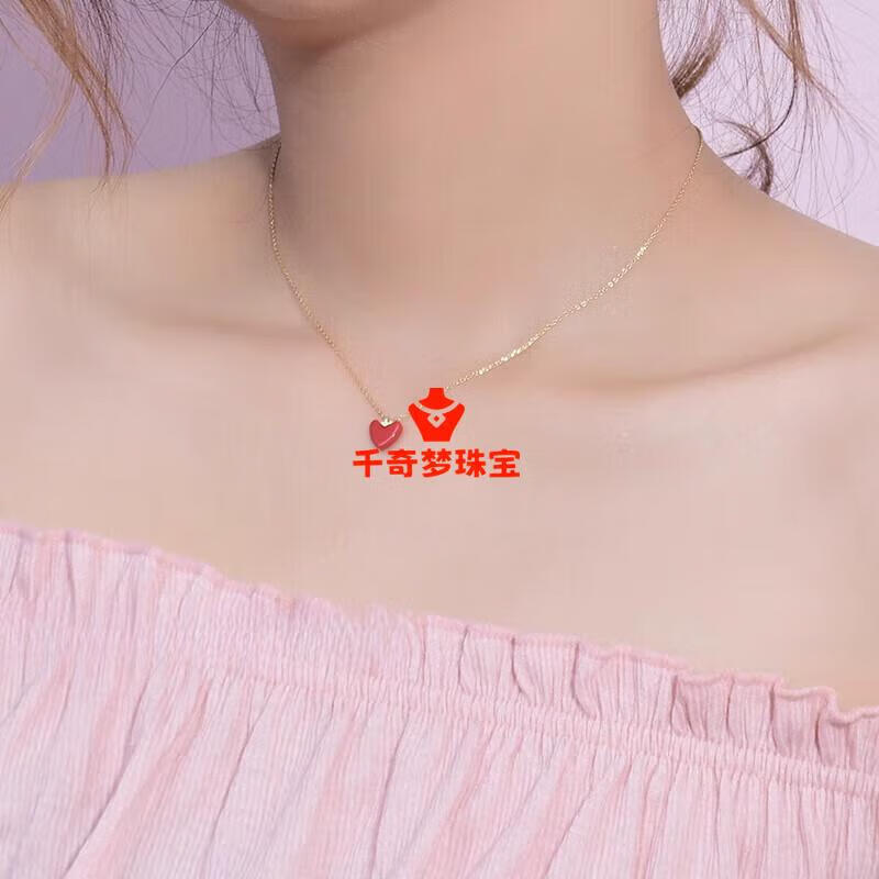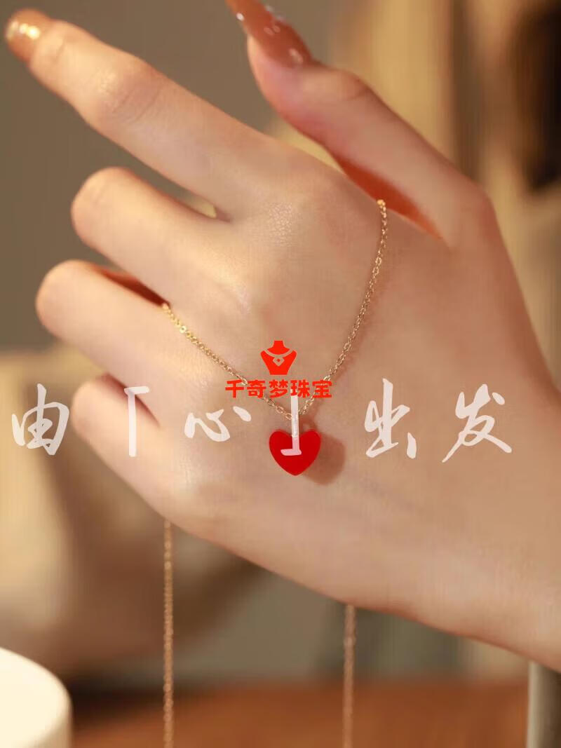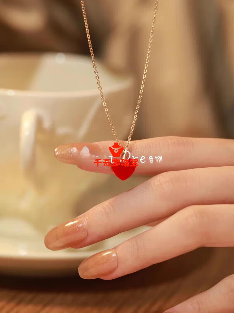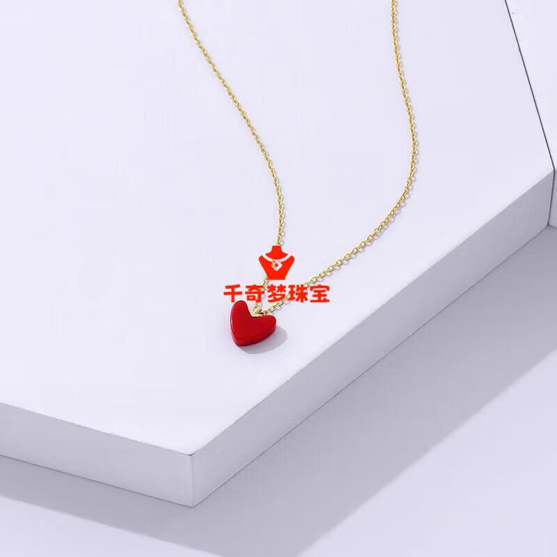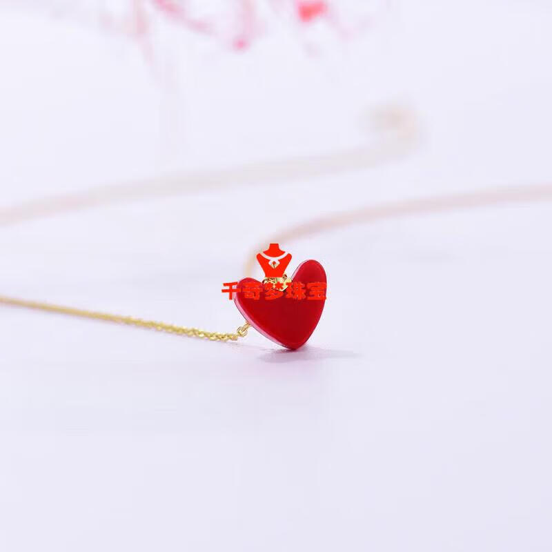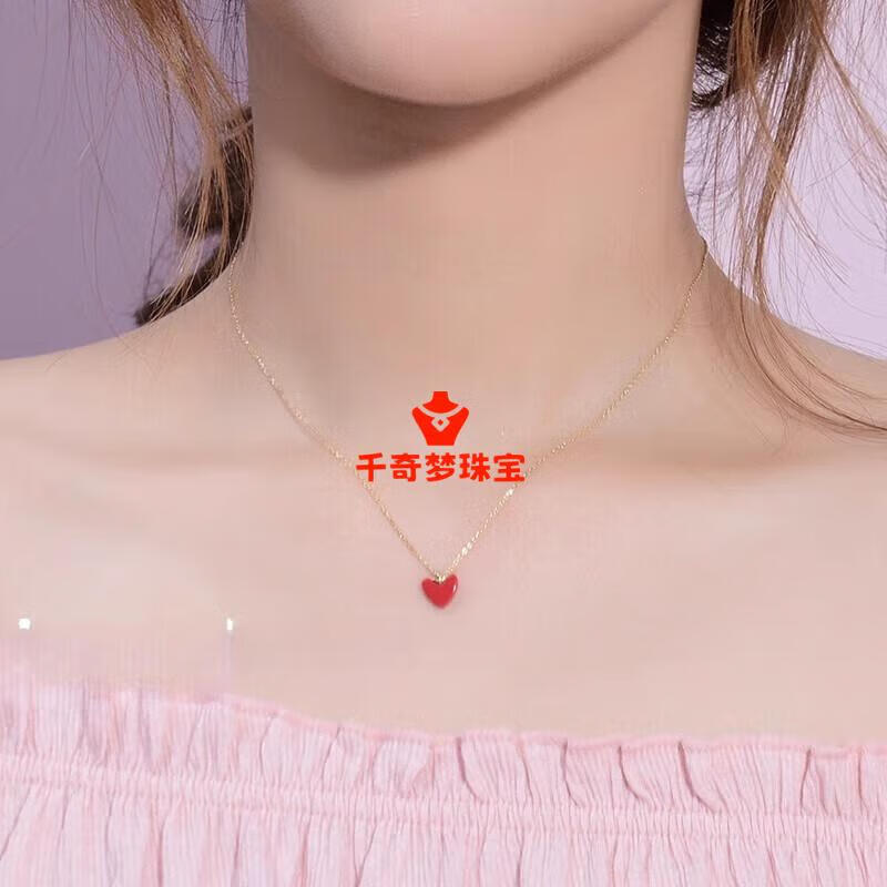 Luanjie quality 18K gold red heart necklace women's love clavicle chain red peach heart simple pendant is very light small red heart necklace store manager