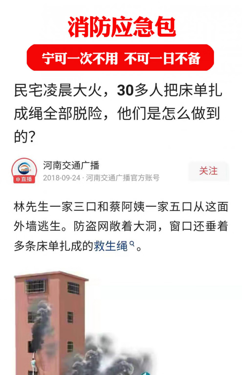 Firefighting four-piece rental house emergency escape bag for hotels and B&Bs 3456 kg household anti-smoke gas mask type A set for rental houses