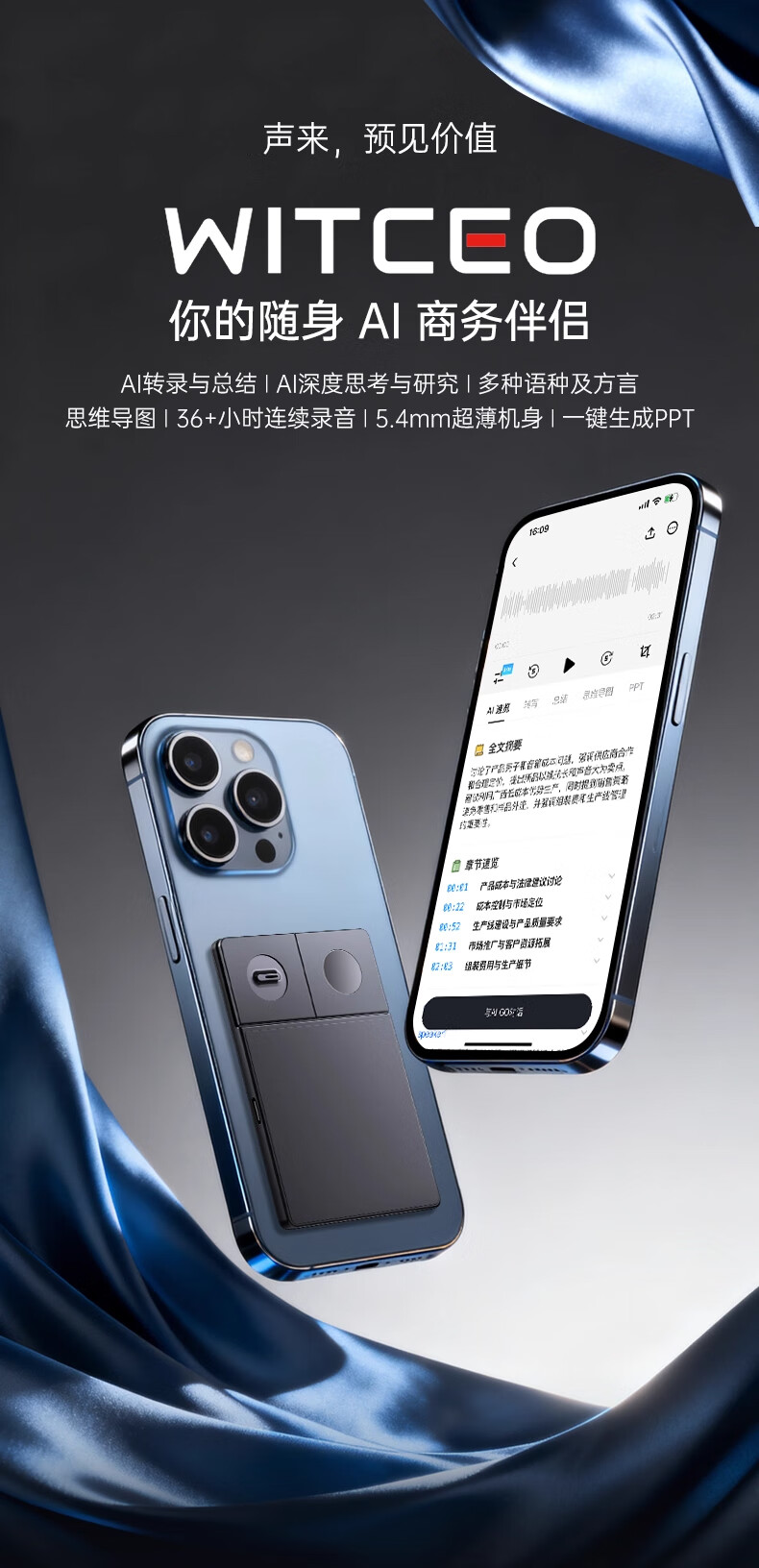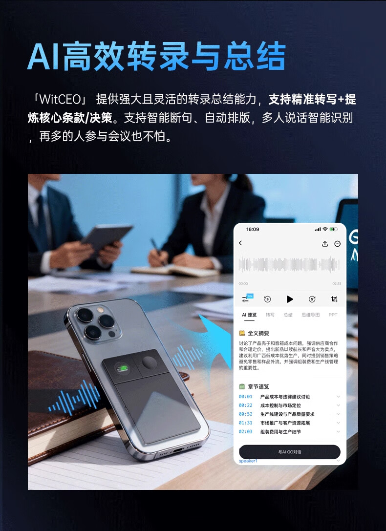 WITCEO AI Voice Recorder Converts Meeting Minutes to Text, Recording Artifact Professional Recording Equipment Plaud Note Same AI Smart Recording Machine Student Recording Recorder Portable AI Business Companion Starter Member
