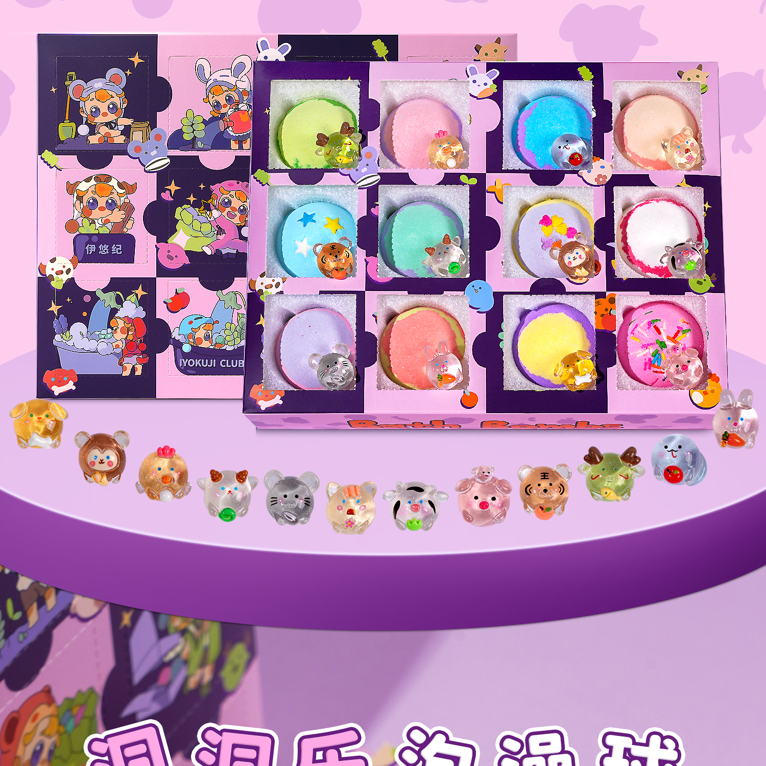 IYOKUJI CLUB Blind Box Bath Ball Children's Bubble Bath Bath Salt Ball Bath Special Baby Toy Gift Box Essential Oil Bath Ball Dongdongle Zodiac Bath Ball Fun Unpacking Blind Box - Lots of Bubbles