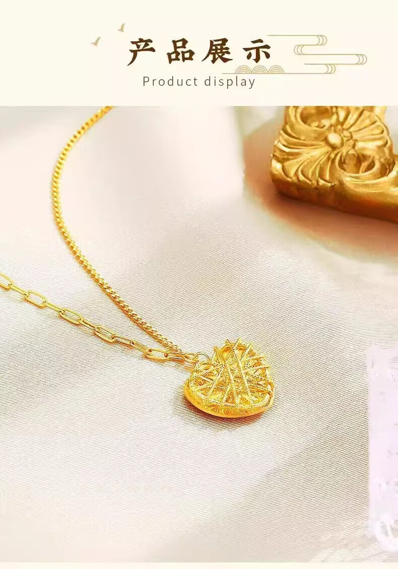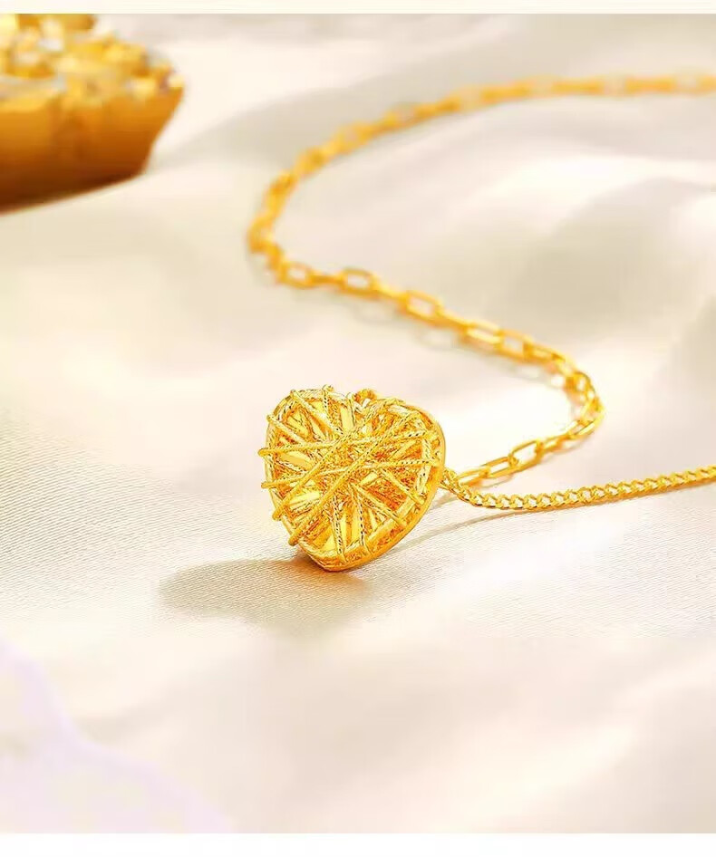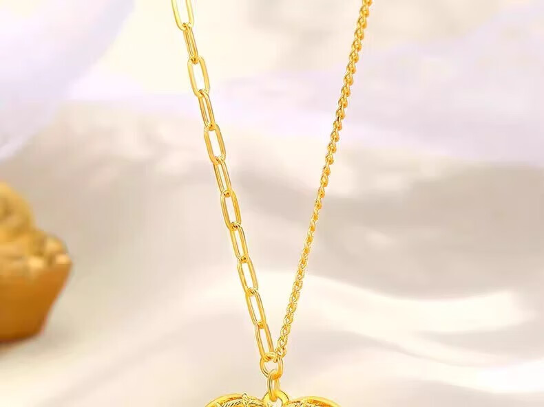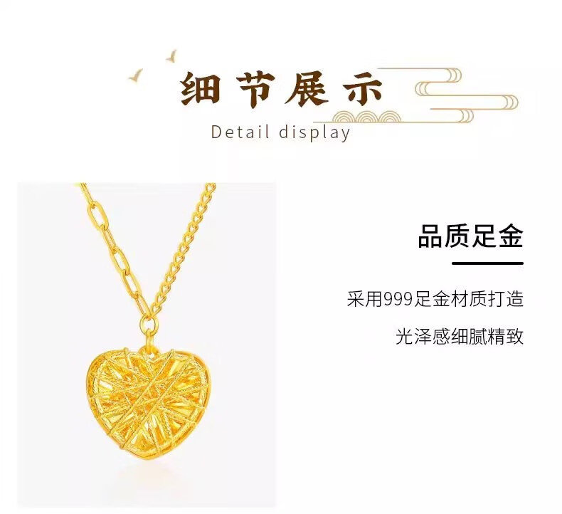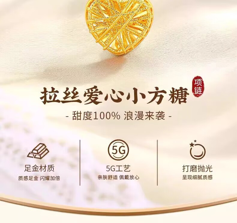 Luanjie Lao Phoenix 999 pure gold covered silver love sugar cube pendant gold necklace for women 2025 new pure gold + ab chain master love single pendant + ab chain master picture style