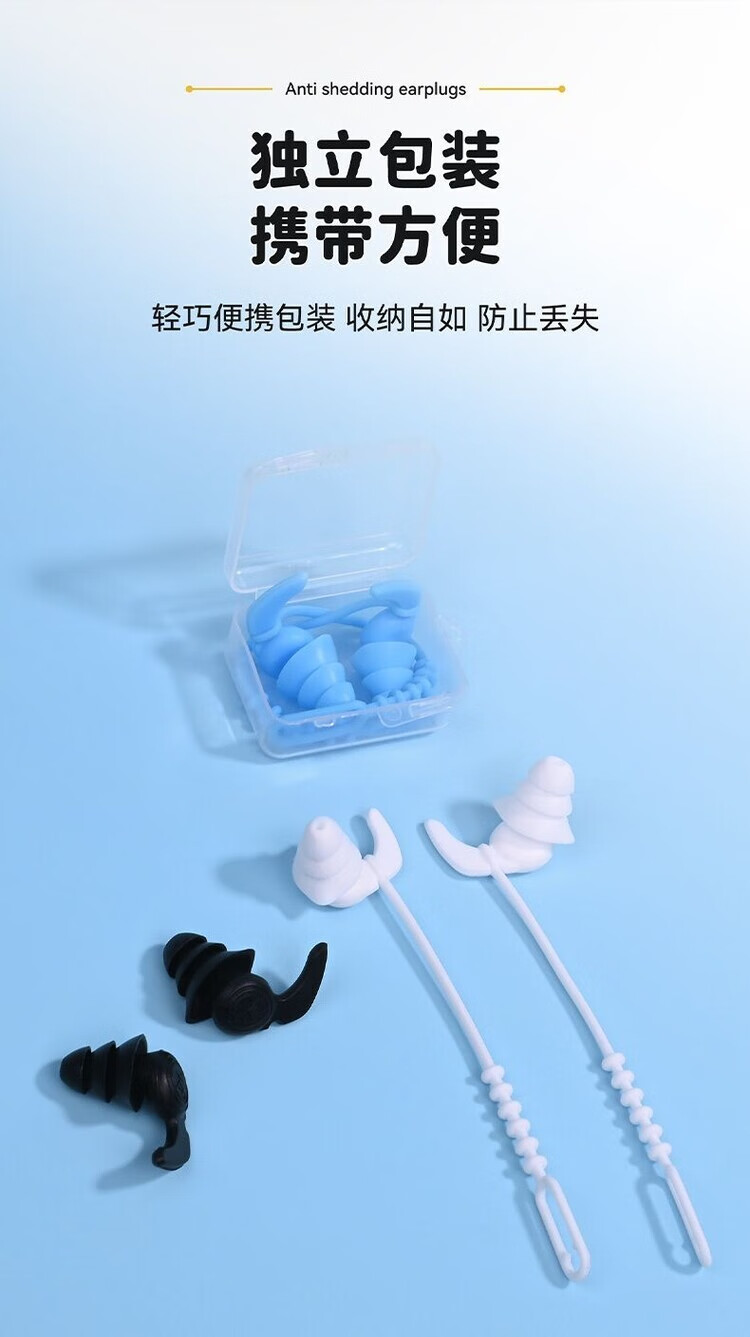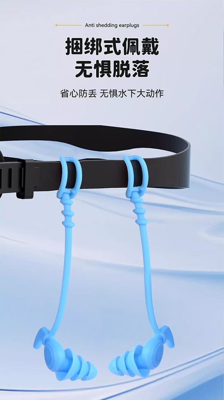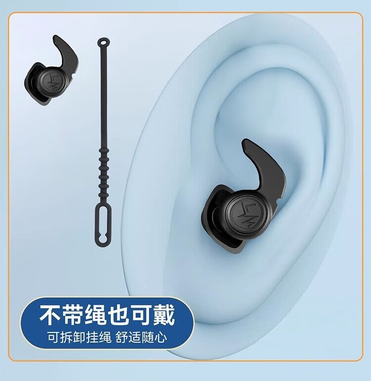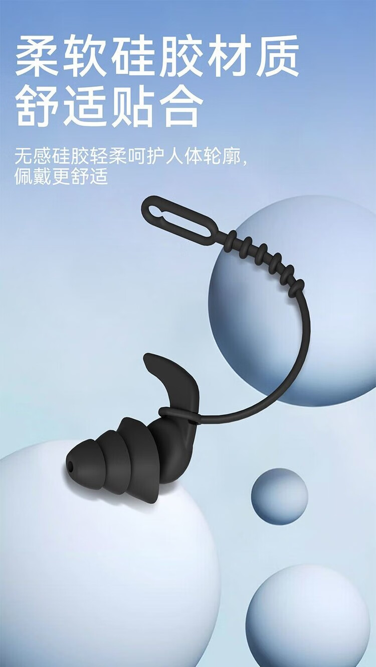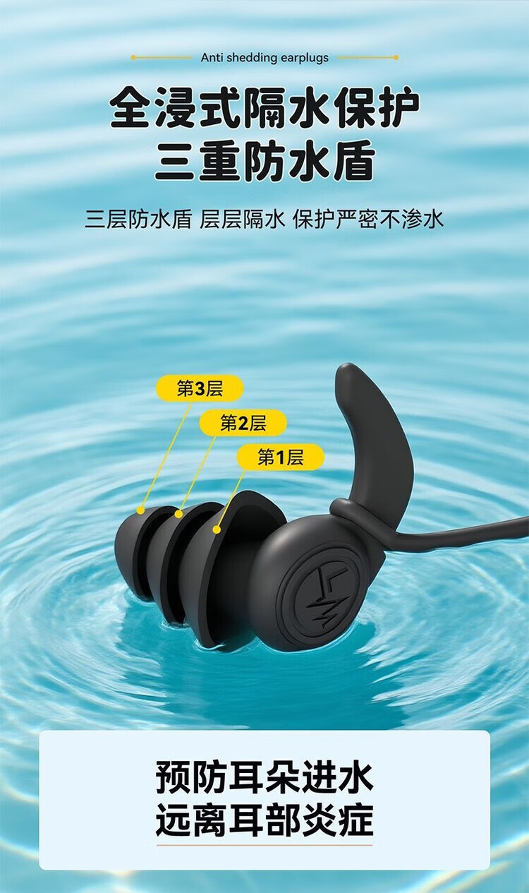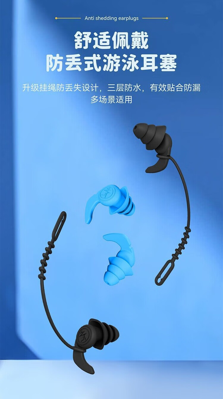 Diaohuang swimming earplugs with lanyard for adults, anti-lost children's bathing ears, prevent water ingress, reduce noise, waterproof artifact, silicone style, swimming earplugs, three-layer protection, unisex, nose clip set, black 1 pair + nose clip, waterproof and anti-choking