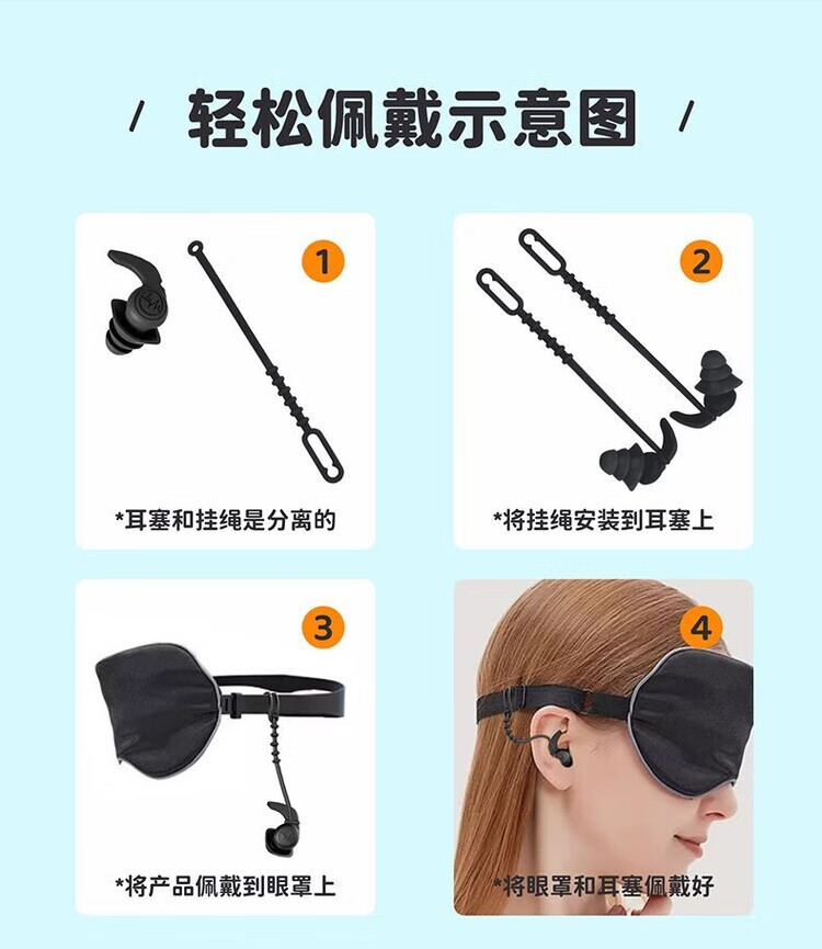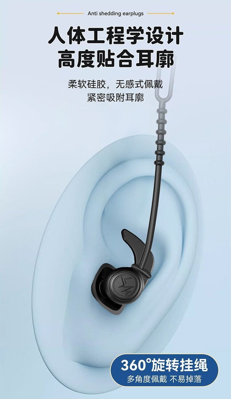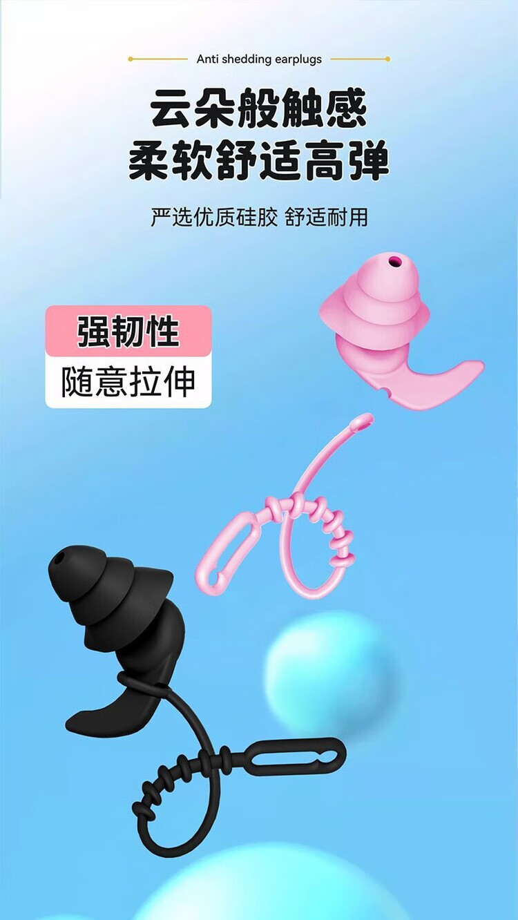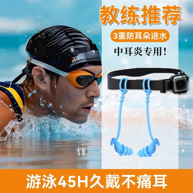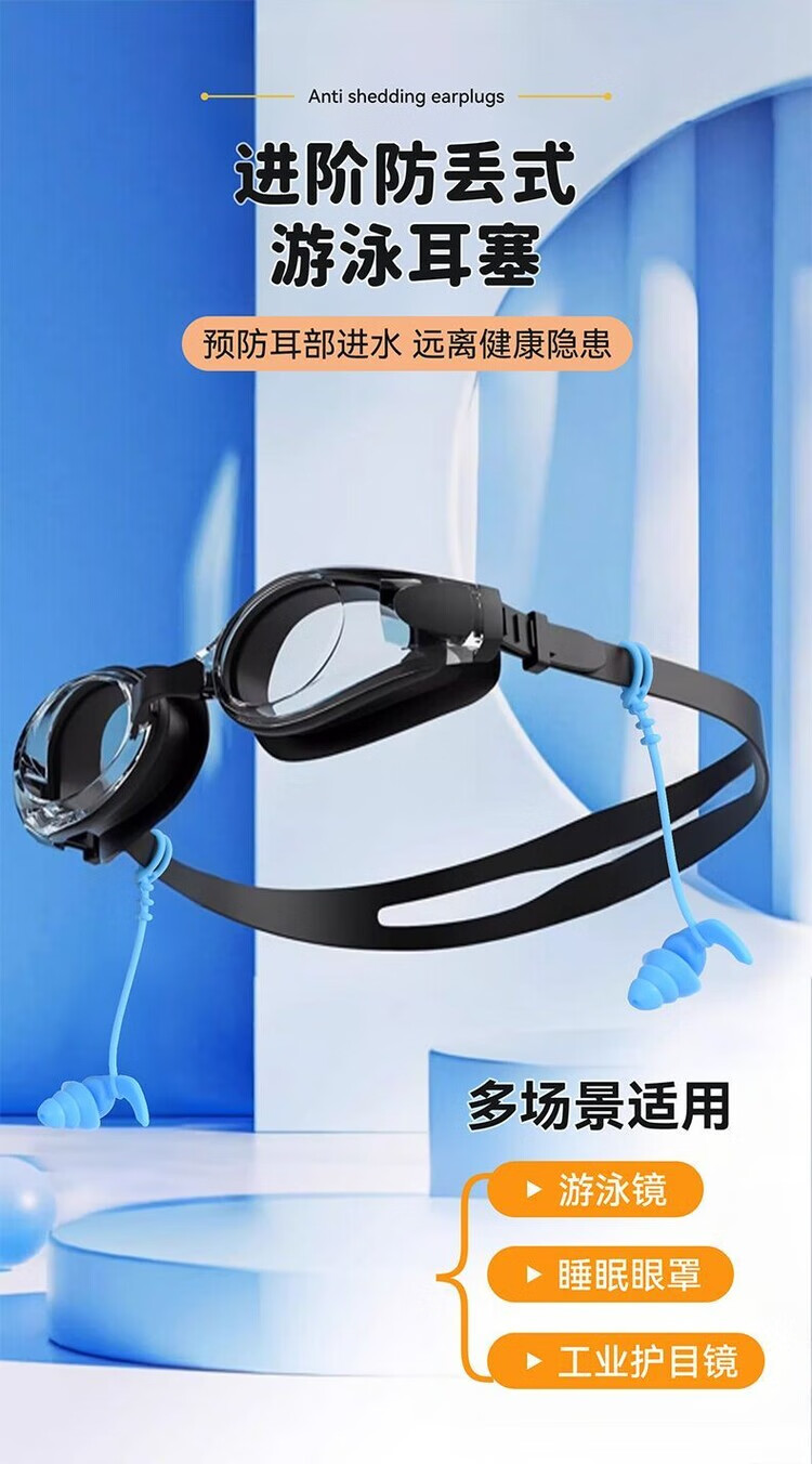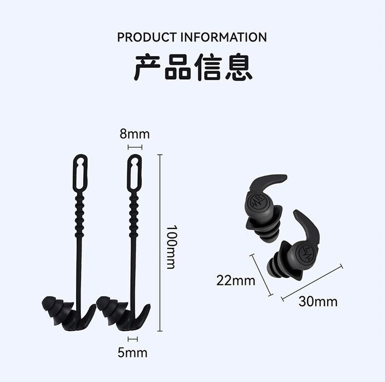 Diaohuang swimming earplugs with lanyard for adults, anti-lost children's bathing ears, prevent water ingress, reduce noise, waterproof artifact, silicone style, swimming earplugs, three-layer protection, unisex, nose clip set, black 1 pair + nose clip, waterproof and anti-choking