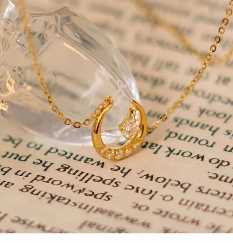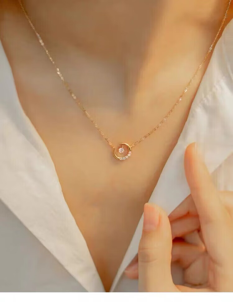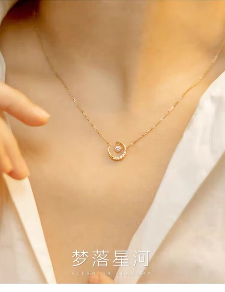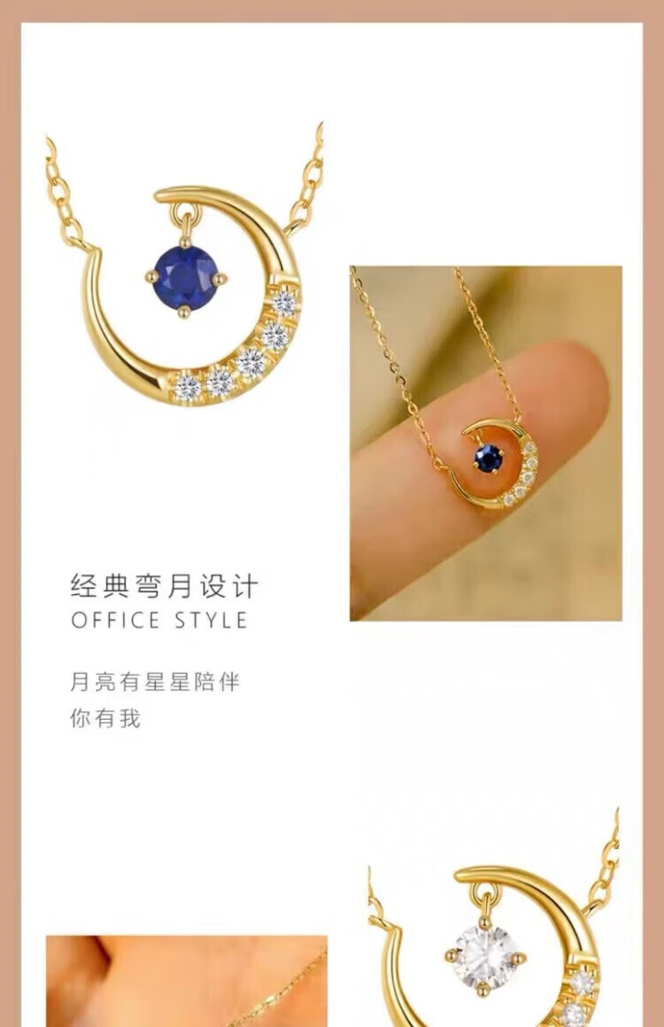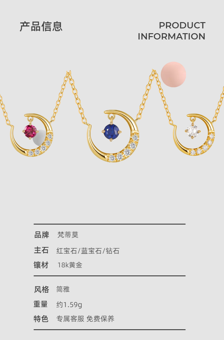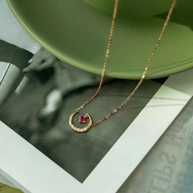 Luanjie red gemstone necklace for women 18K gold diamond. Stone moon pendant elegant clavicle chain holiday gift SF Express Ruby
