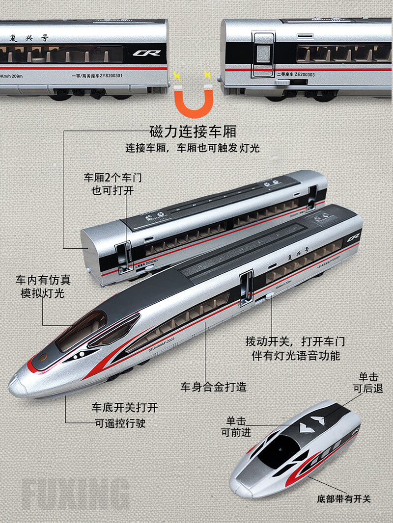 He Jiagong remote control alloy high-speed rail Fuxing train model simulation Harmony children's train toy electric train boy alloy remote control single section - silver